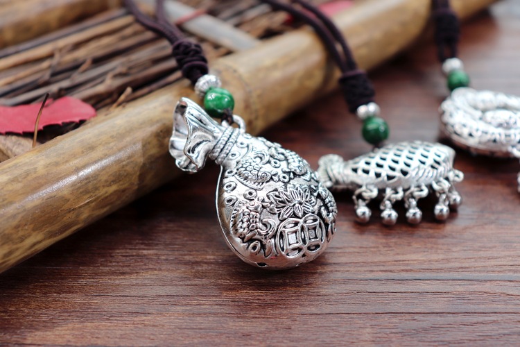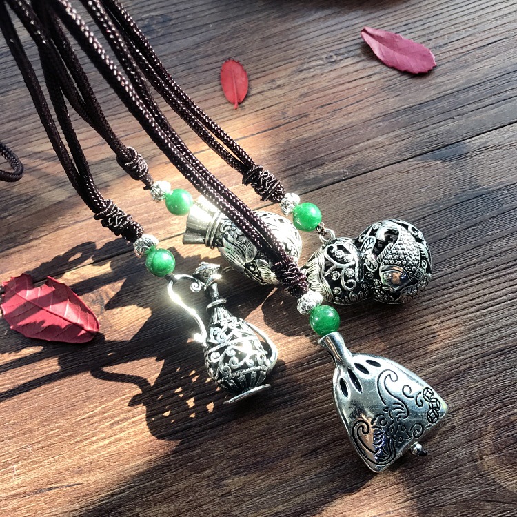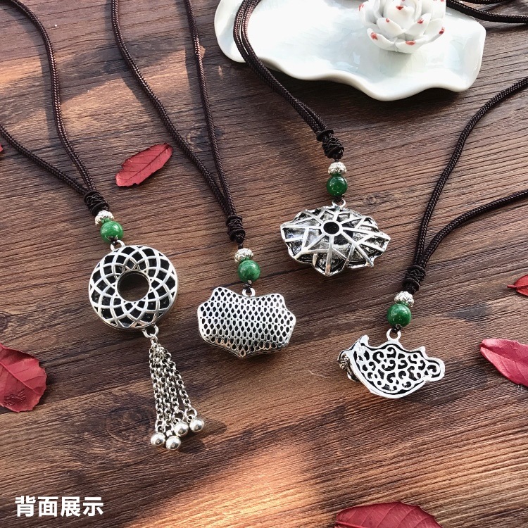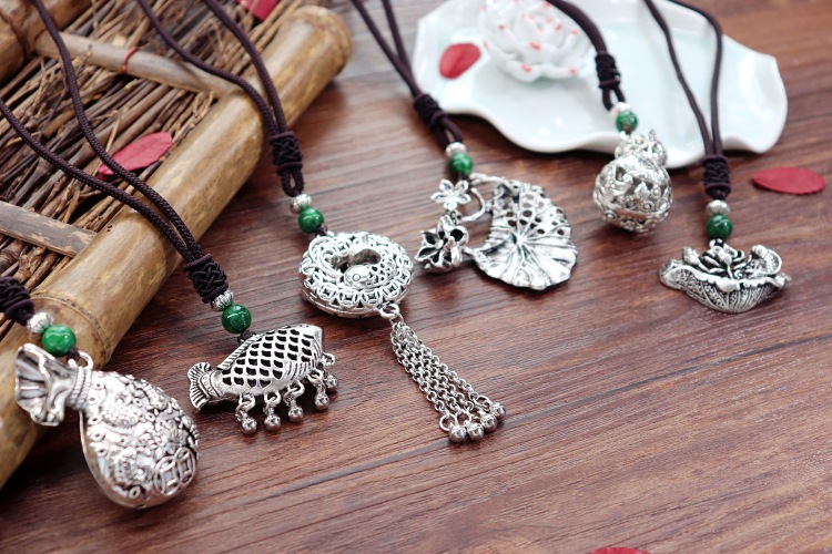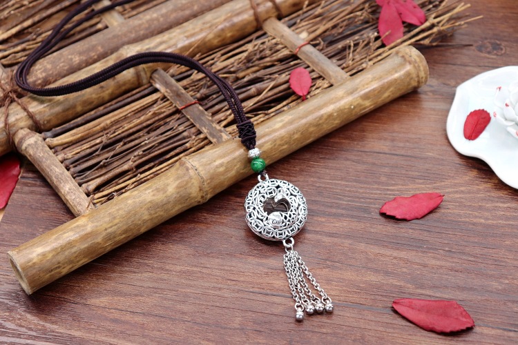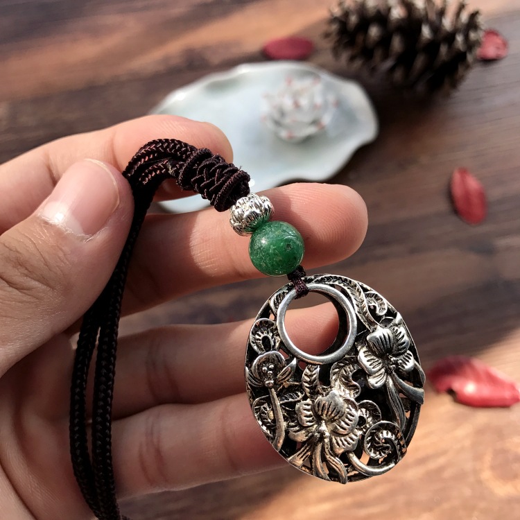 手工复古棉麻藏银吊坠项链民族风中长款花朵百搭毛衣链女简约配饰