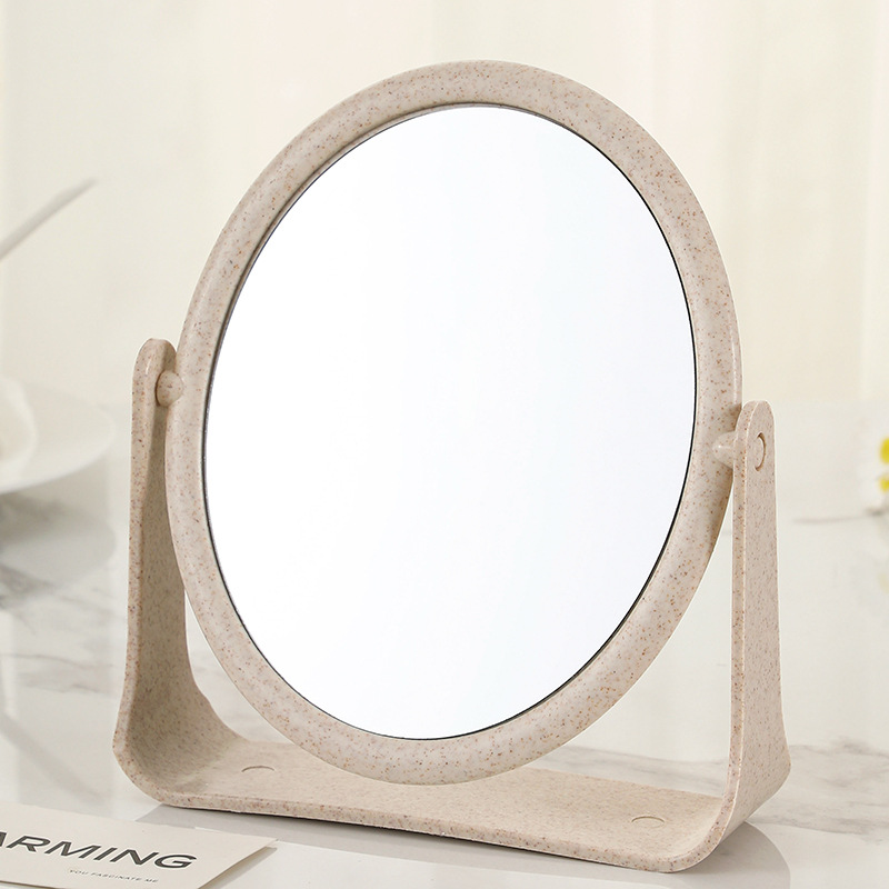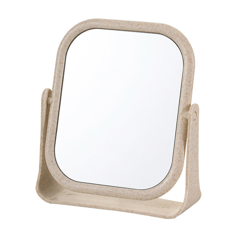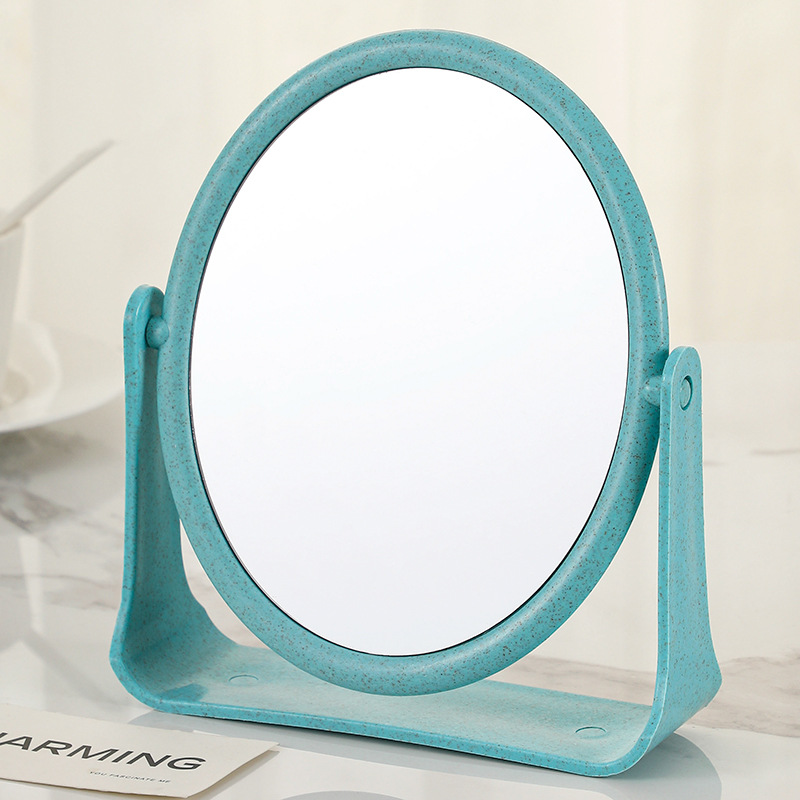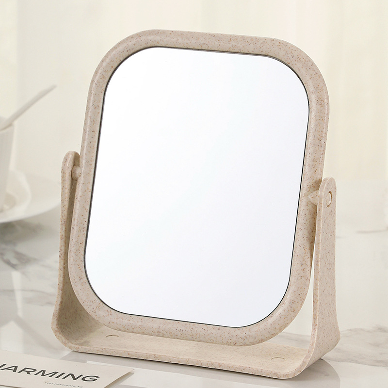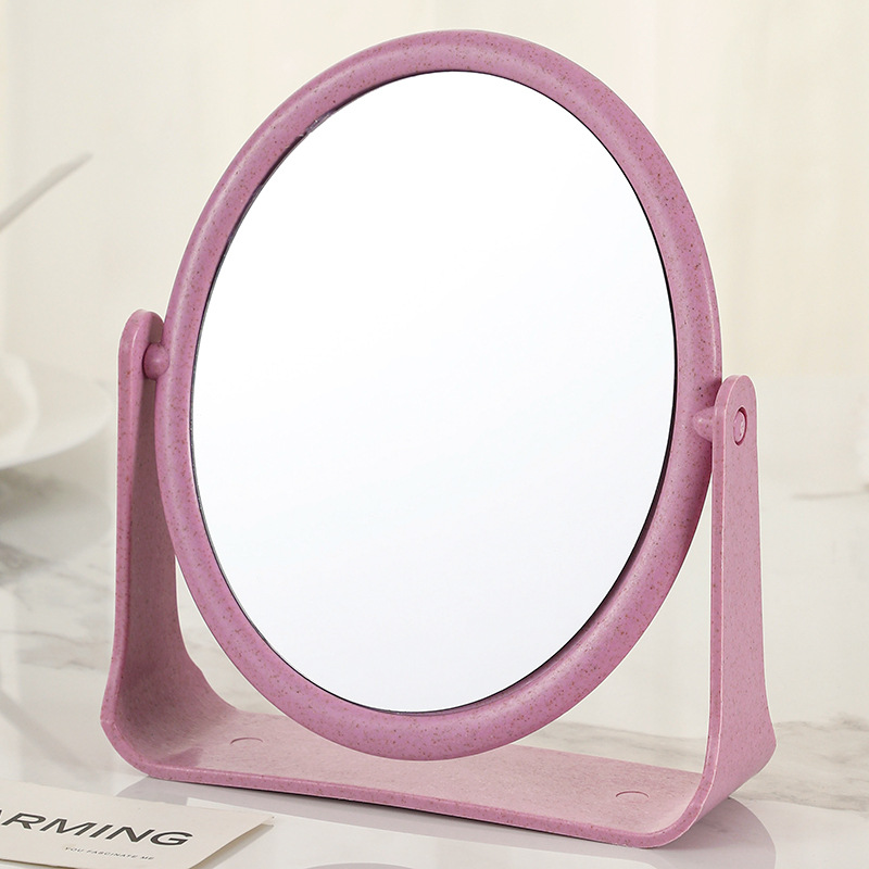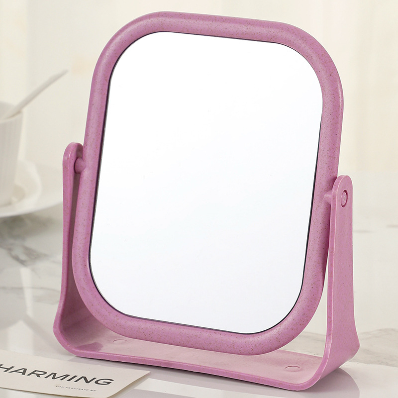 高清双面化妆镜子 台式麦秸秆多彩梳妆镜 折叠便携大号方形公主镜