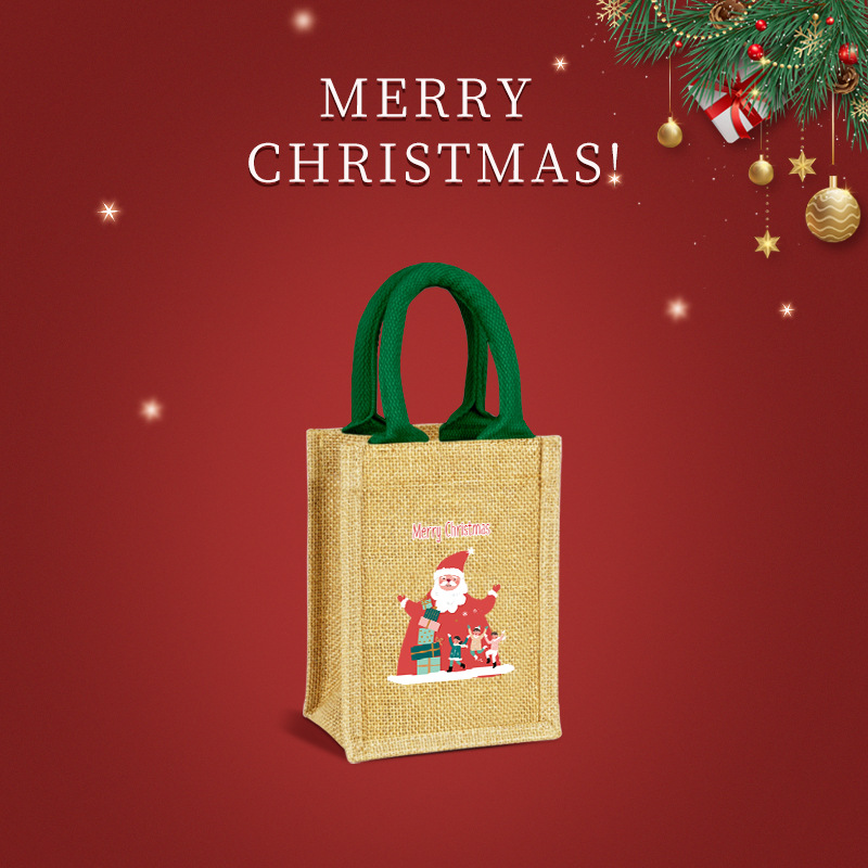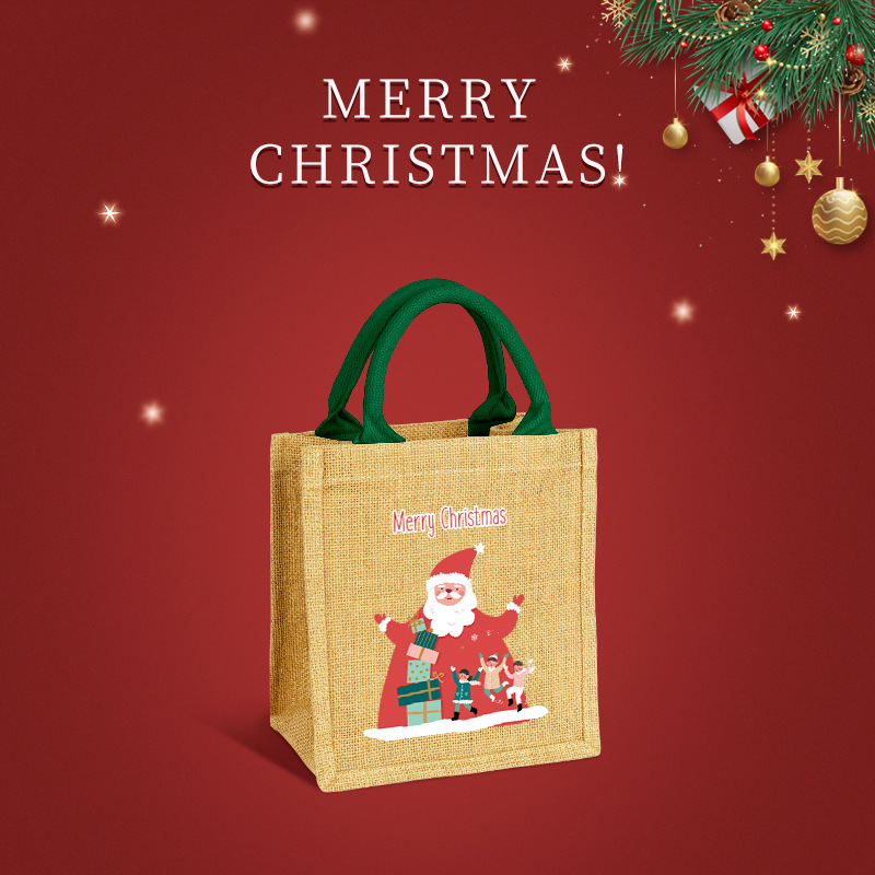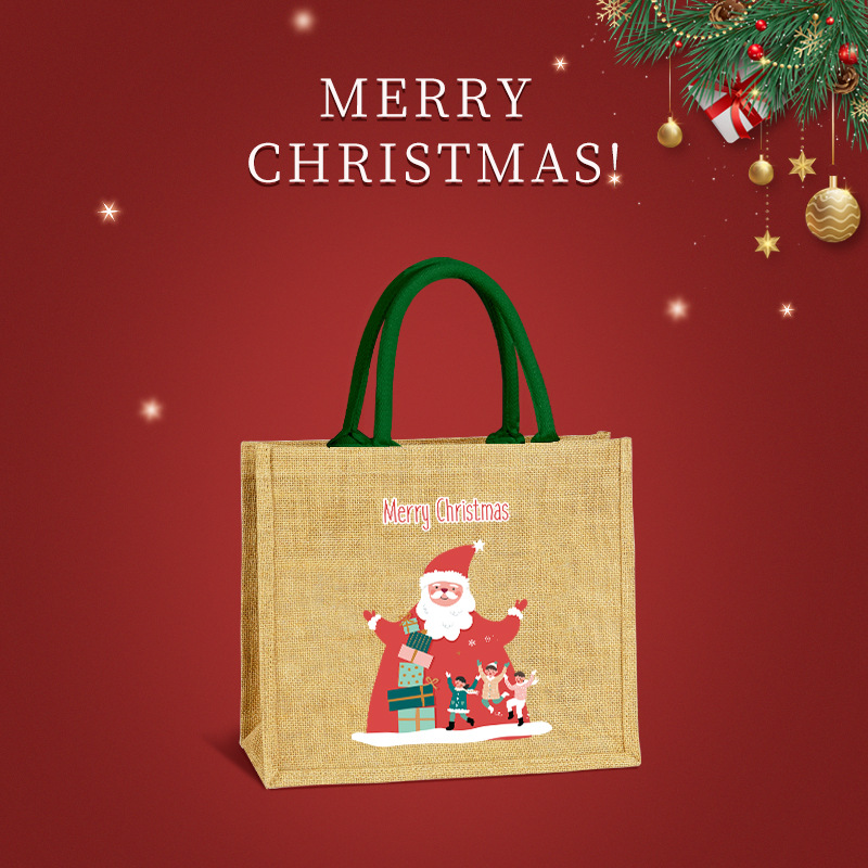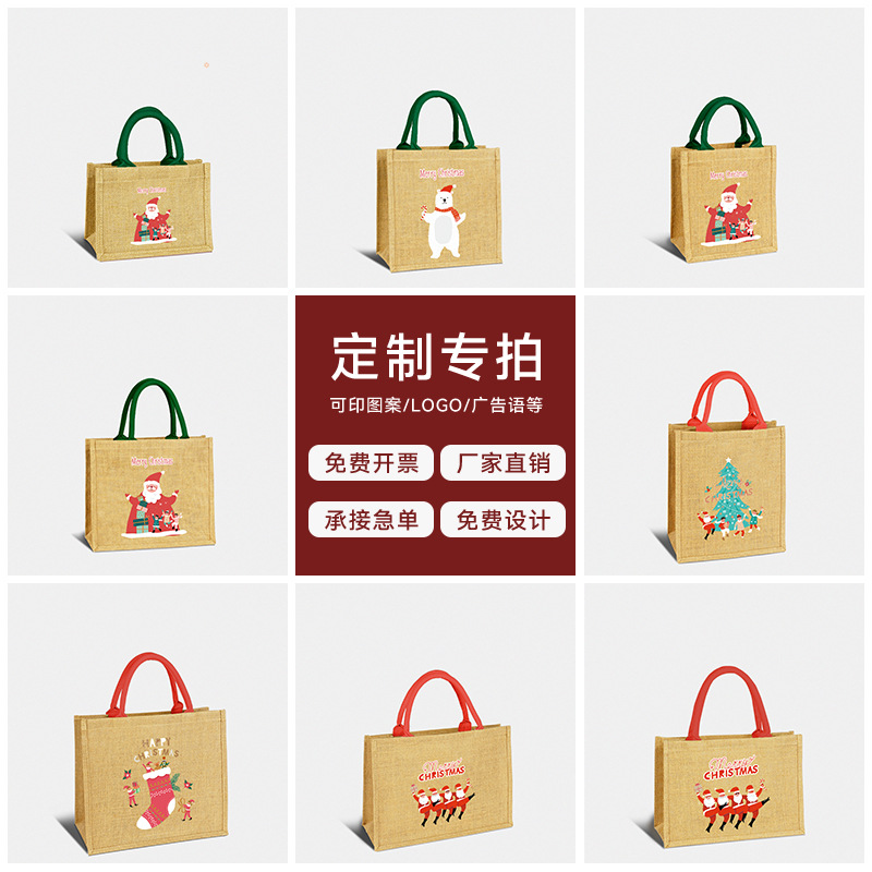 圣诞老人节日帆布袋平安夜麻布袋LOGO托特女包节日礼物圣诞礼品袋