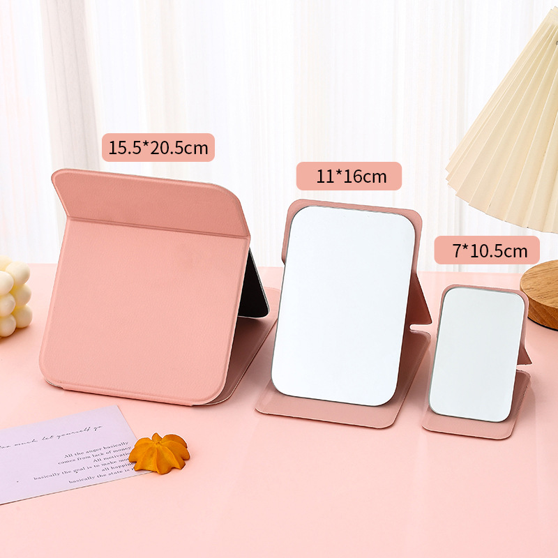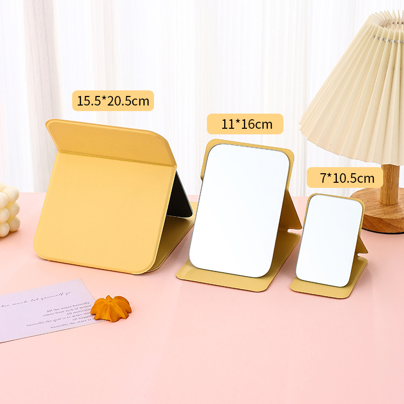 便携式折叠化妆镜马卡龙色系pu皮面梳妆镜高清台式镜面角度可调节
