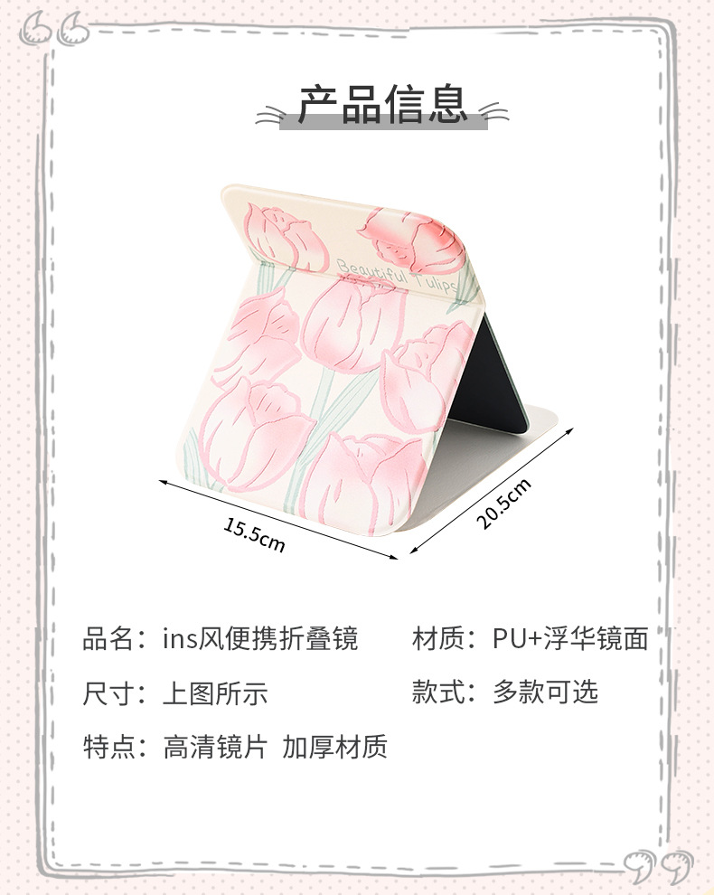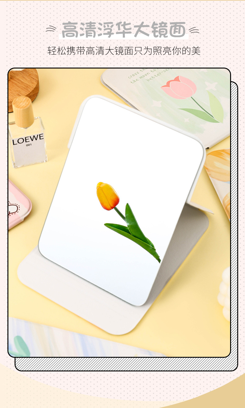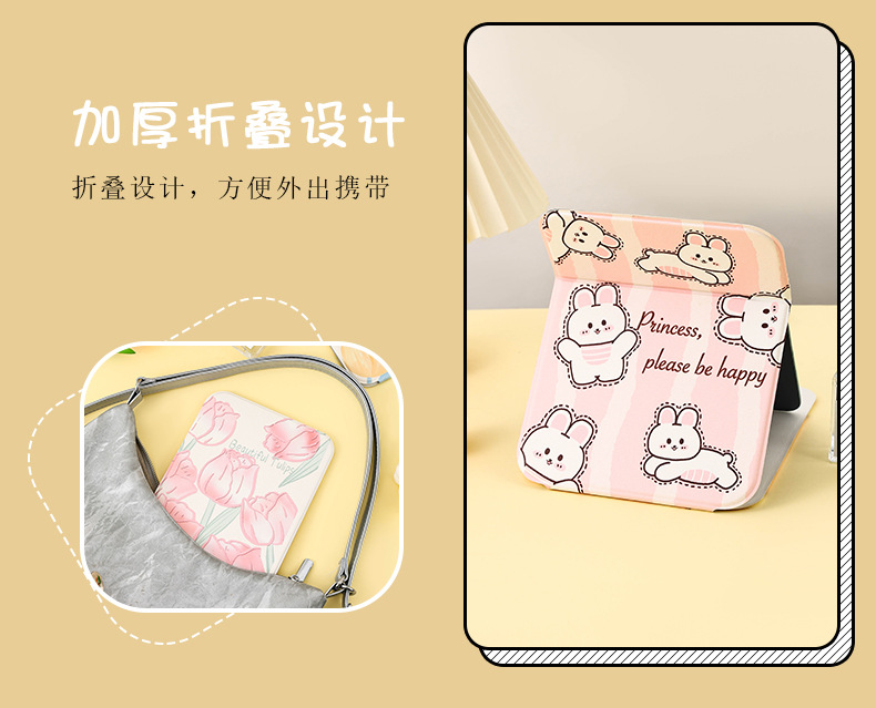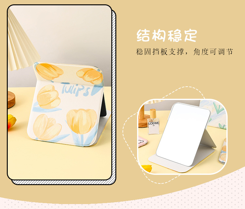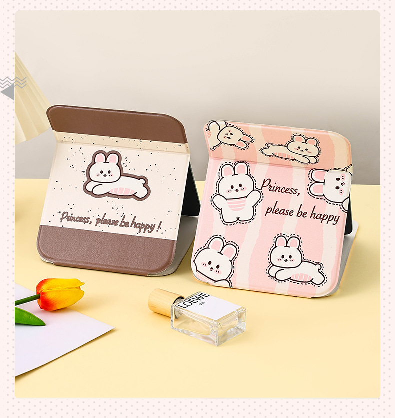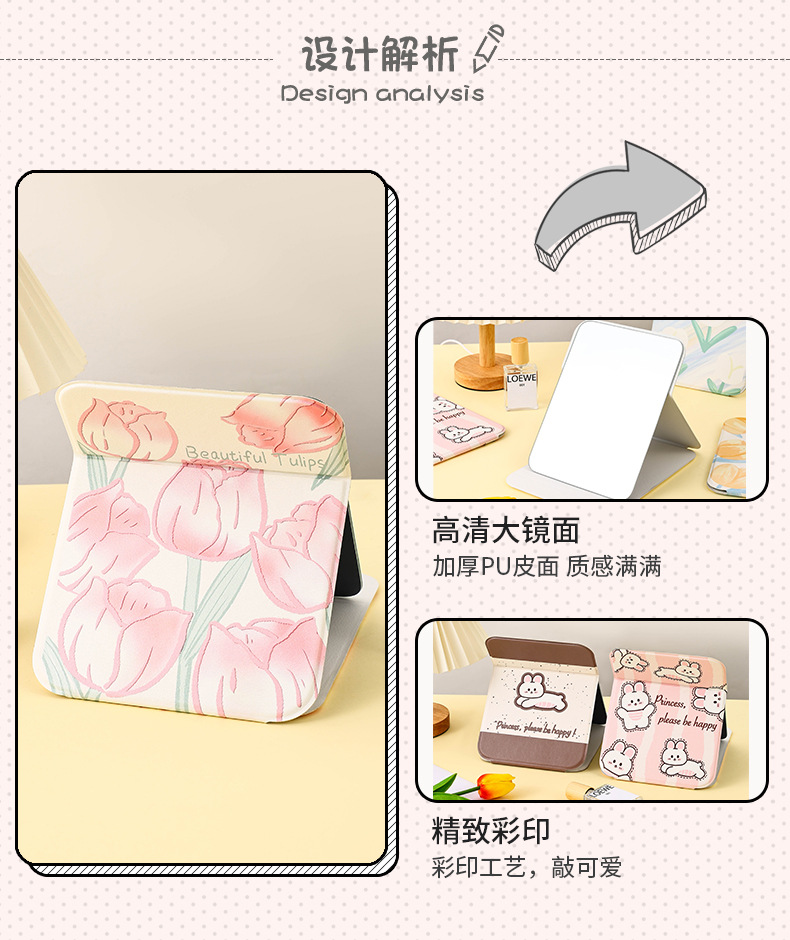 定制批发折叠镜化妆镜桌面梳妆镜便携可爱清新pu皮皮革化妆镜学生