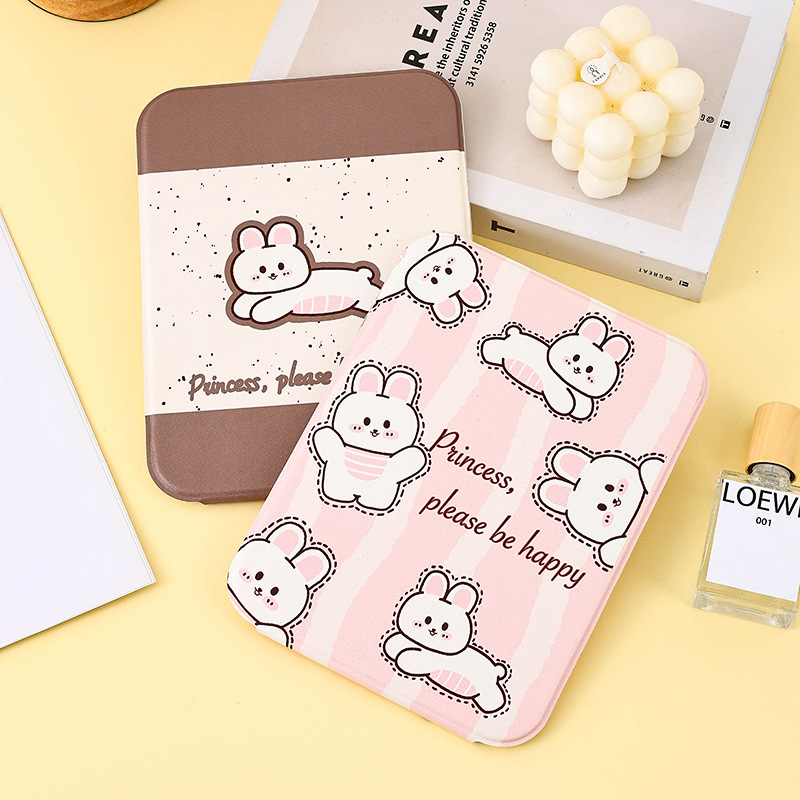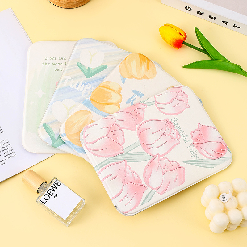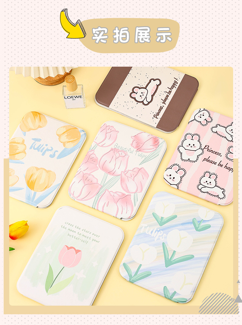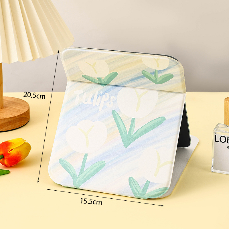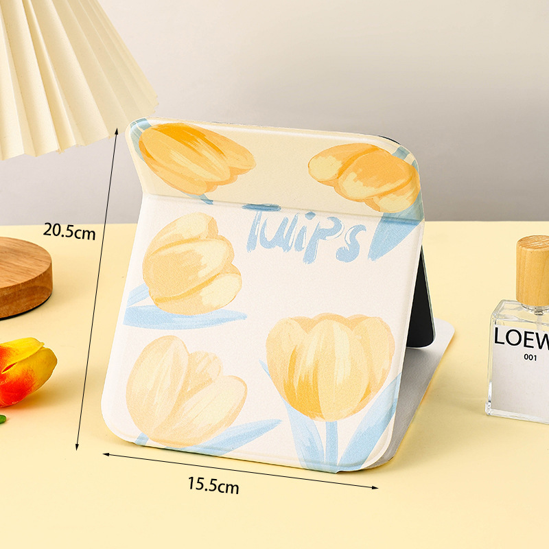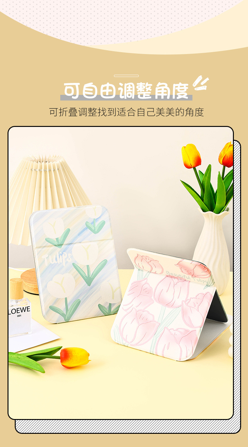 定制批发折叠镜化妆镜桌面梳妆镜便携可爱清新pu皮皮革化妆镜学生