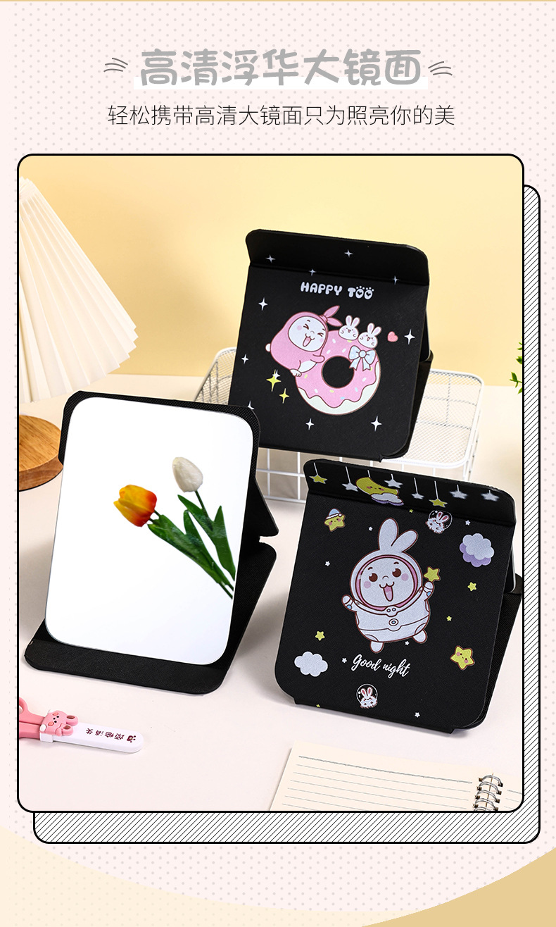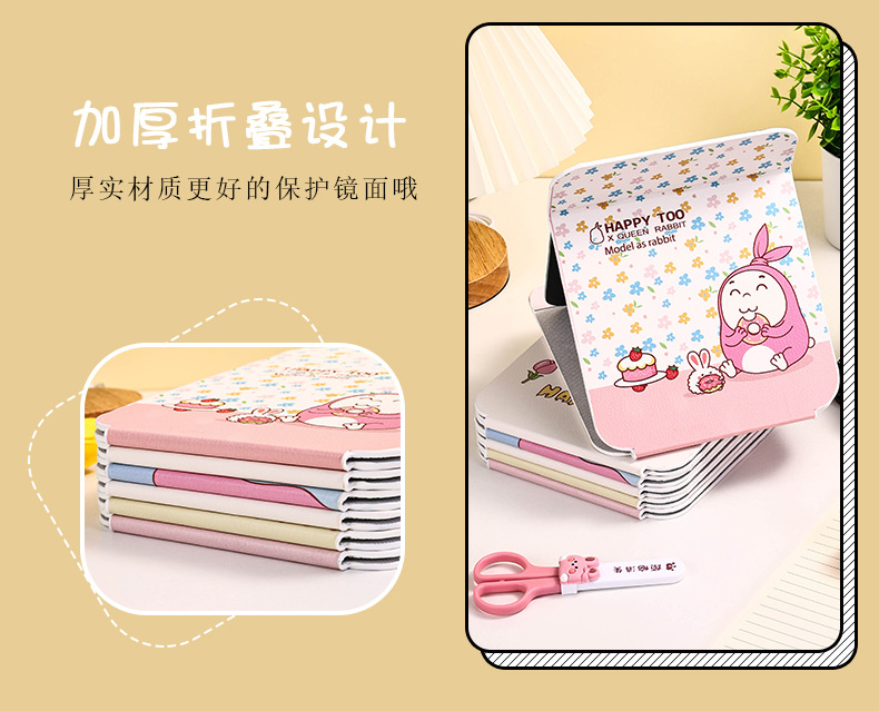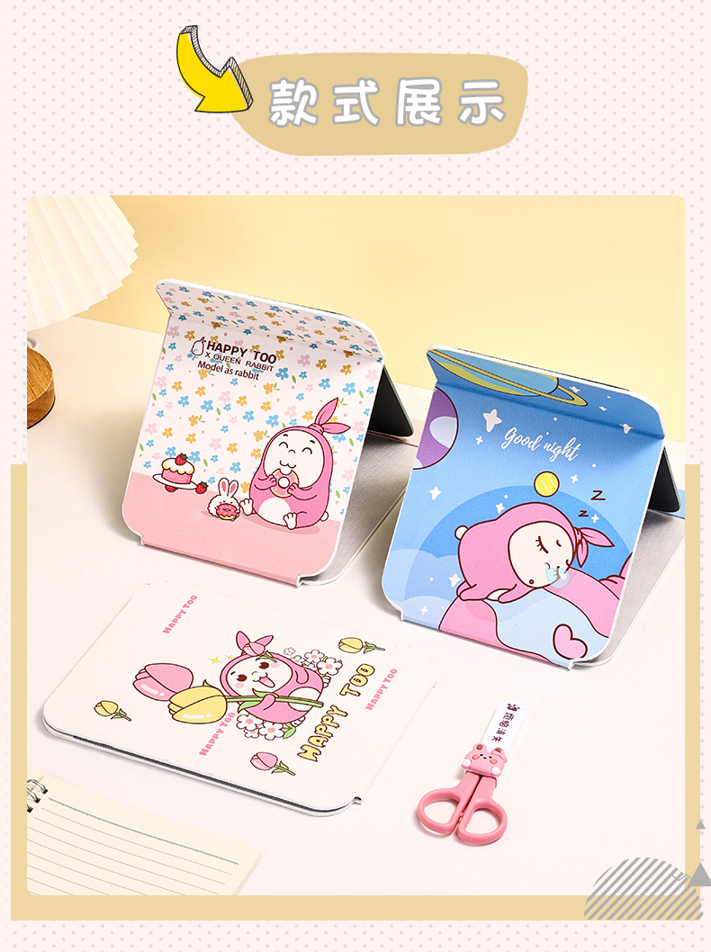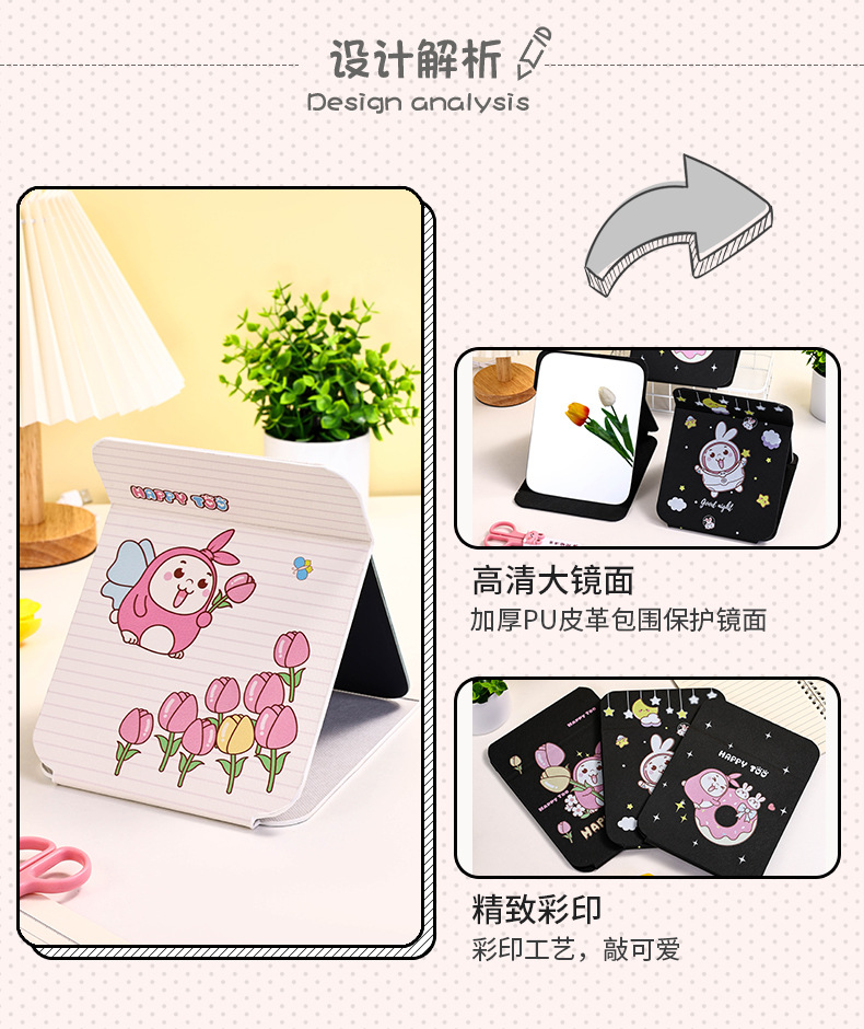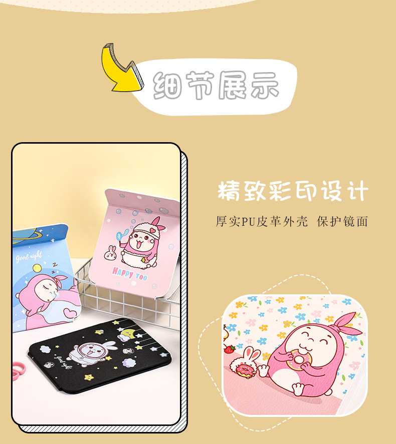 新款可爱歪叽兔PU外壳皮革折叠化妆镜桌面梳妆镜折叠便携化妆镜
