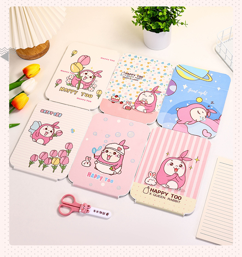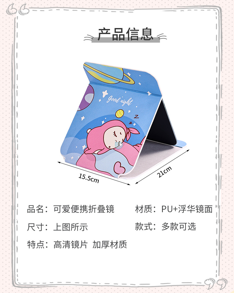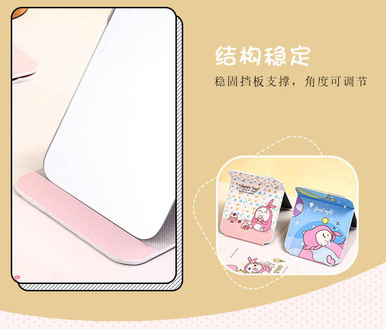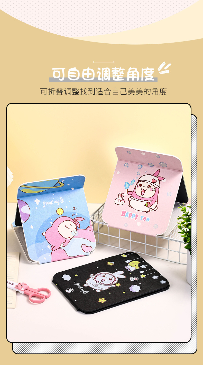 新款可爱歪叽兔PU外壳皮革折叠化妆镜桌面梳妆镜折叠便携化妆镜