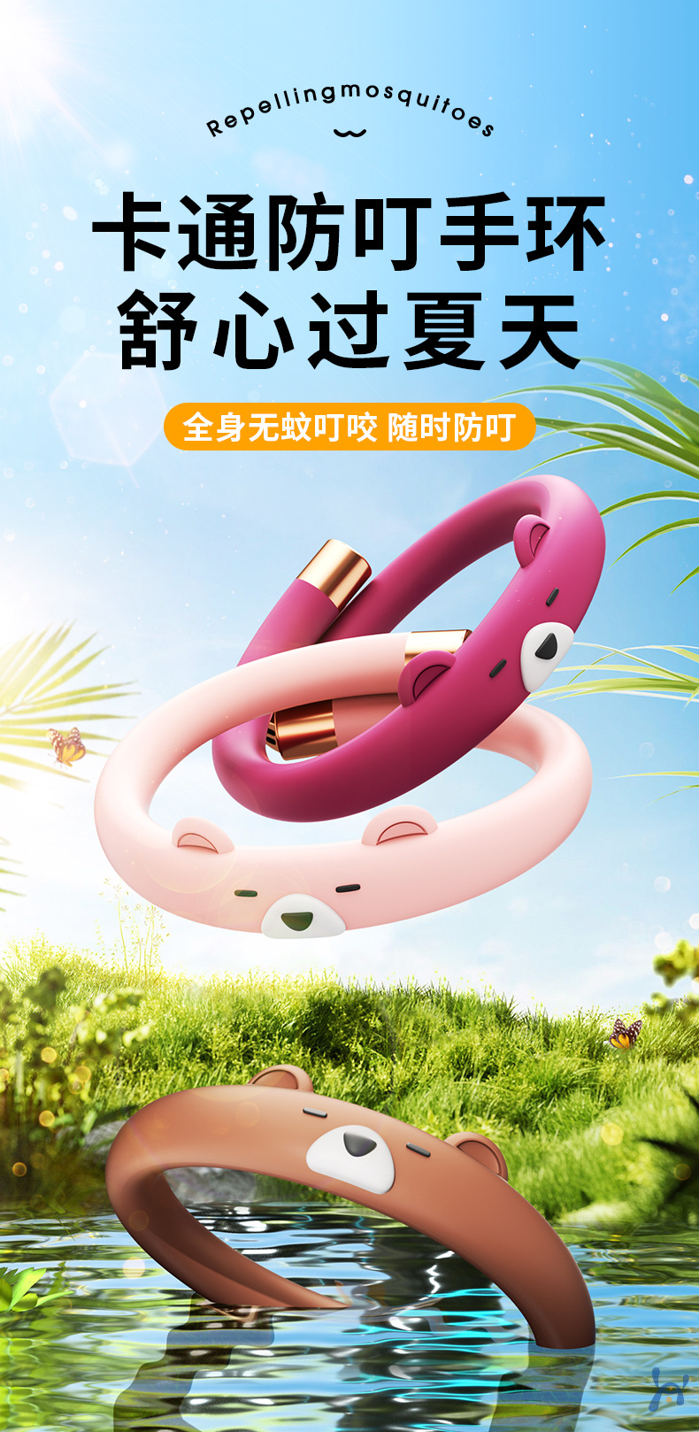 驱蚊液防叮神器精油手环成人儿童户外便携扣随身贴环植物防咬防叮