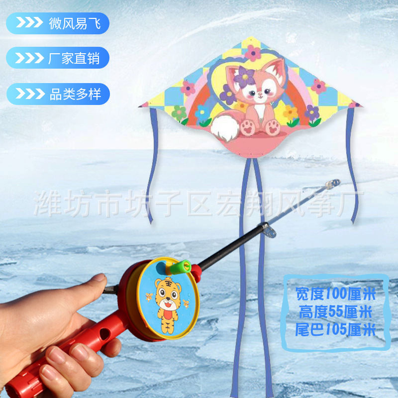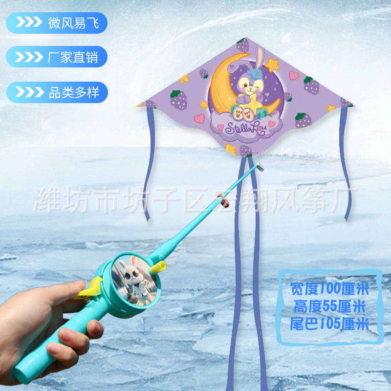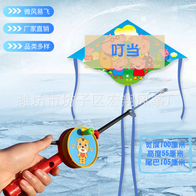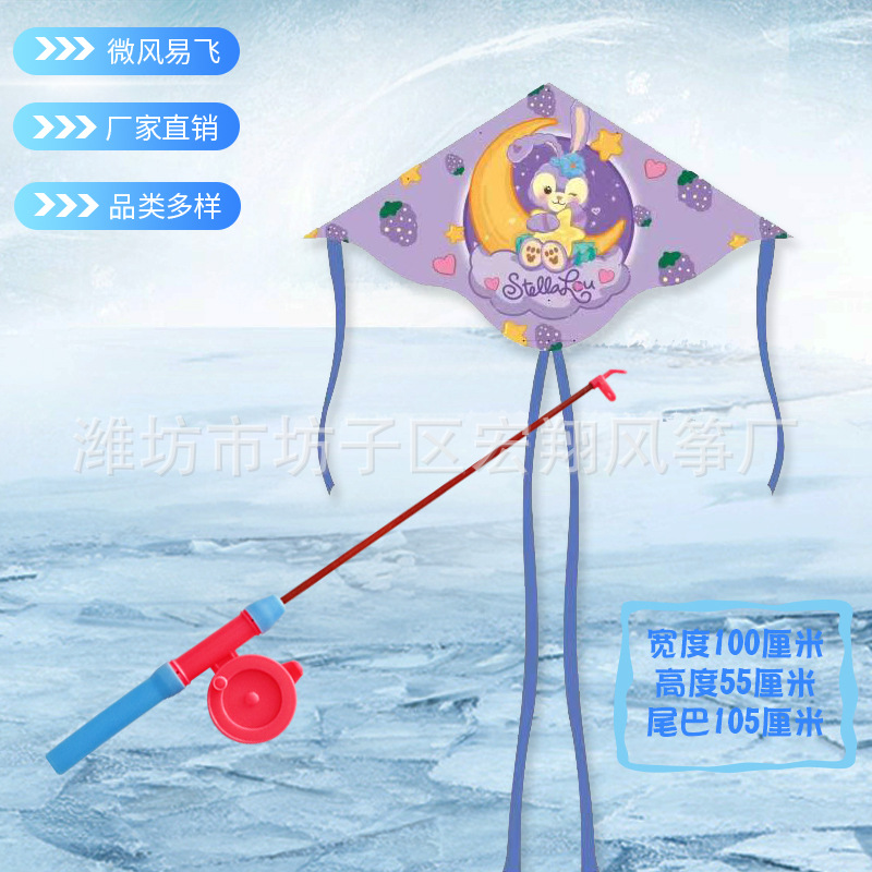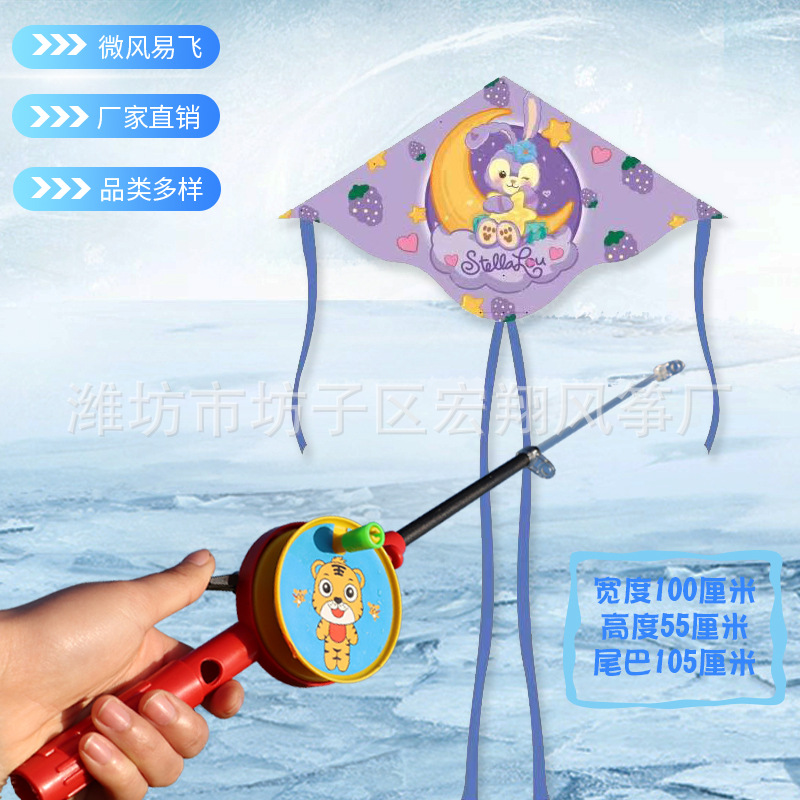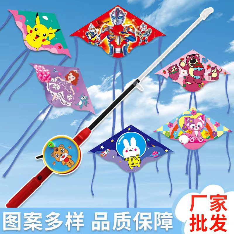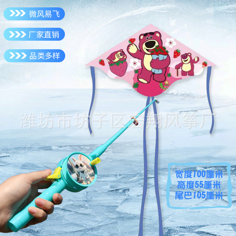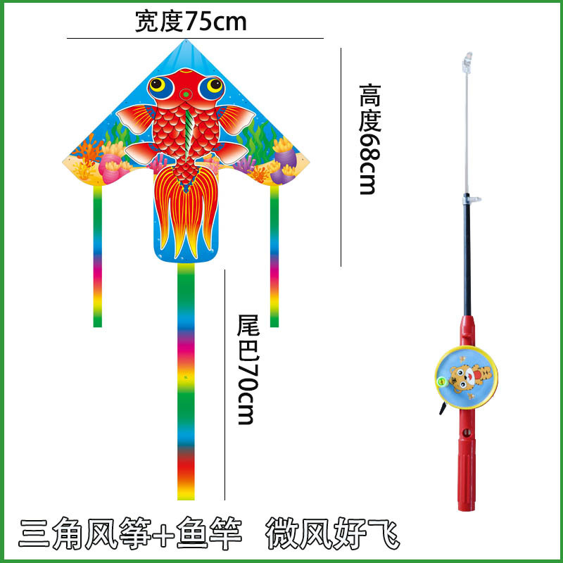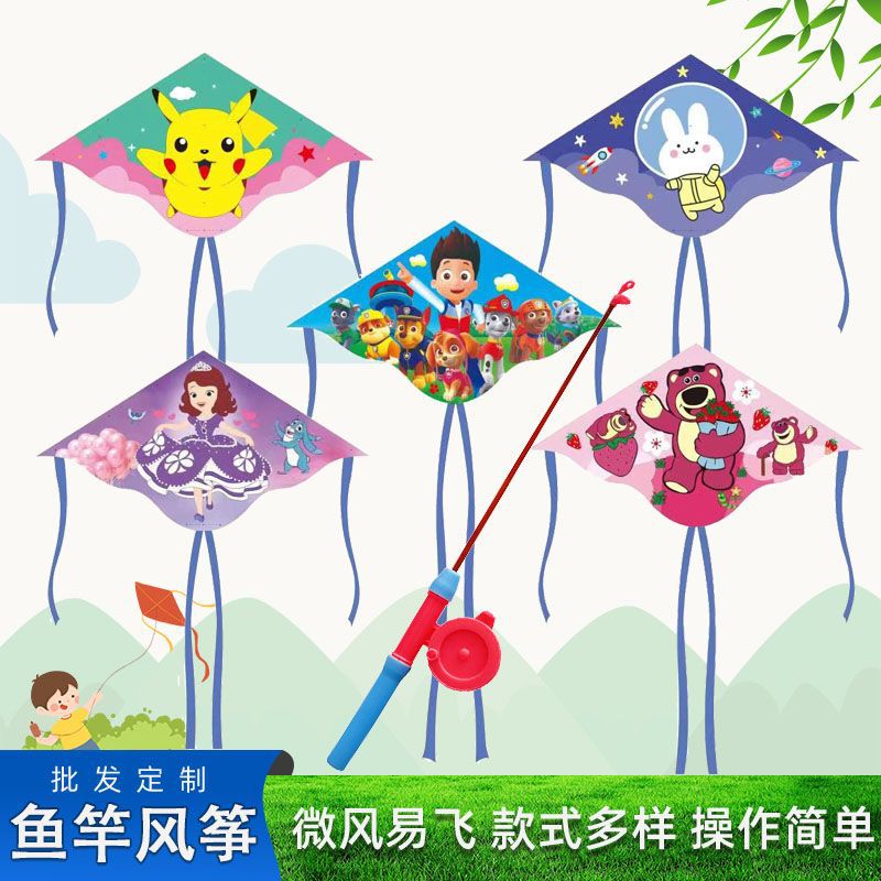 鱼竿风筝批发 儿童手持钓鱼竿风筝 微风易飞户外公园手持小风筝