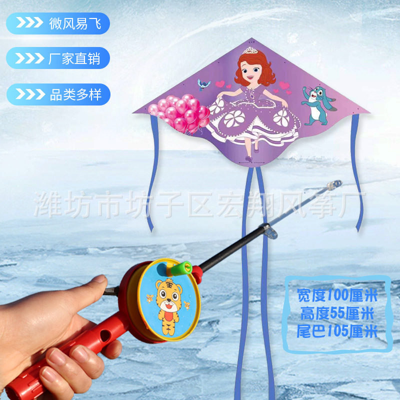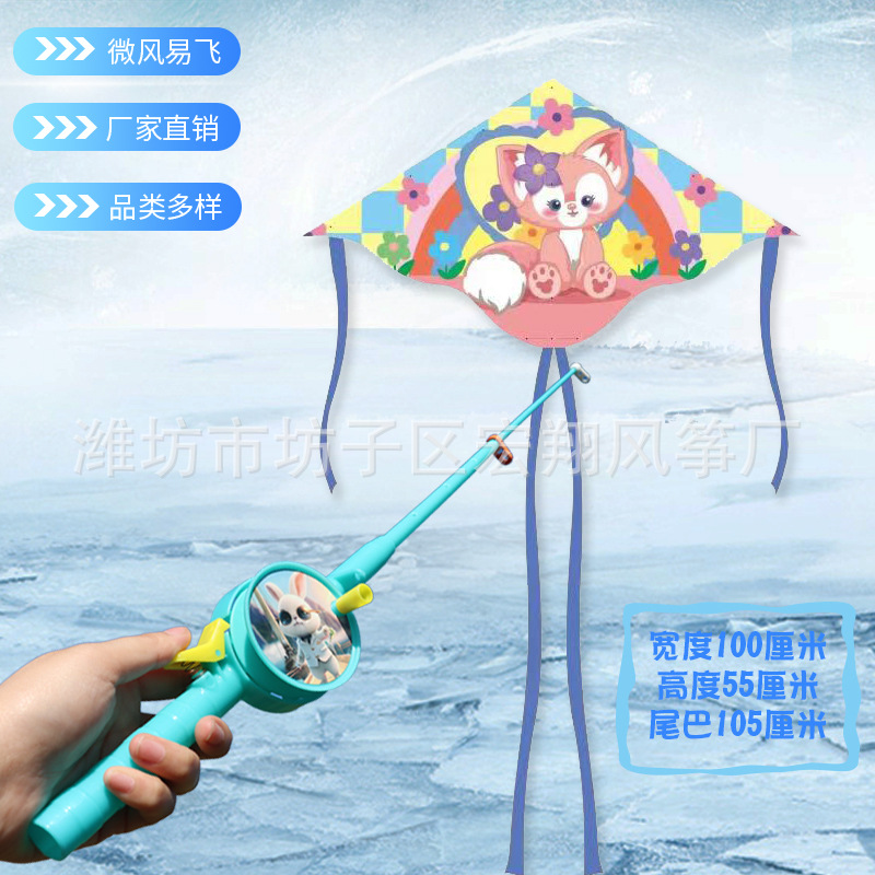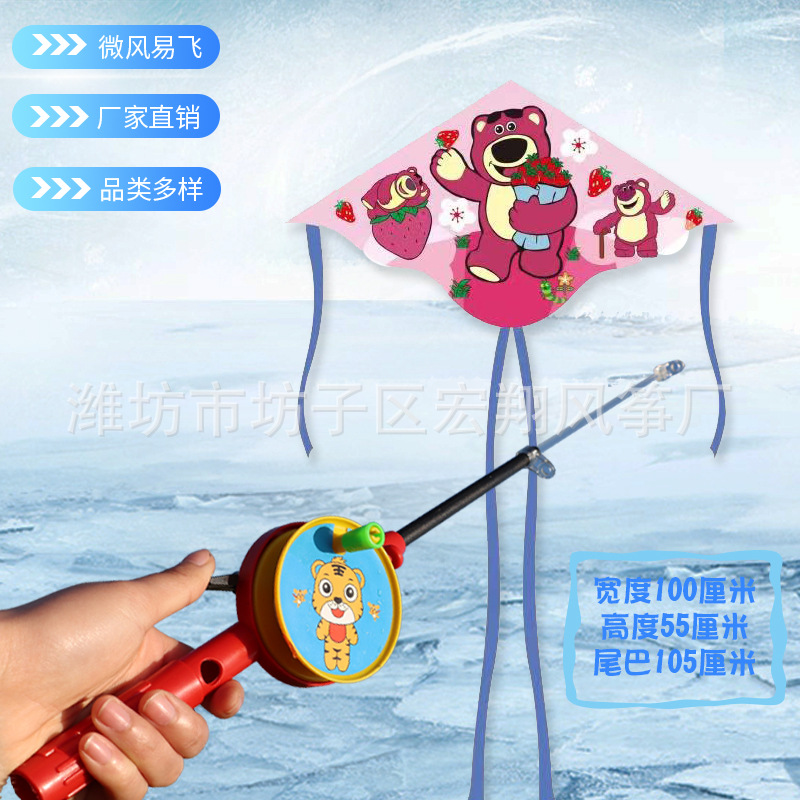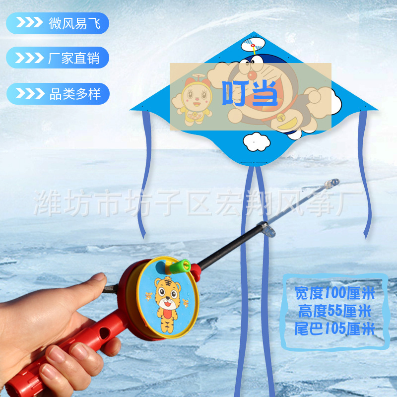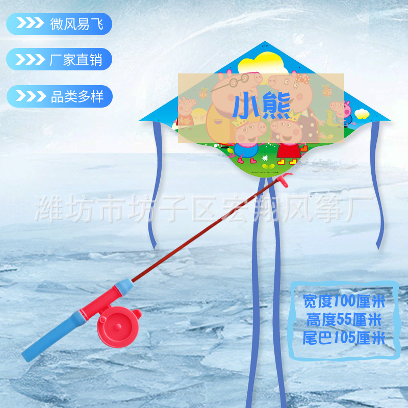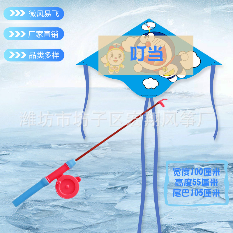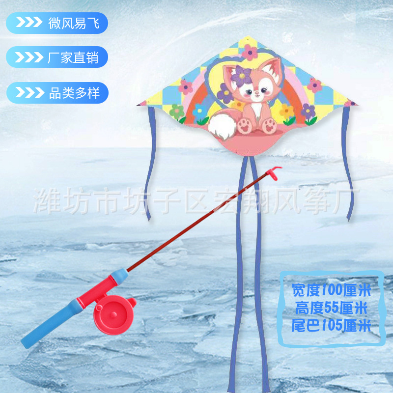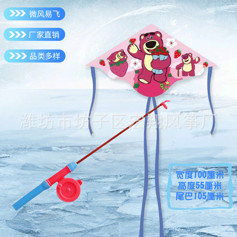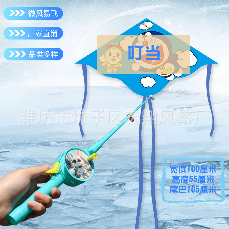 鱼竿风筝批发 儿童手持钓鱼竿风筝 微风易飞户外公园手持小风筝