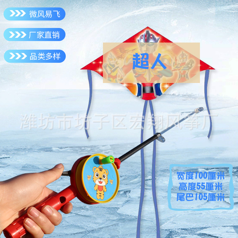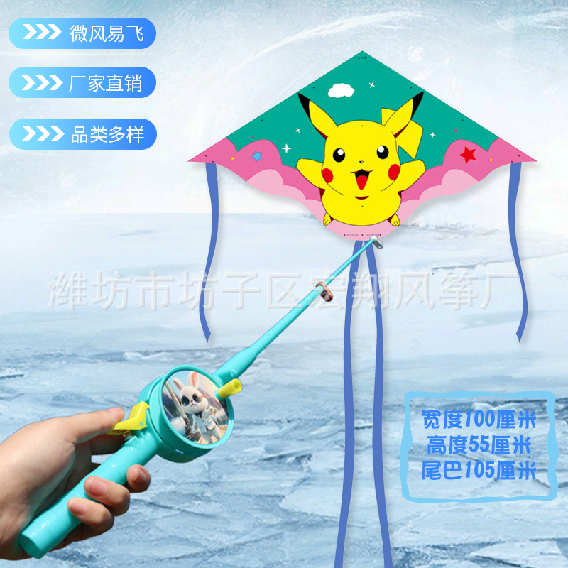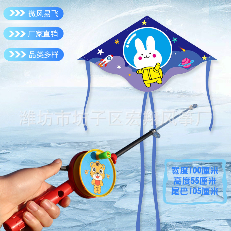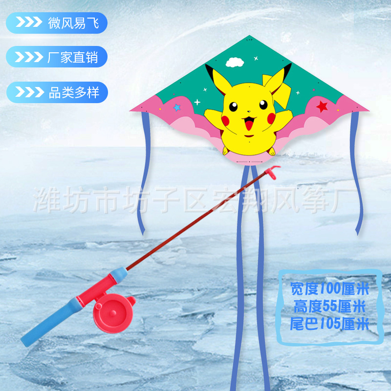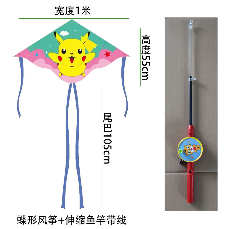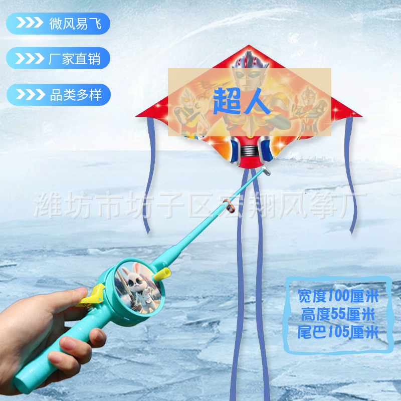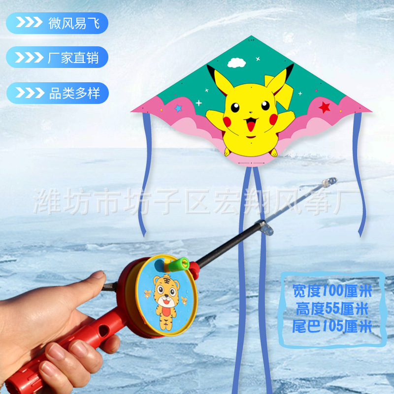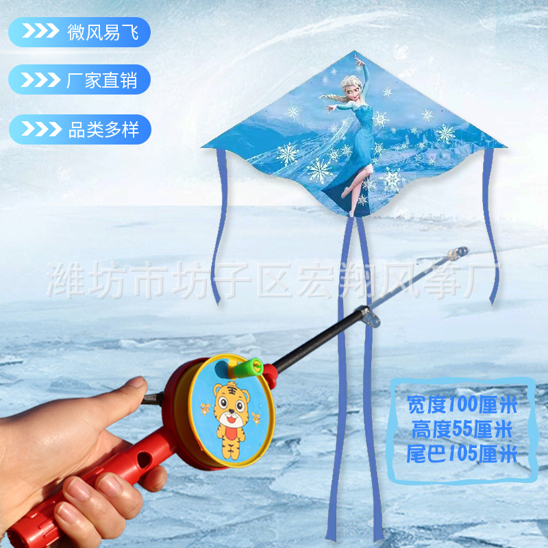 鱼竿风筝批发 儿童手持钓鱼竿风筝 微风易飞户外公园手持小风筝