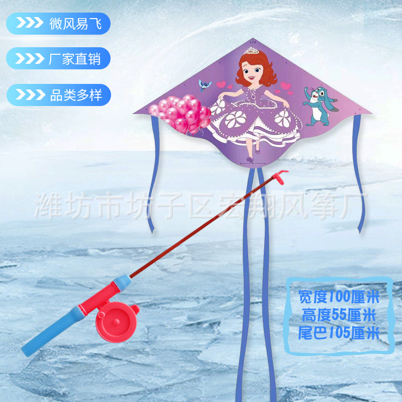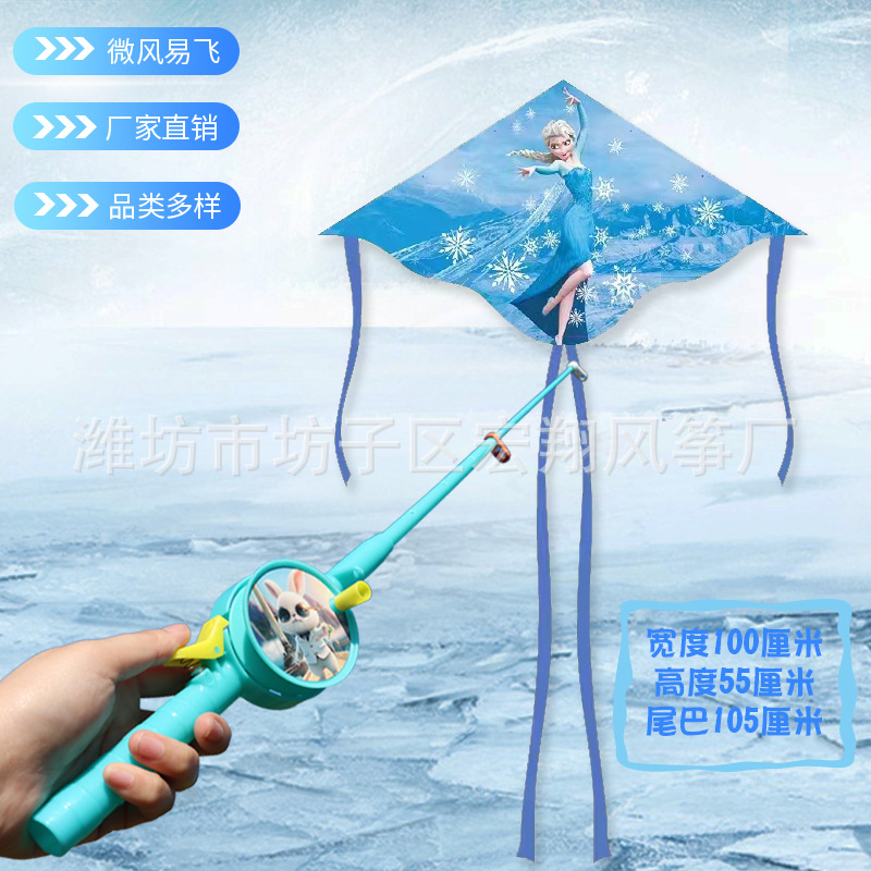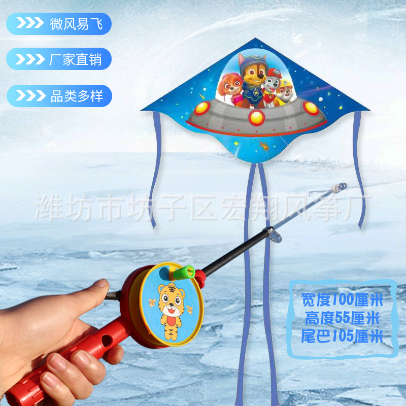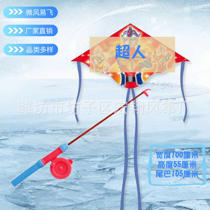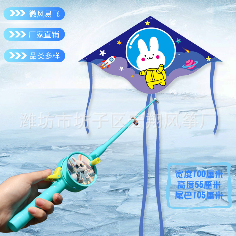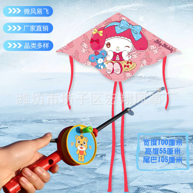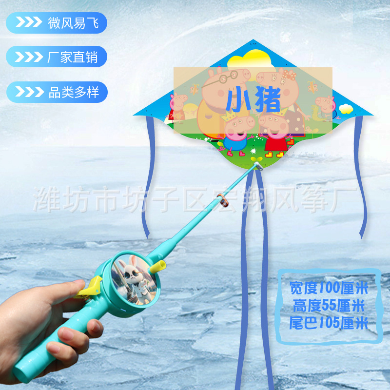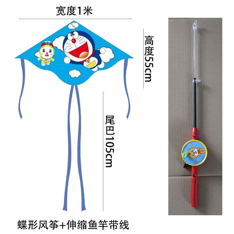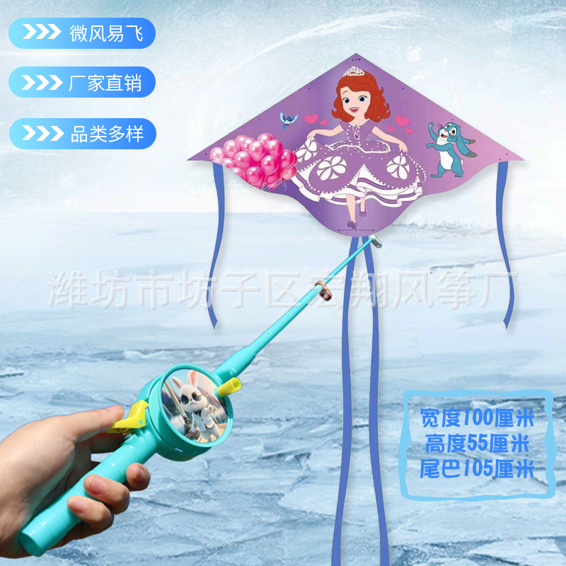 鱼竿风筝批发 儿童手持钓鱼竿风筝 微风易飞户外公园手持小风筝