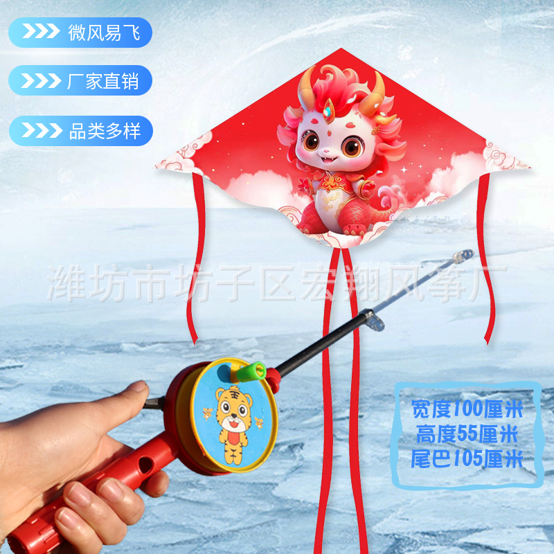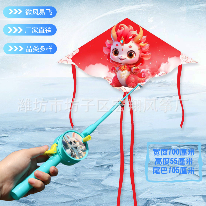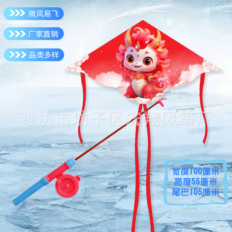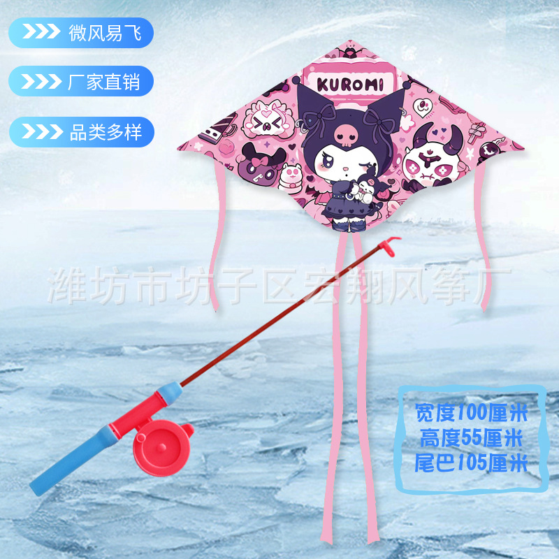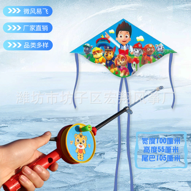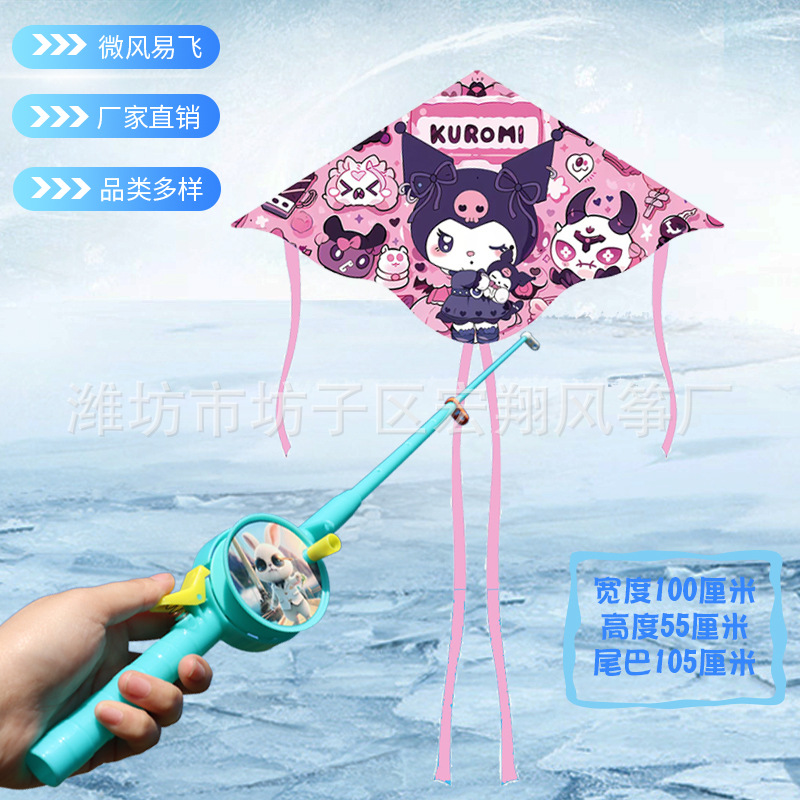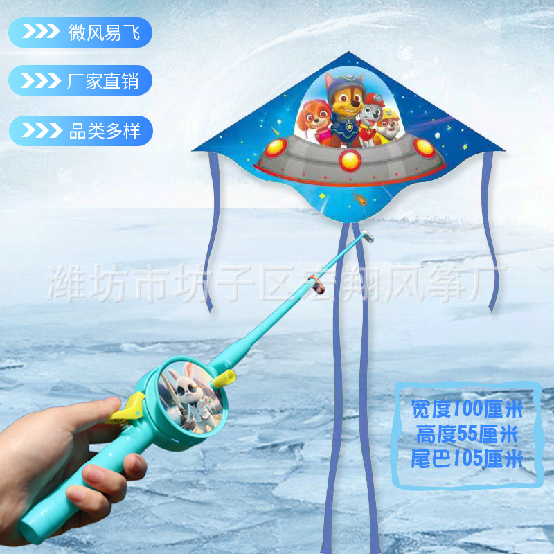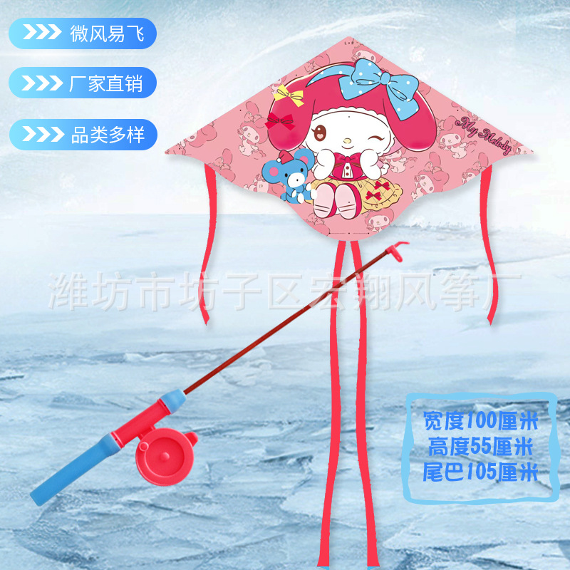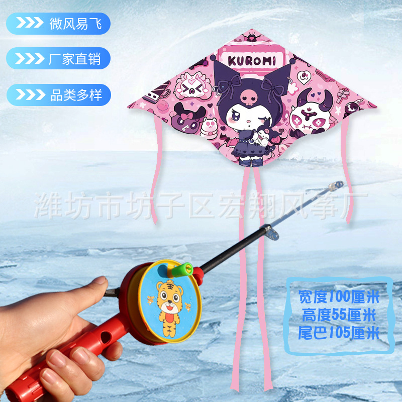 鱼竿风筝批发 儿童手持钓鱼竿风筝 微风易飞户外公园手持小风筝