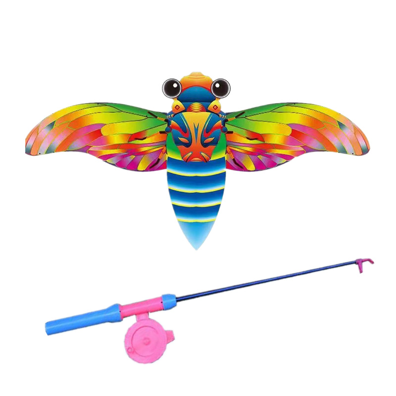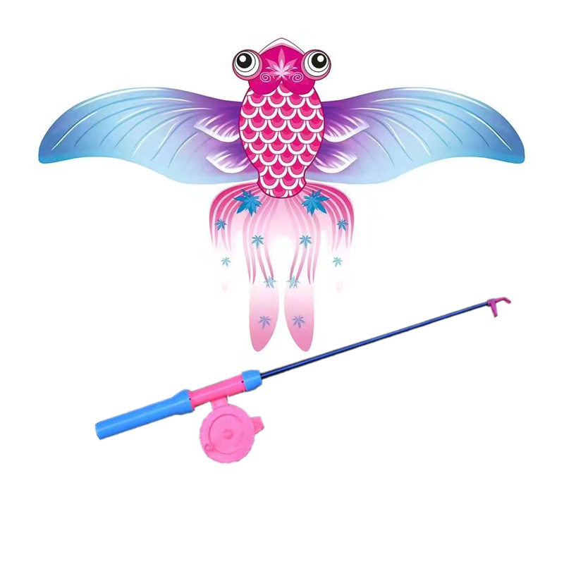 新款儿童动态鱼竿风筝批发手持鱼竿风筝金鱼老鹰地摊玩具厂家批发