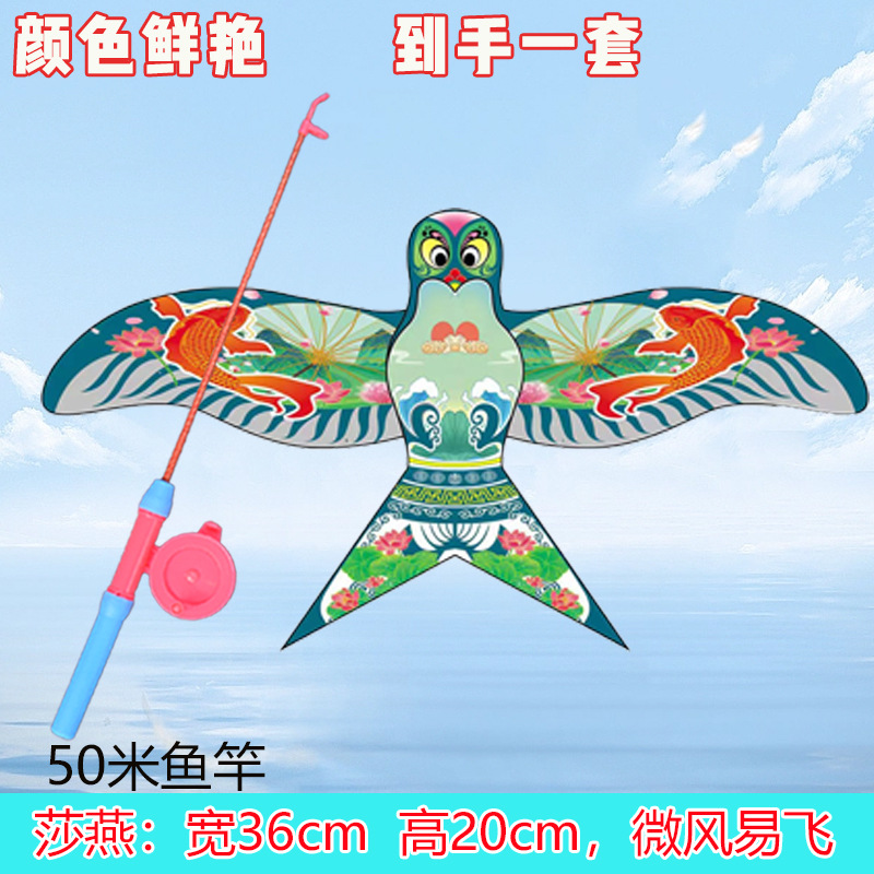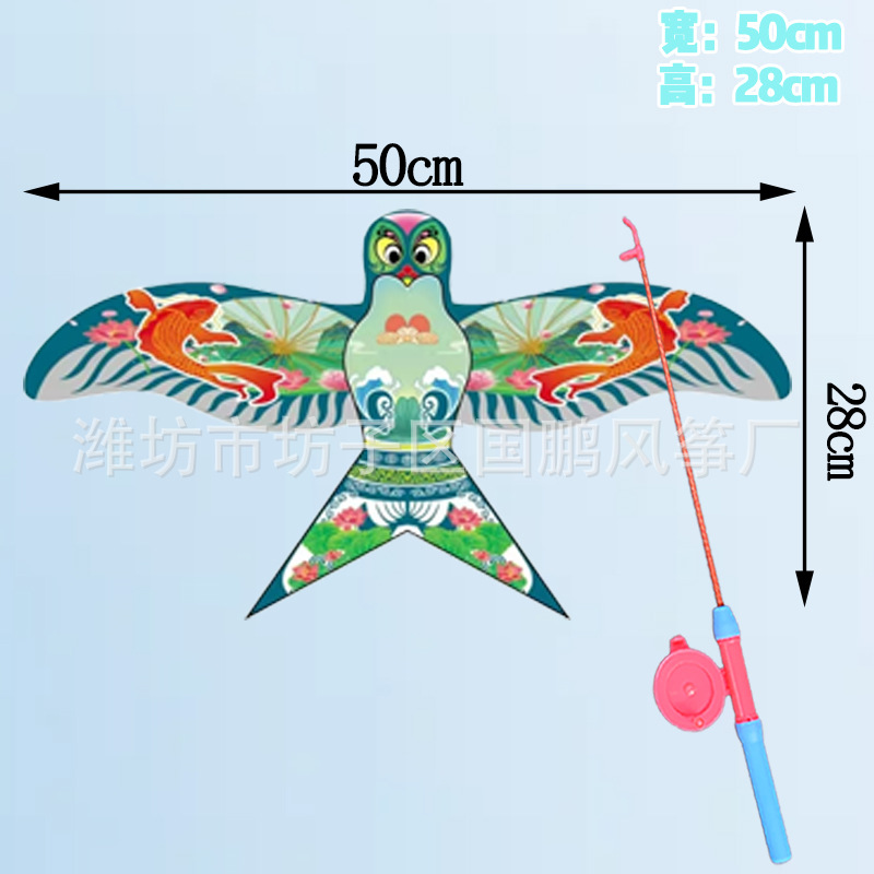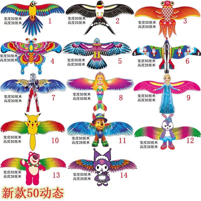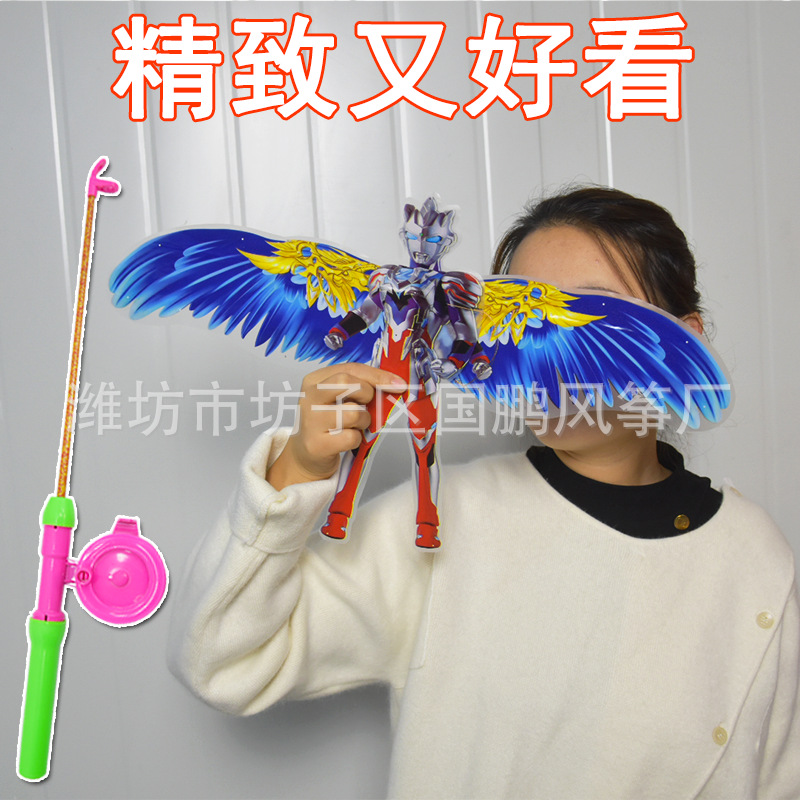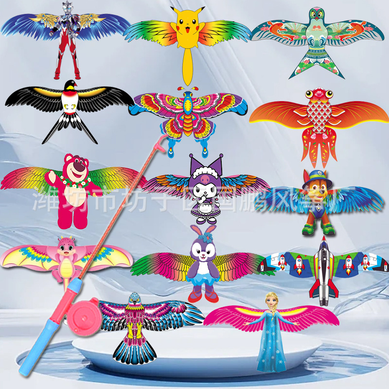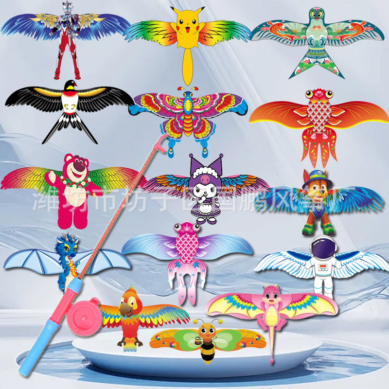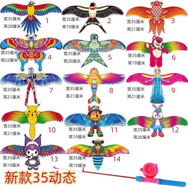 动态风筝批发儿童卡通易飞翅膀抖动鱼竿风筝摆摊玩具燕子蝴蝶鱼鹰