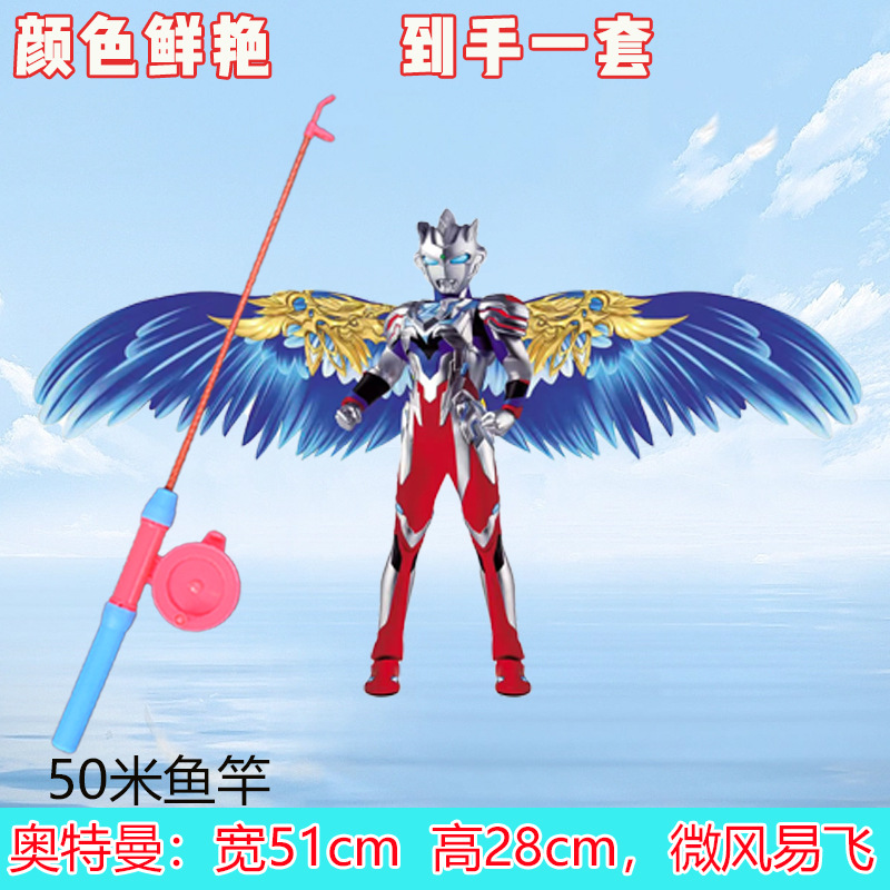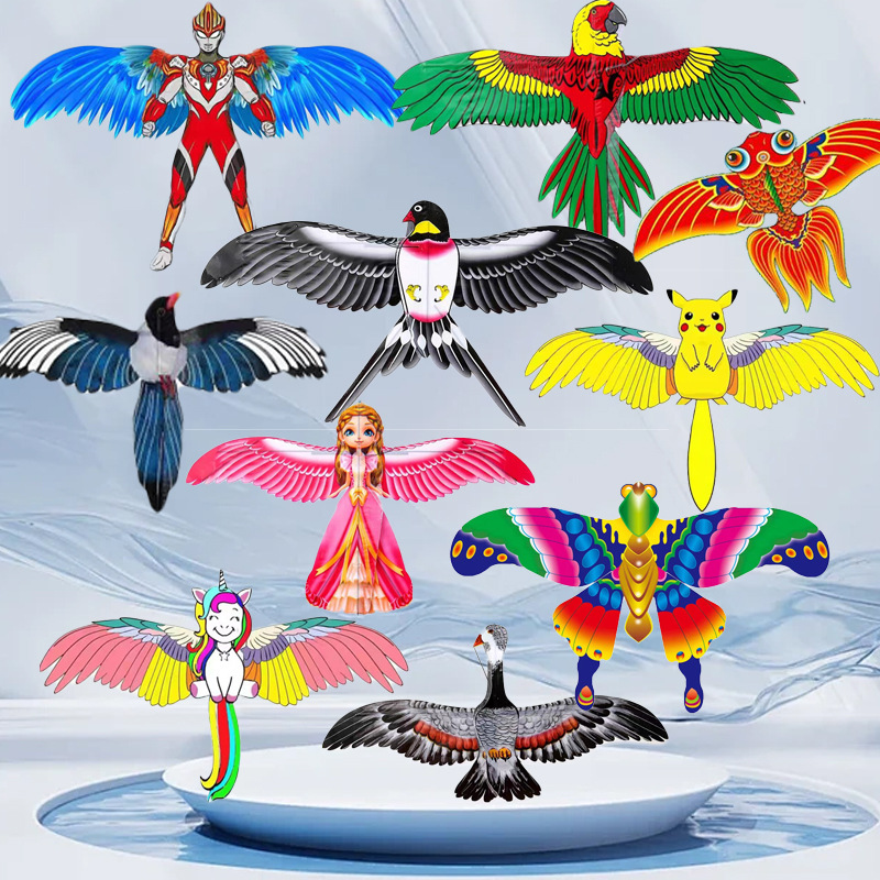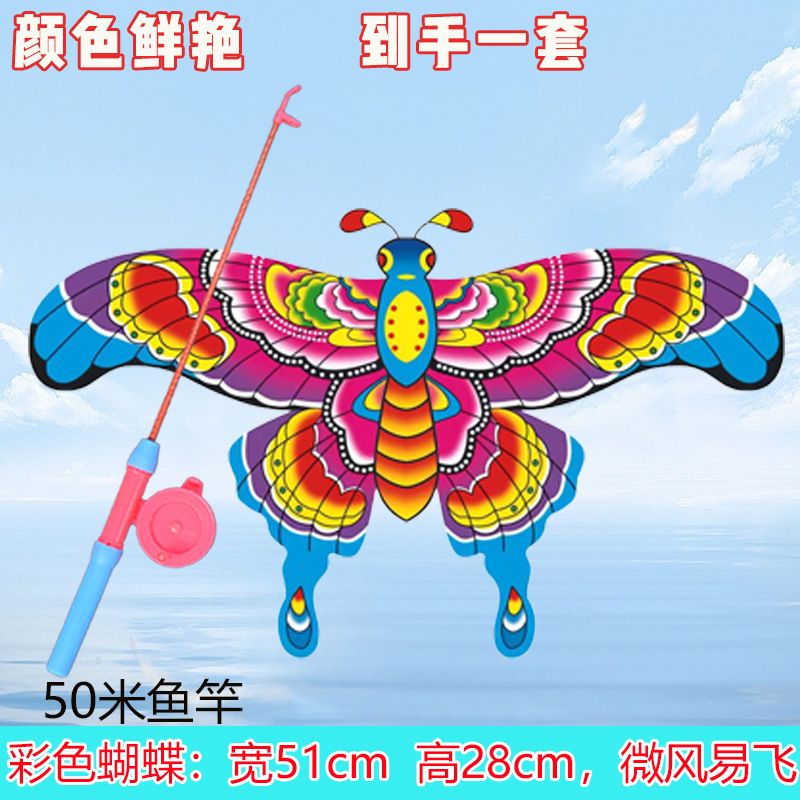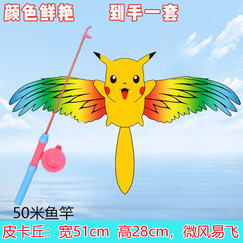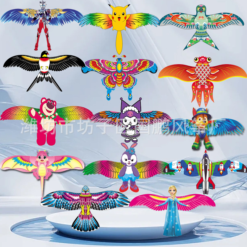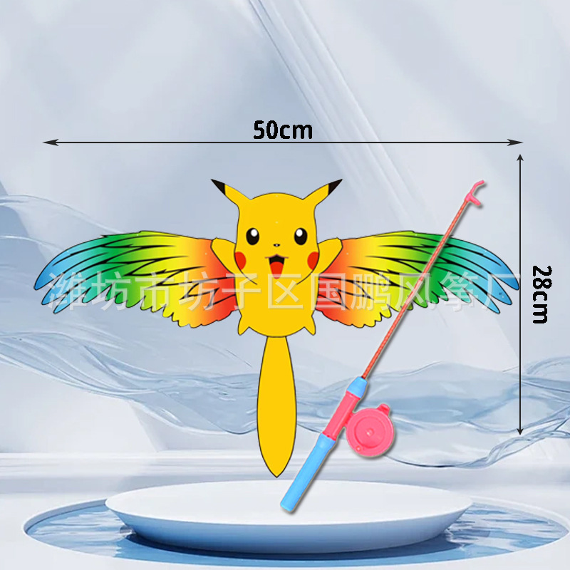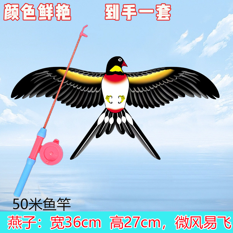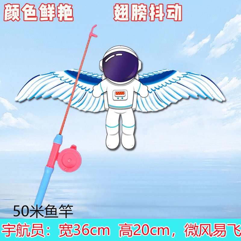 动态风筝批发儿童卡通易飞翅膀抖动鱼竿风筝摆摊玩具燕子蝴蝶鱼鹰