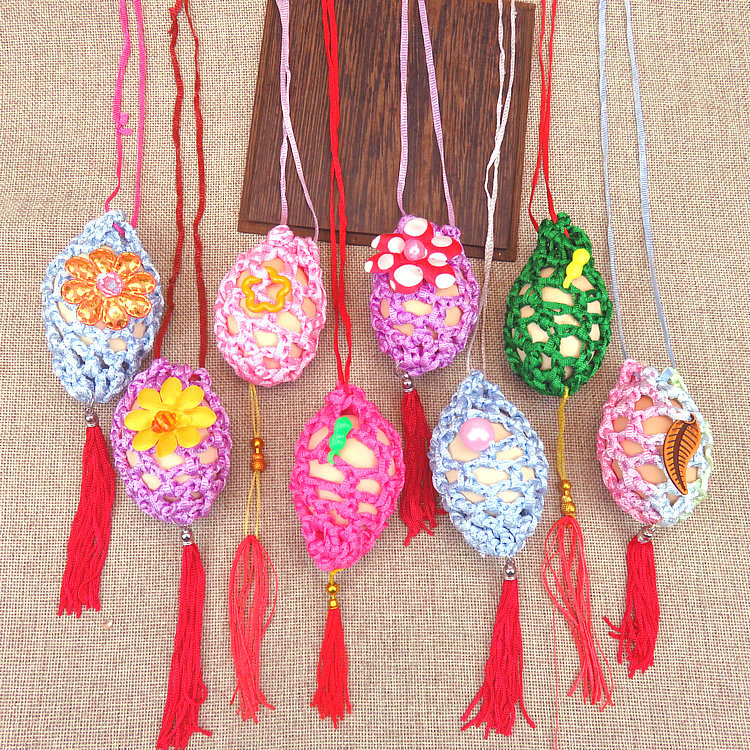 手工编织挂脖宝宝毛线金鱼蛋网 立夏端午节鸡蛋蛋袋成品儿童饰品