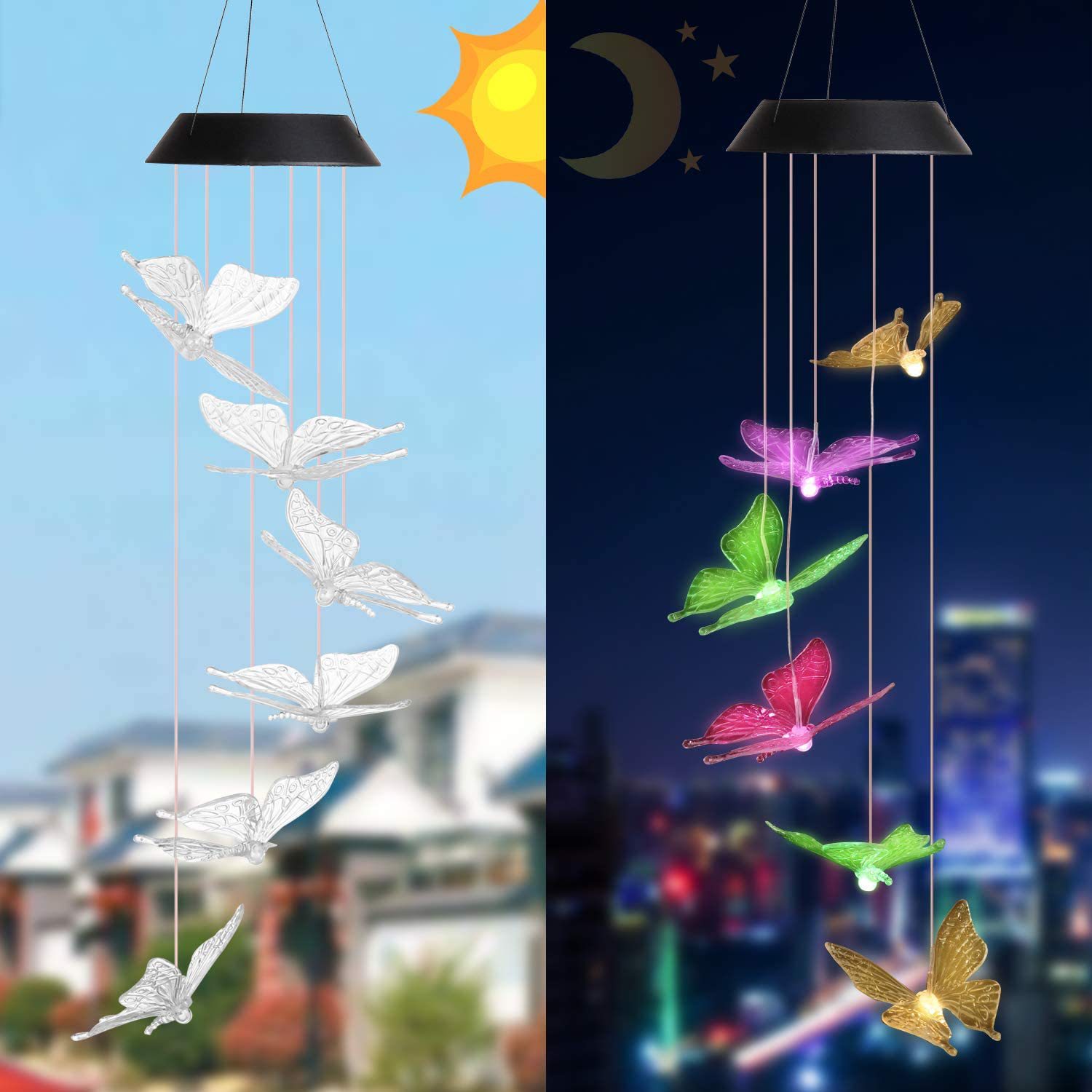 太阳能蝴蝶风铃灯跨境爆款户外花园装饰七彩变色6LED太阳能风铃灯