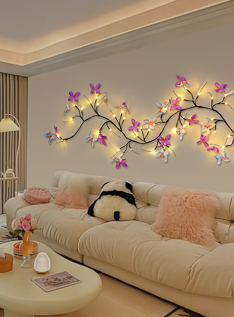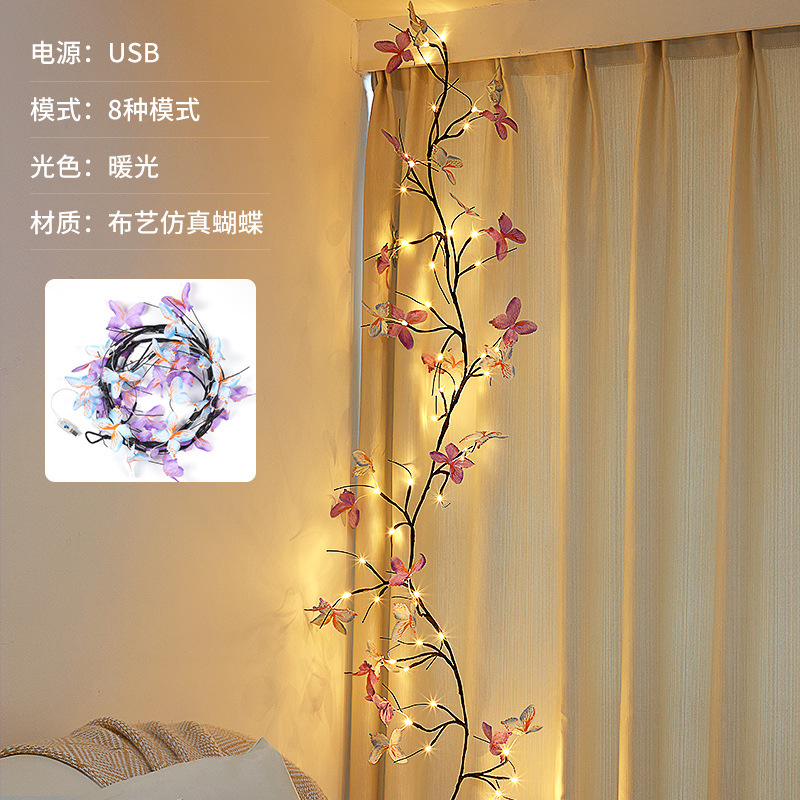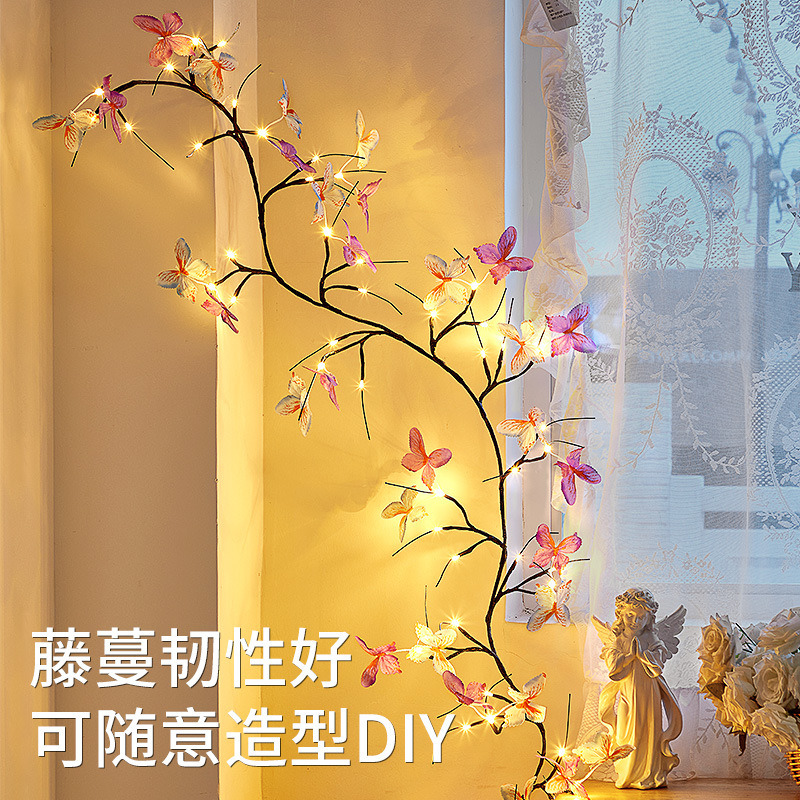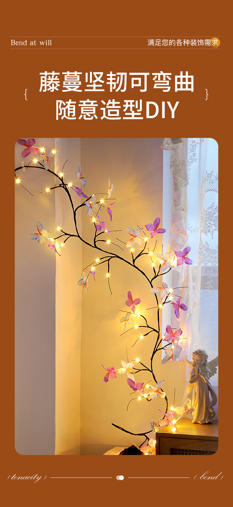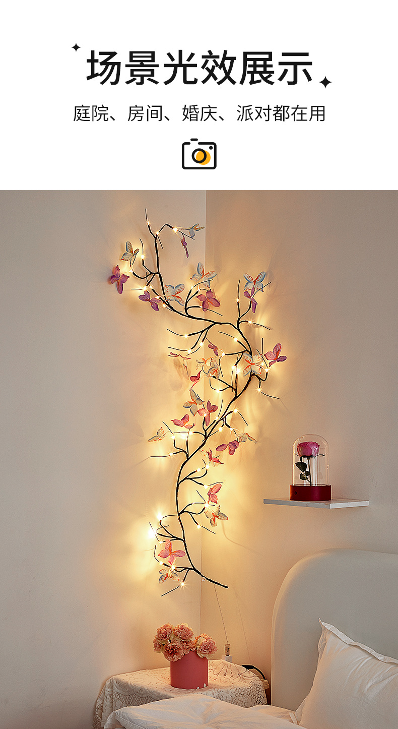 LED蝴蝶藤条灯树枝仿真布置室内装饰浪漫氛围灯卧室墙面造型灯