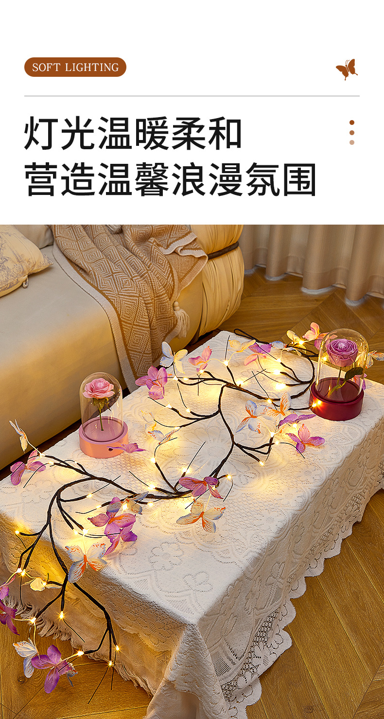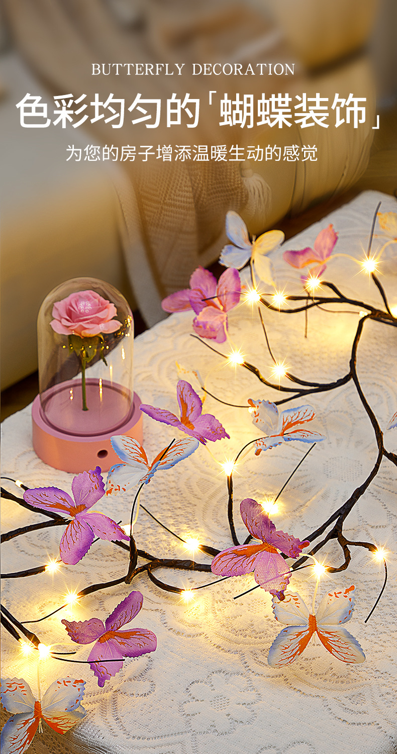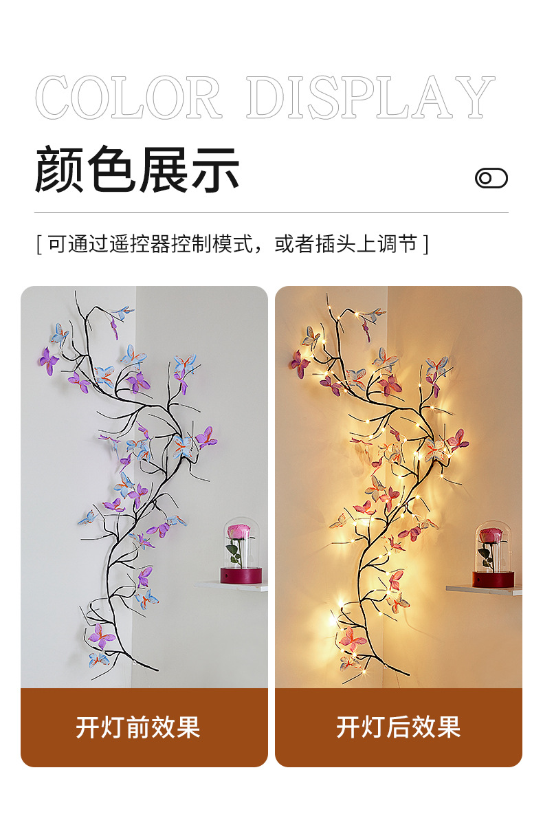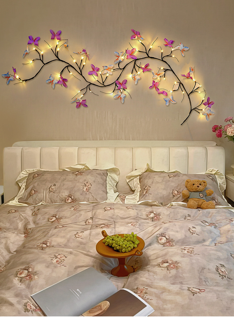 LED蝴蝶藤条灯树枝仿真布置室内装饰浪漫氛围灯卧室墙面造型灯