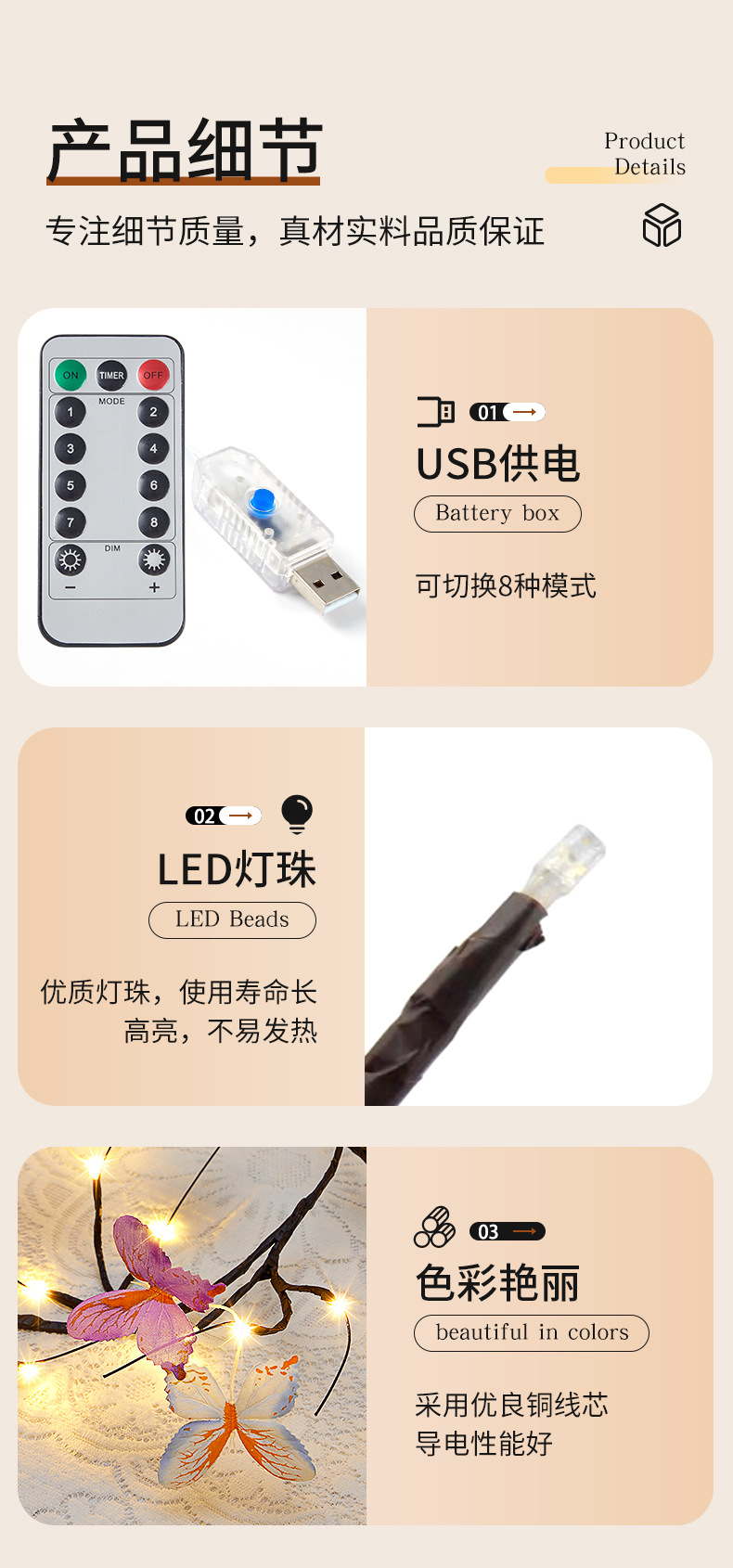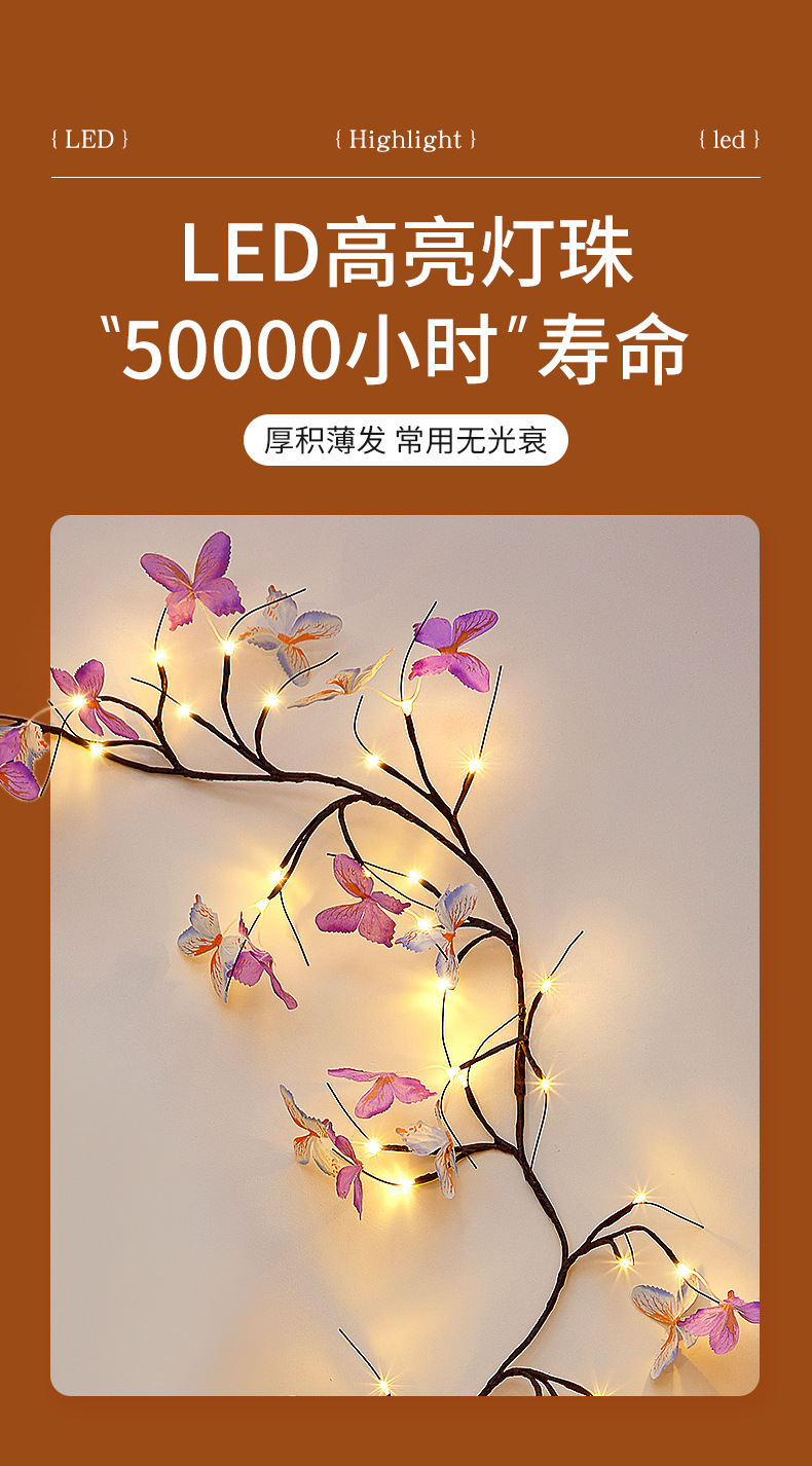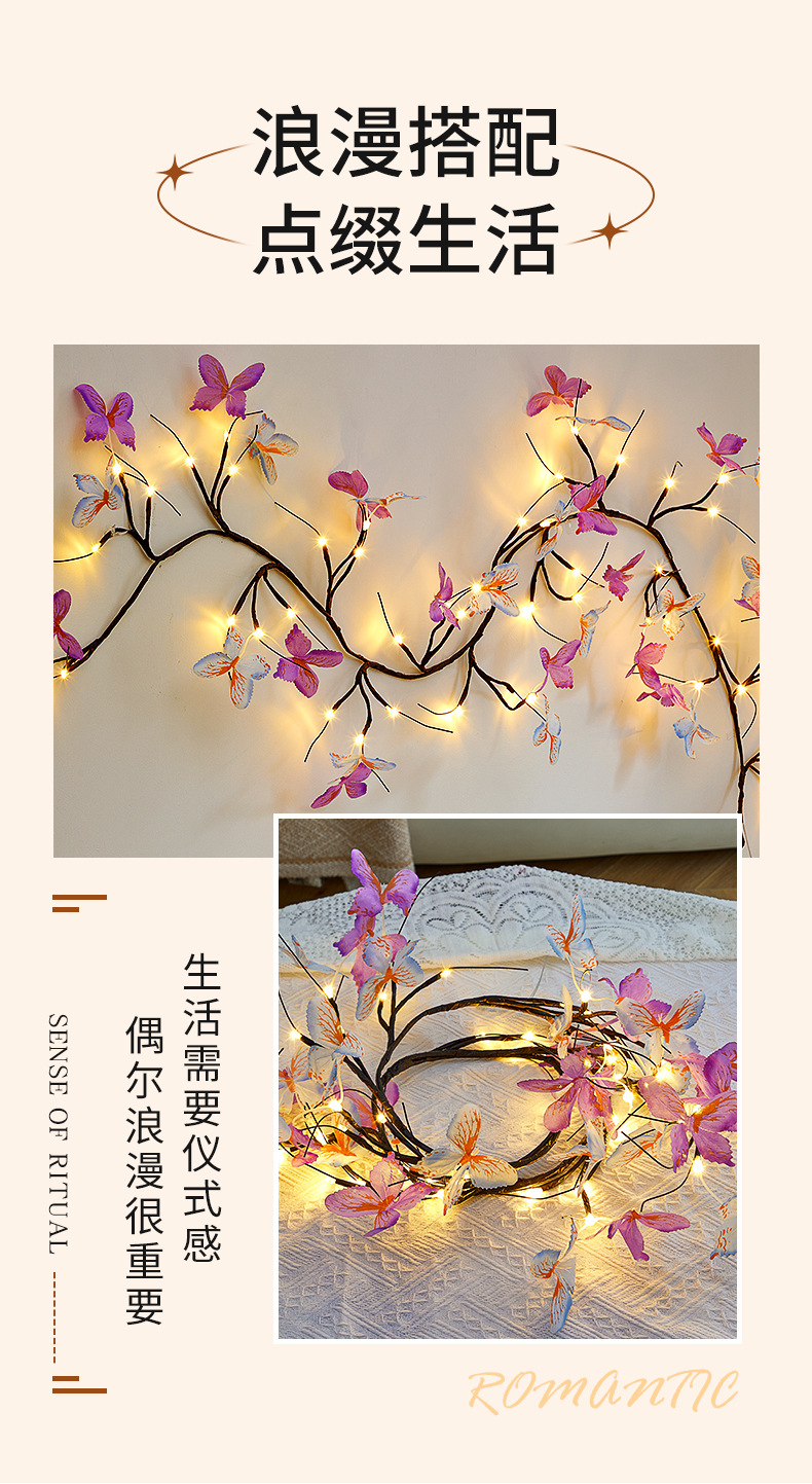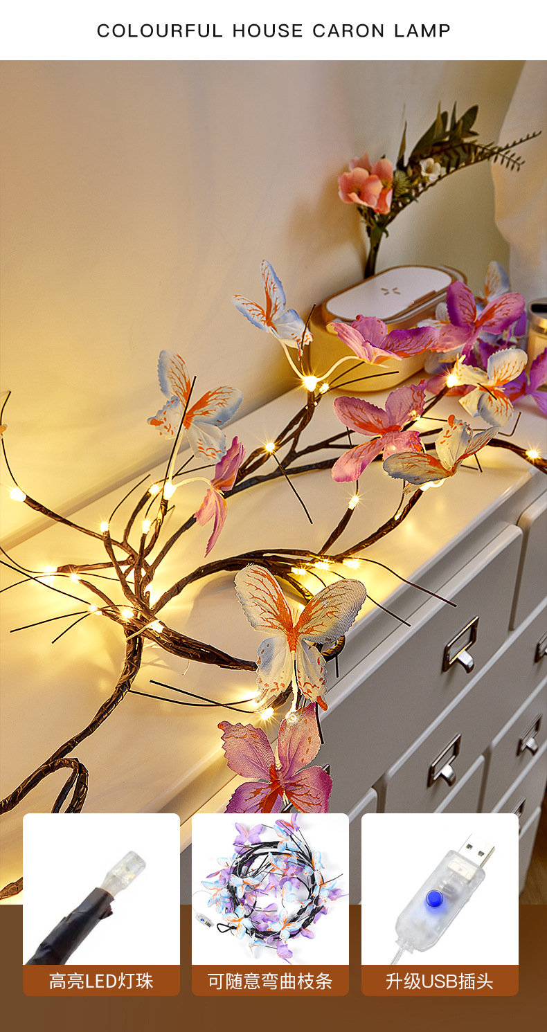 LED蝴蝶藤条灯树枝仿真布置室内装饰浪漫氛围灯卧室墙面造型灯