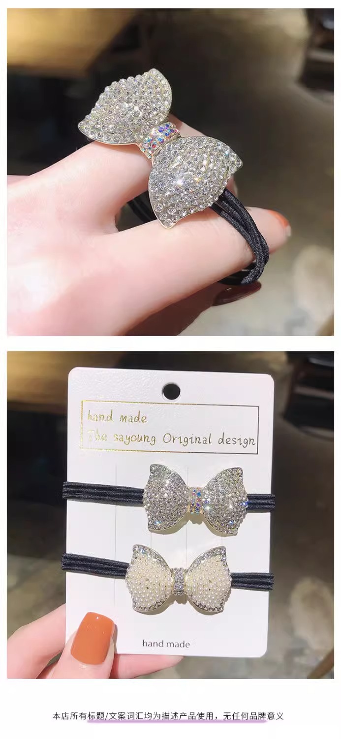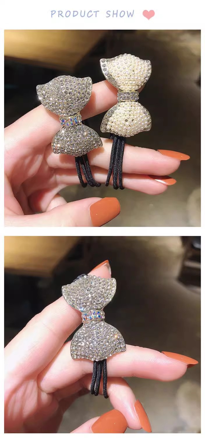 水钻珍珠蝴蝶结发绳发圈韩式女式扎头发皮筋绳子