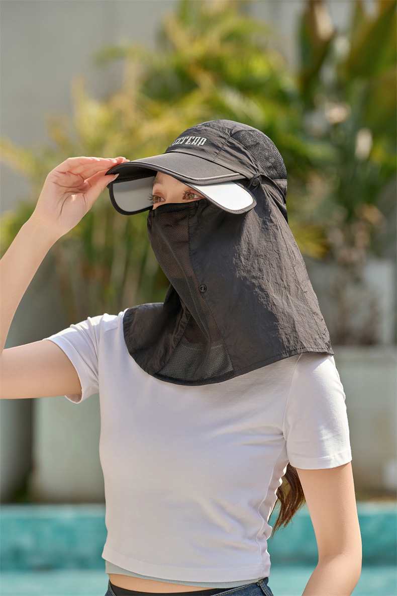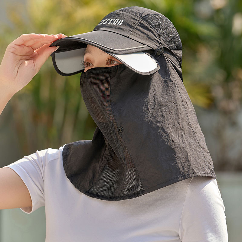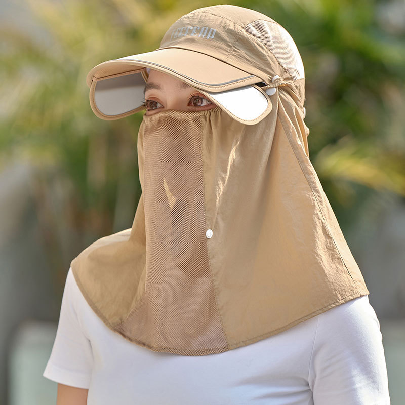 速干遮脸防晒帽子女士户外防晒帽男夏运动登山防紫外线太阳帽骑行
