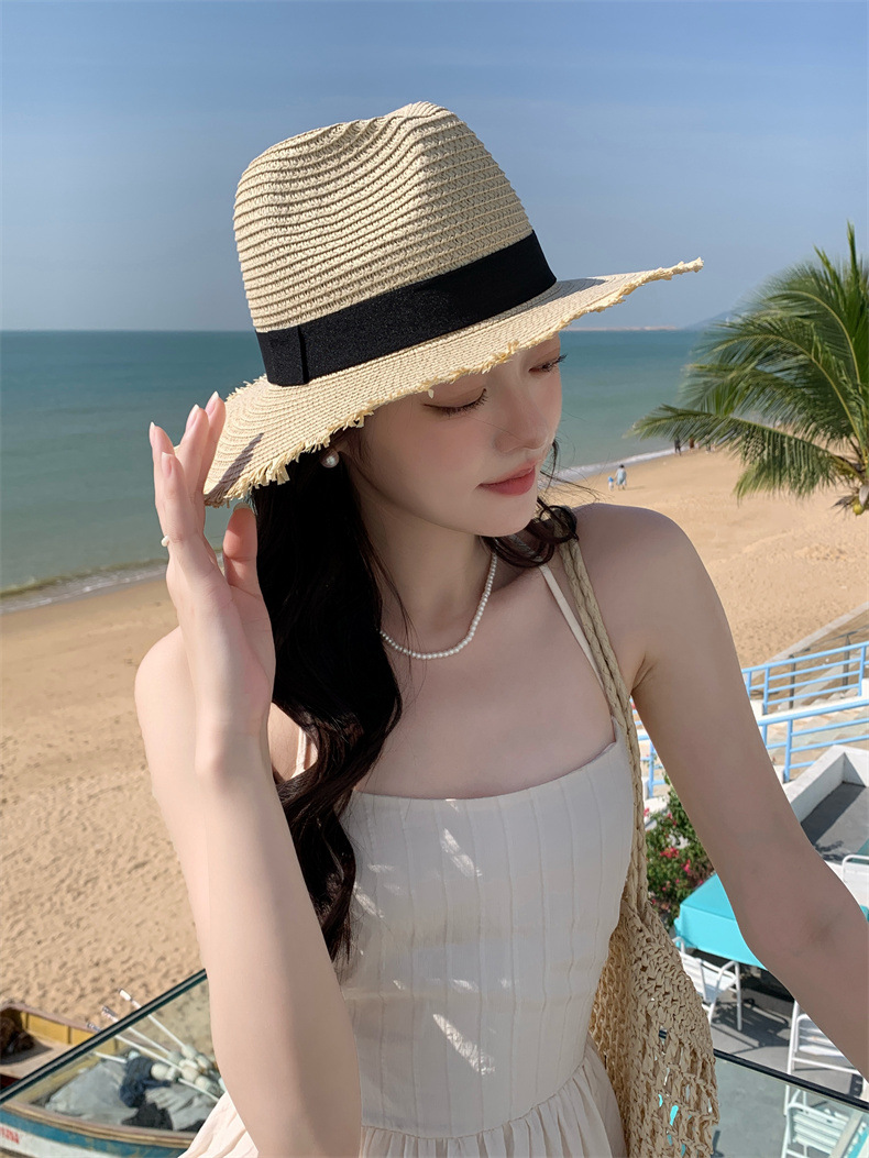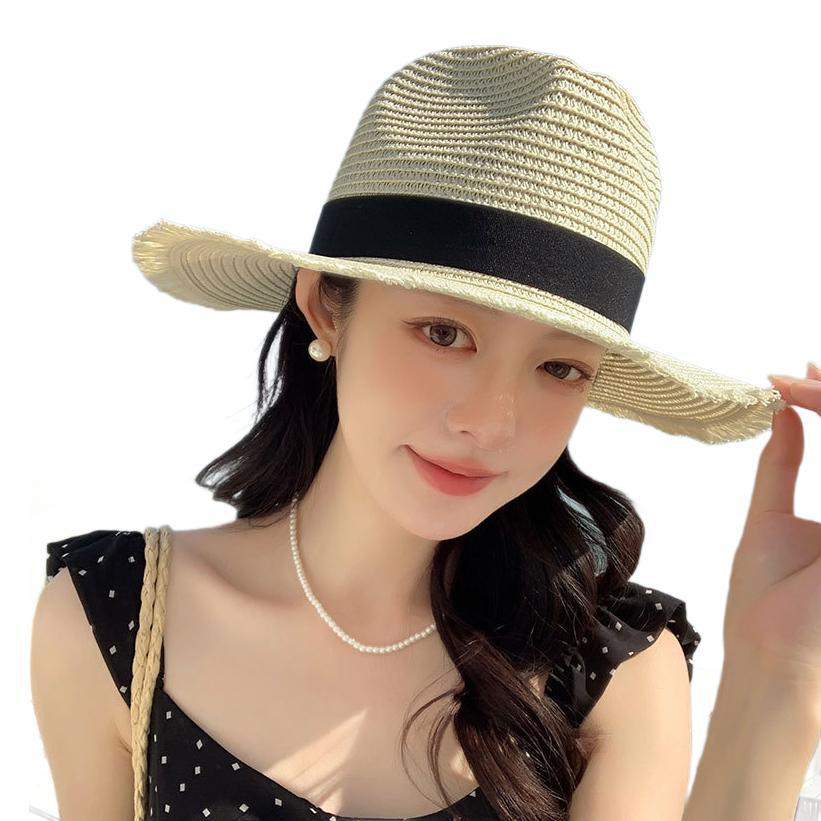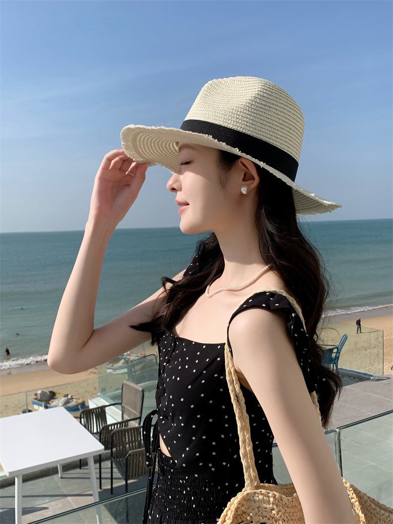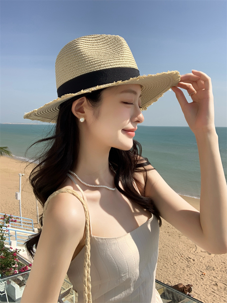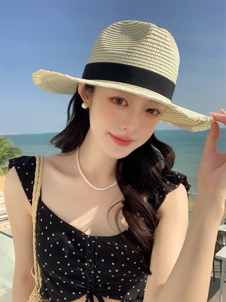 草帽女夏季户外出游防晒遮阳帽透气礼帽简约时尚巴拿马帽男女通用