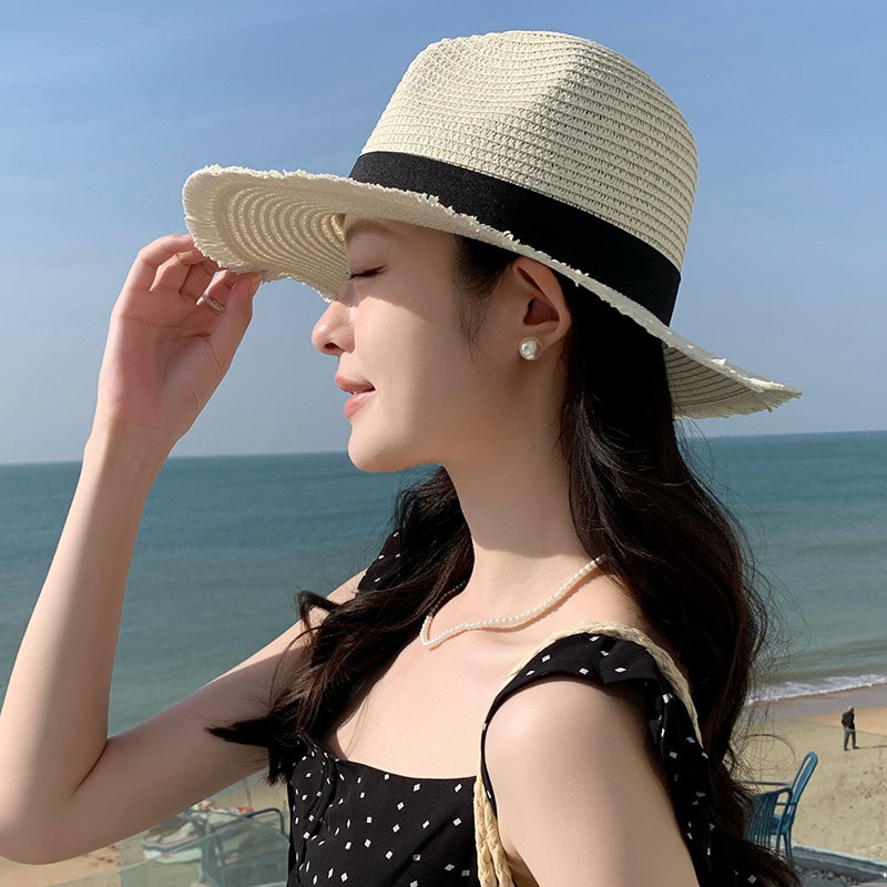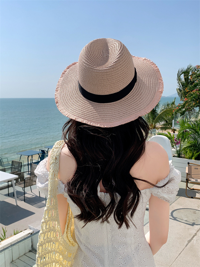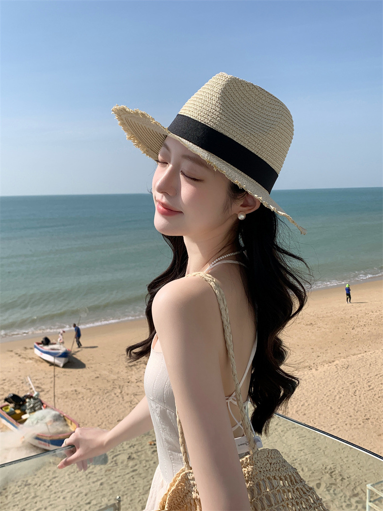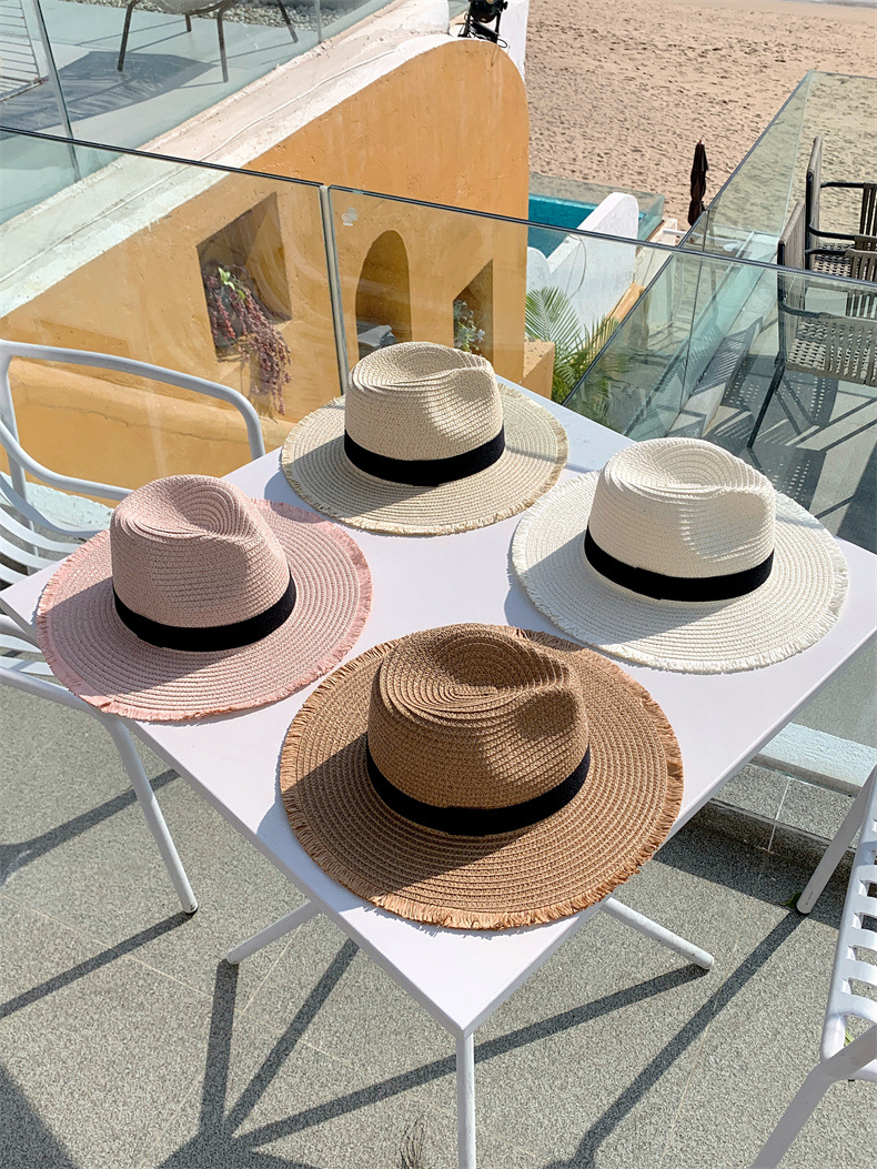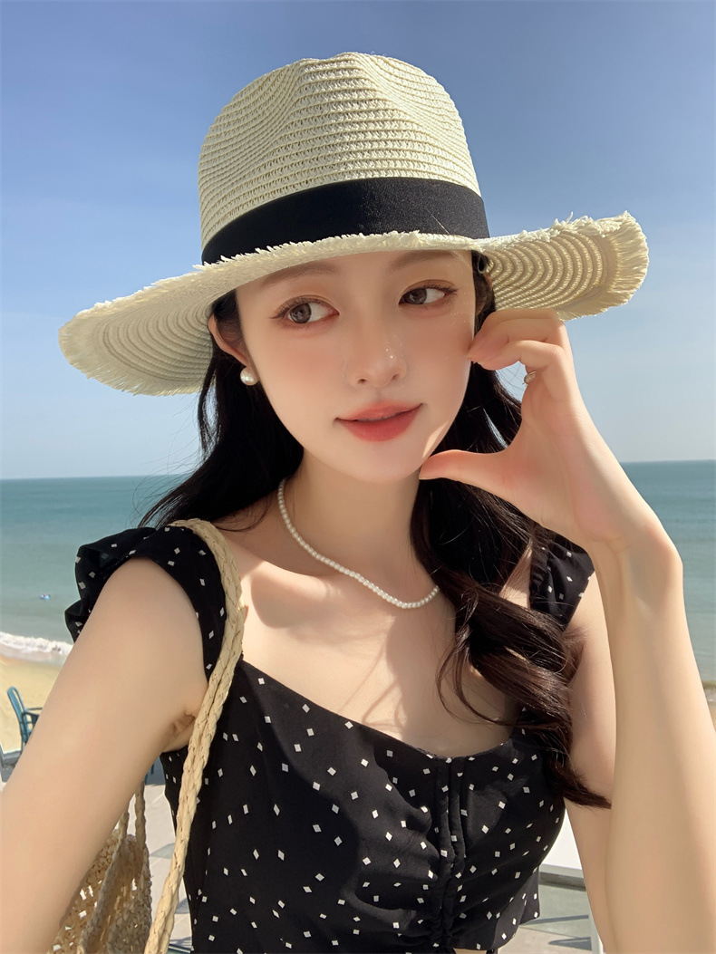 草帽女夏季户外出游防晒遮阳帽透气礼帽简约时尚巴拿马帽男女通用