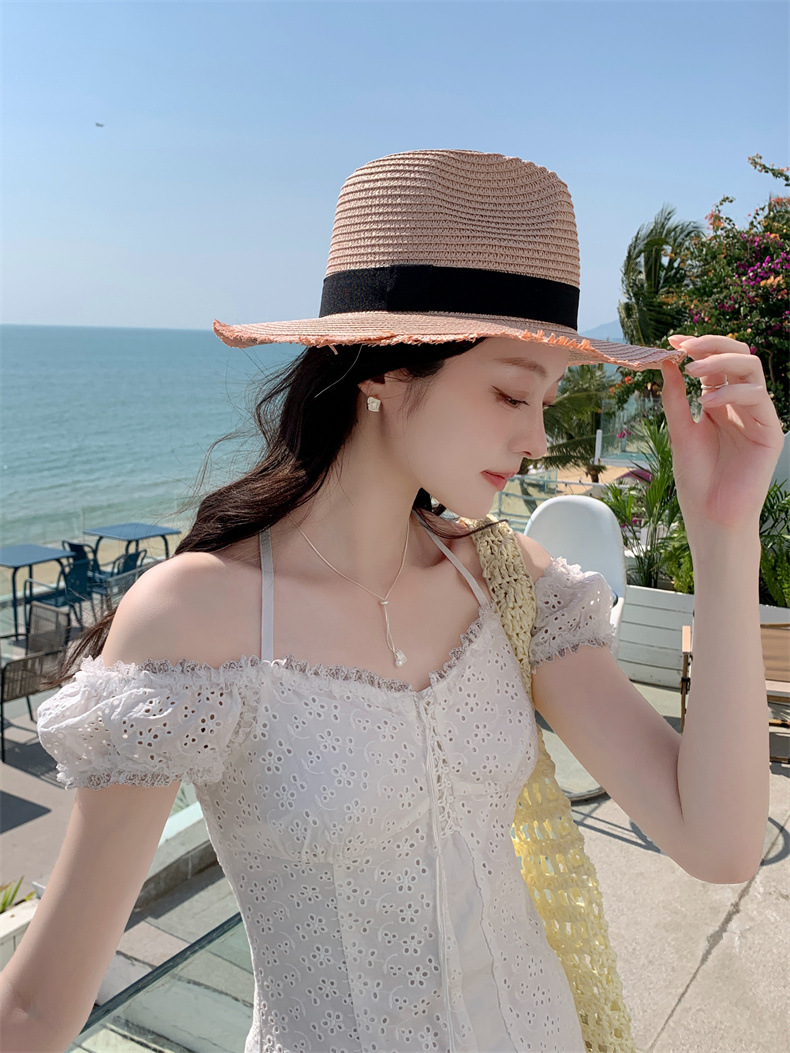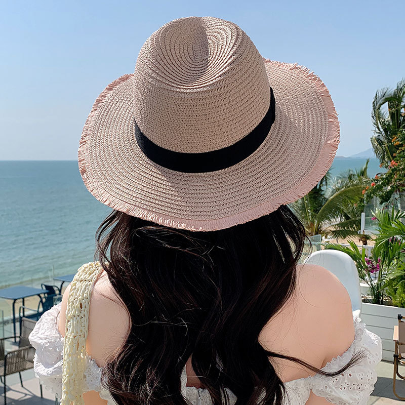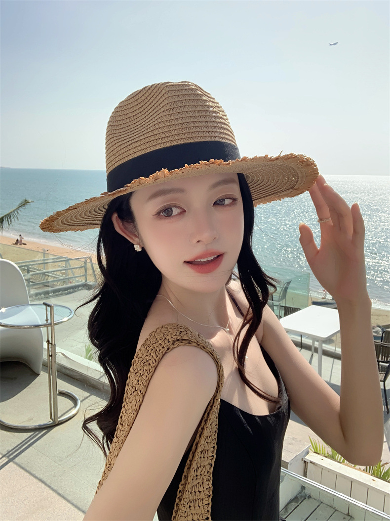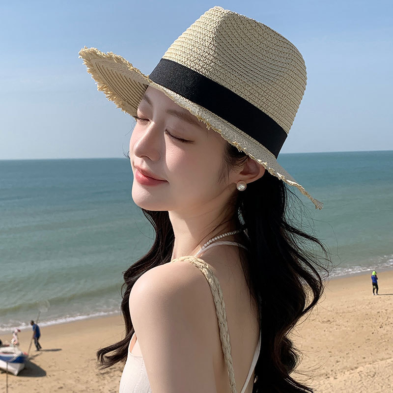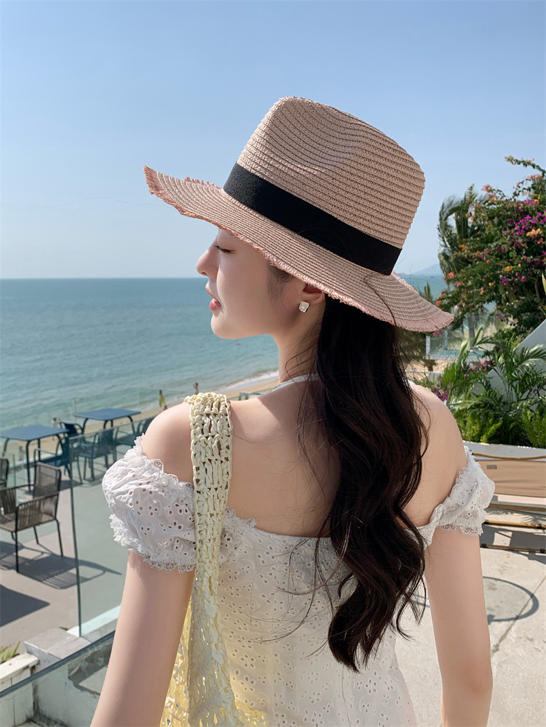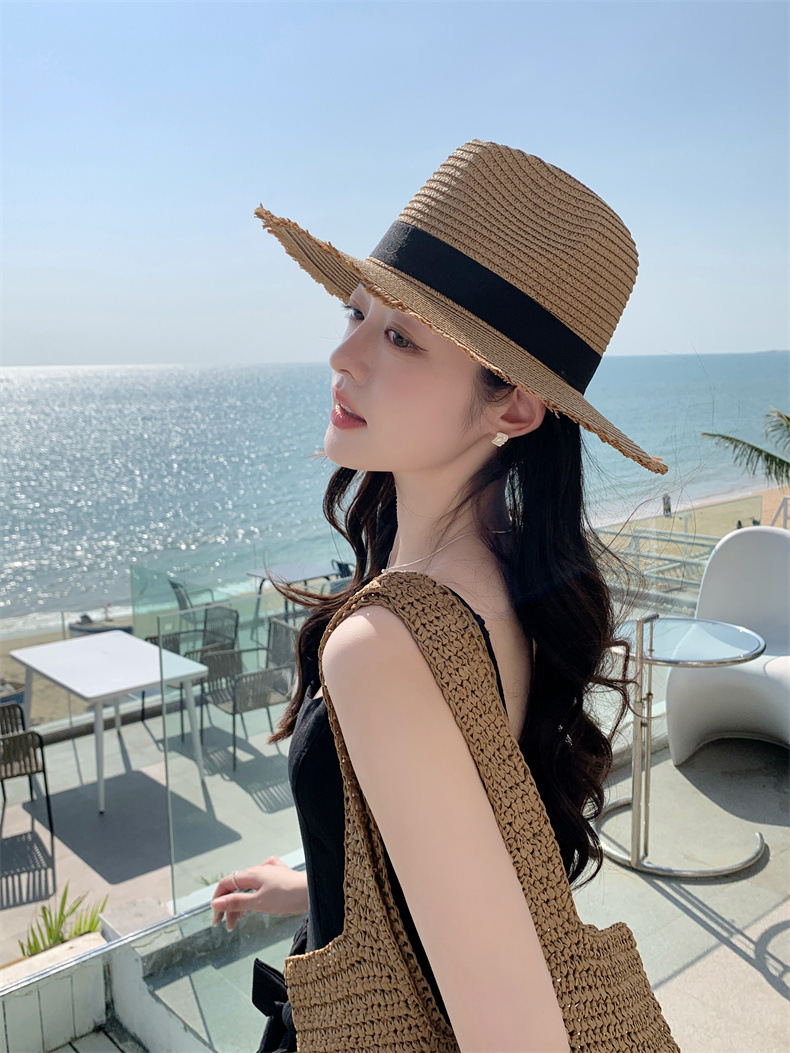 草帽女夏季户外出游防晒遮阳帽透气礼帽简约时尚巴拿马帽男女通用