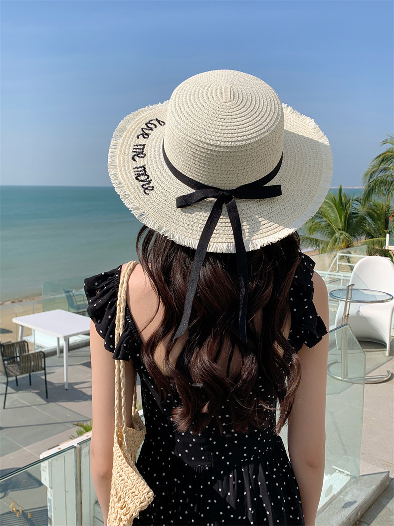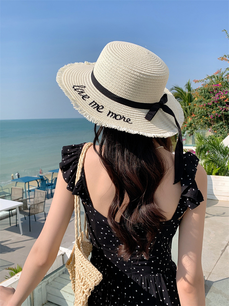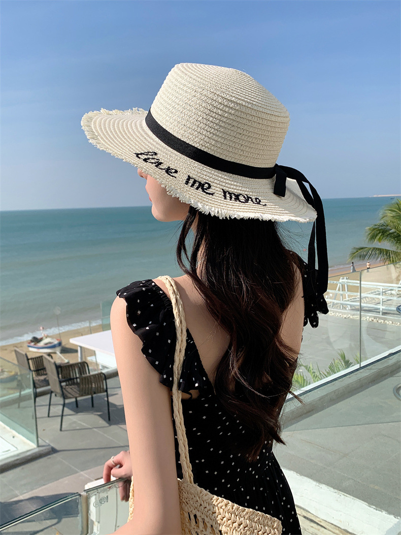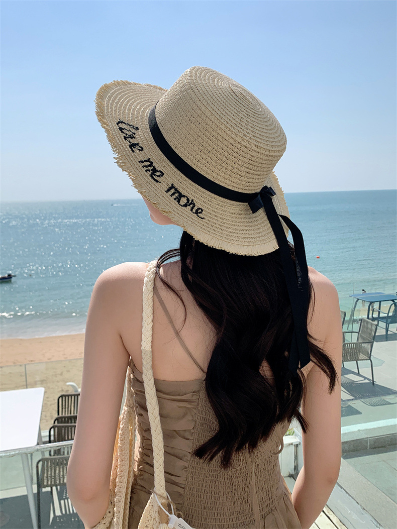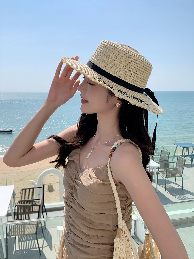 海边度假风草帽女夏季大帽檐防晒帽气质百搭沙滩太阳帽飘带遮阳帽