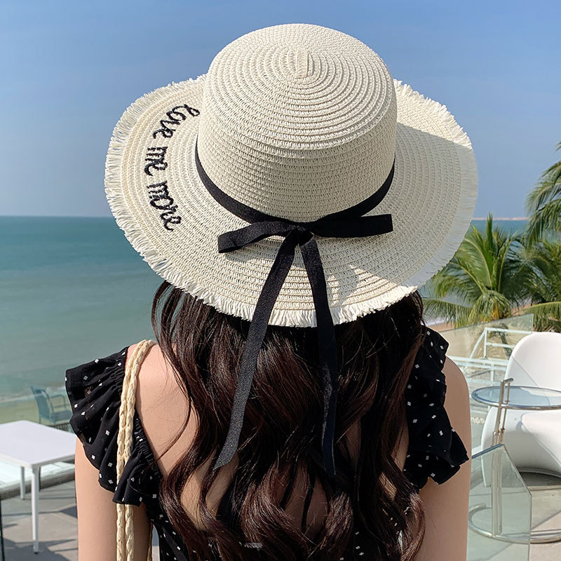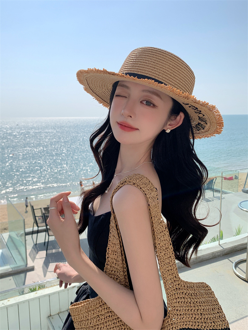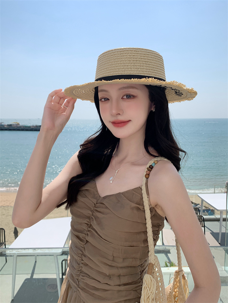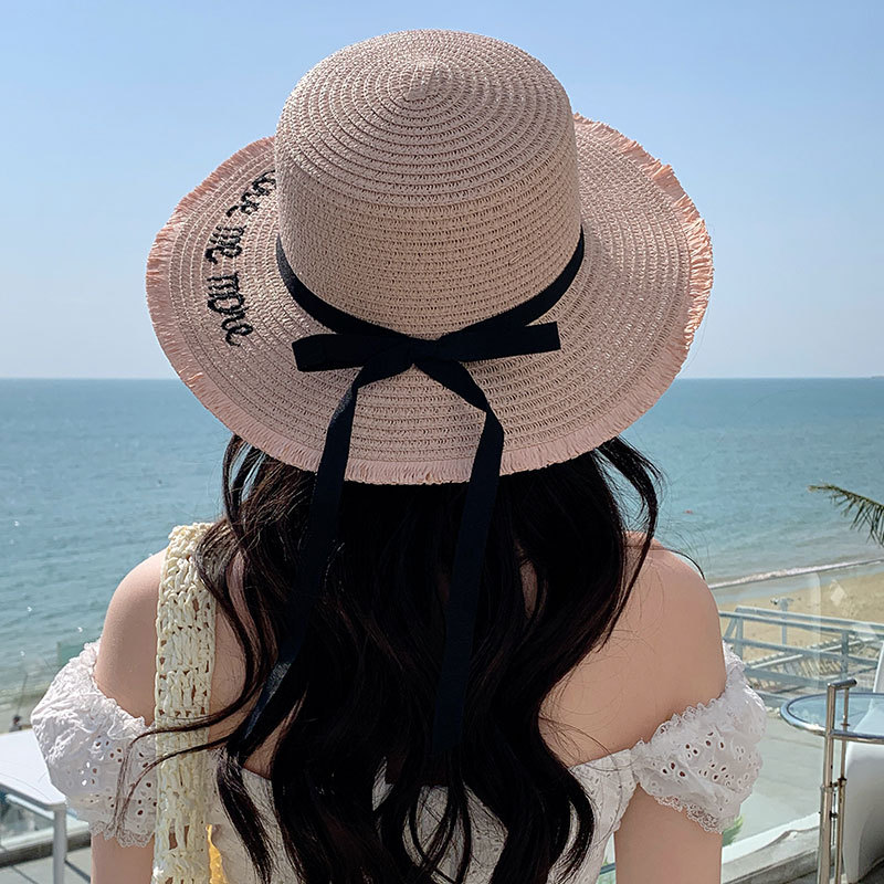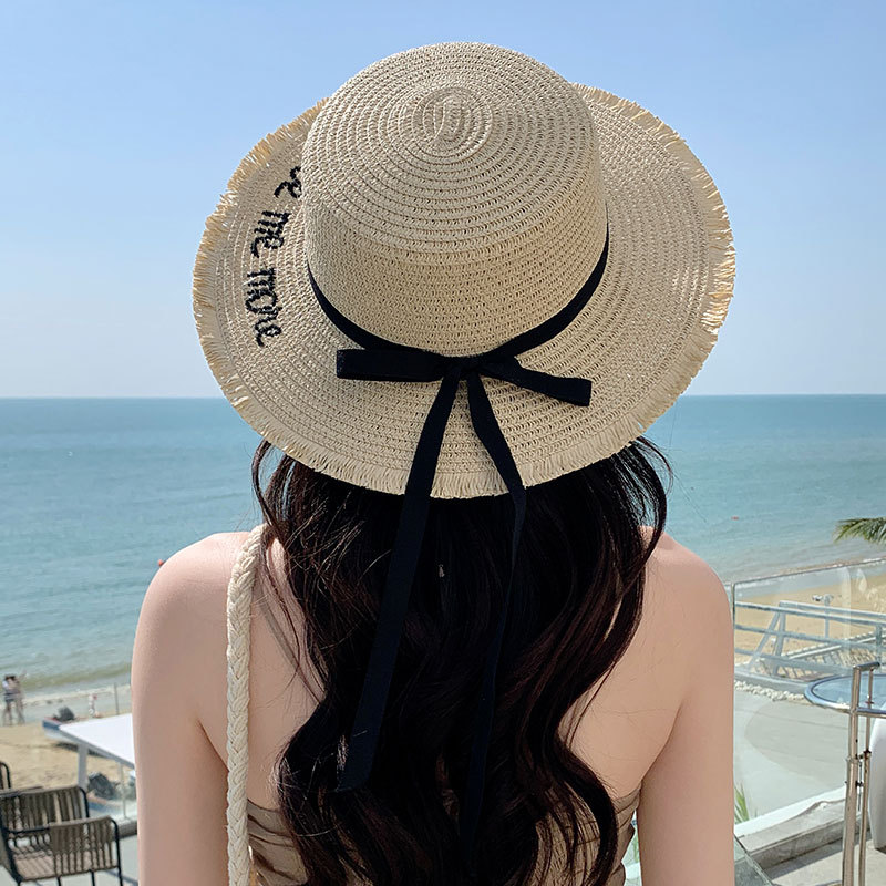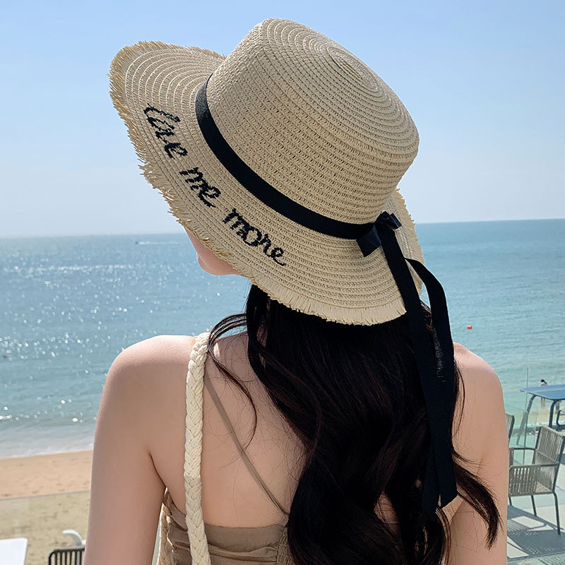 海边度假风草帽女夏季大帽檐防晒帽气质百搭沙滩太阳帽飘带遮阳帽