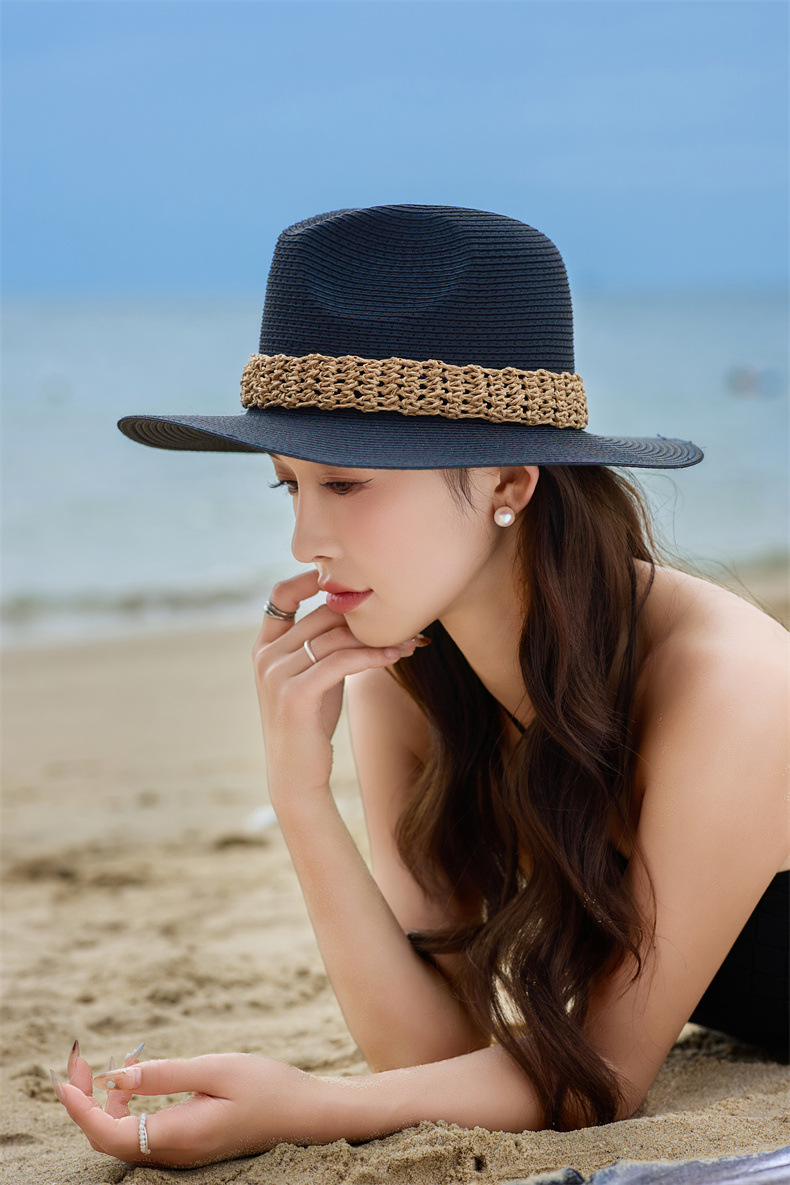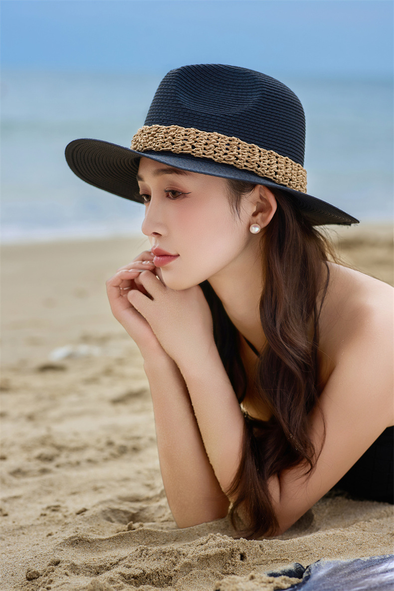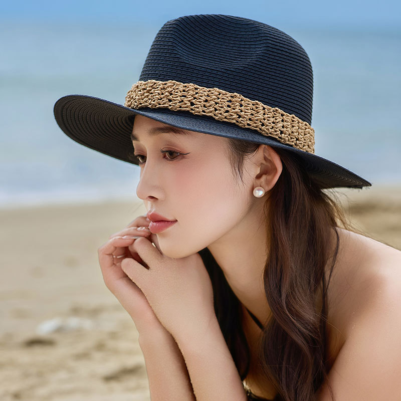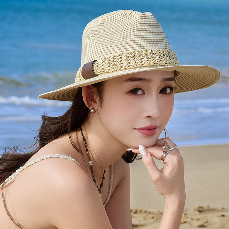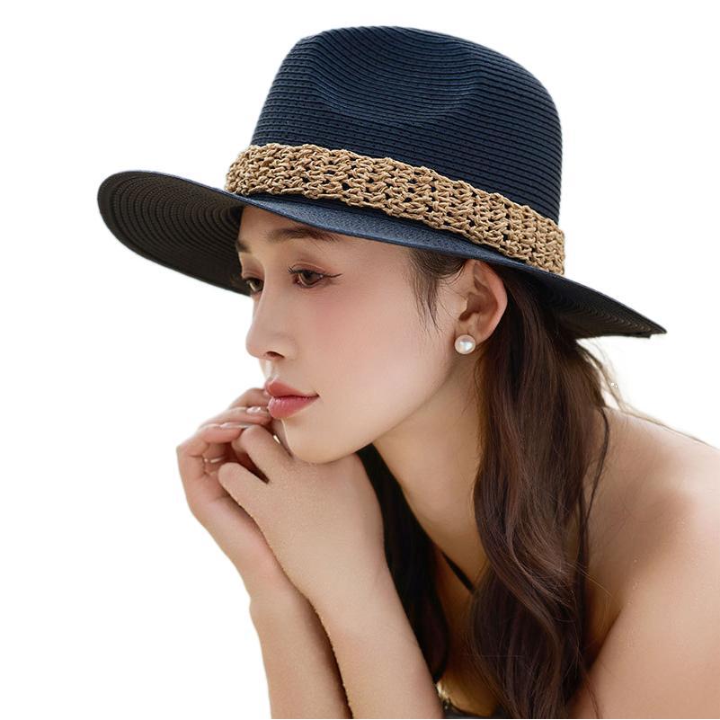 新款法式清凉草编帽子女士简约度假沙滩太阳帽夏天防晒遮阳礼帽潮