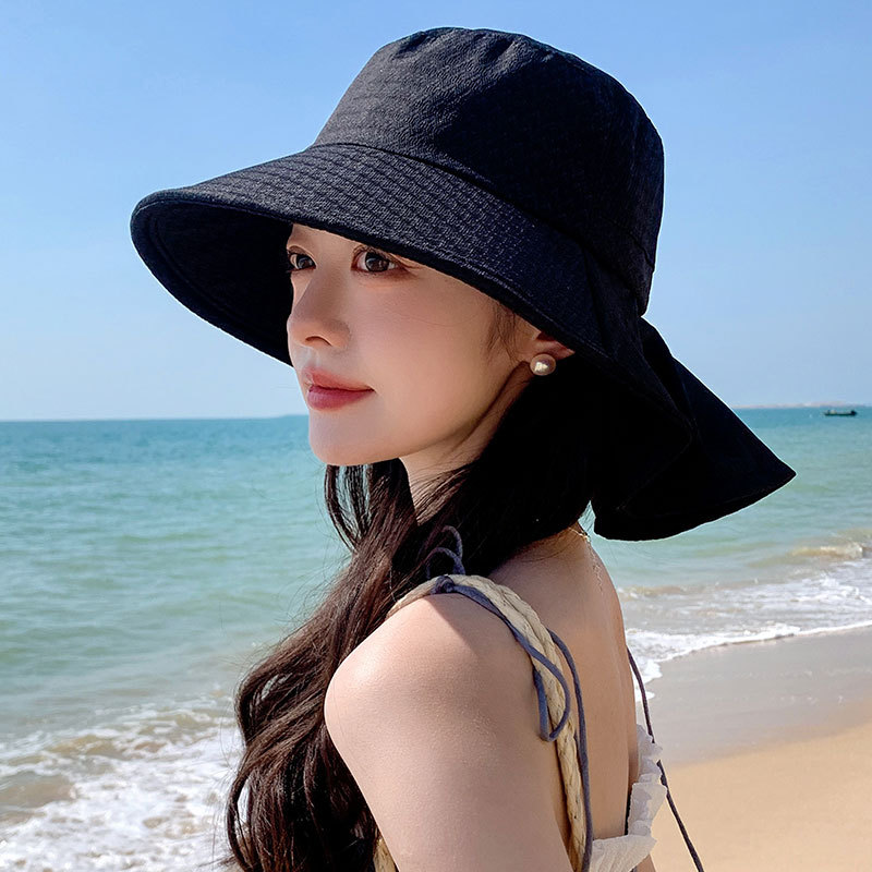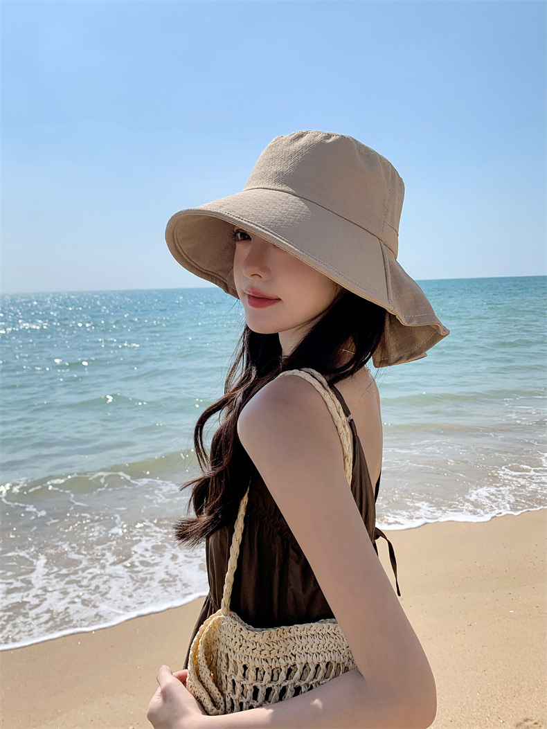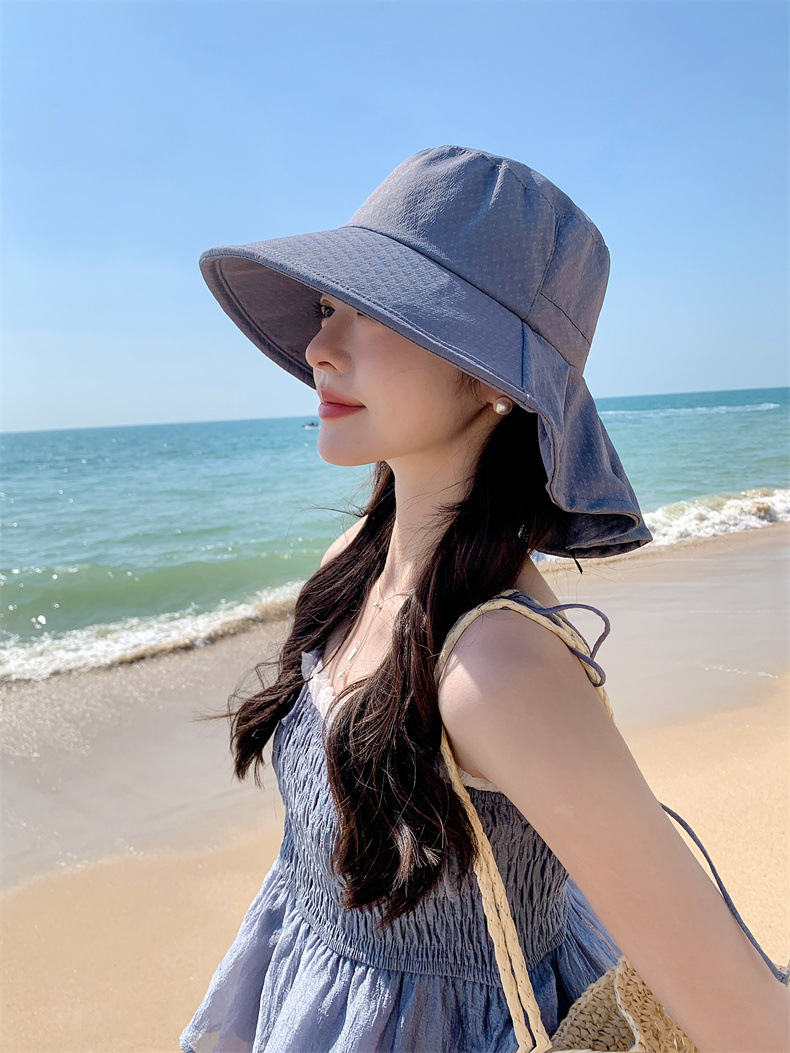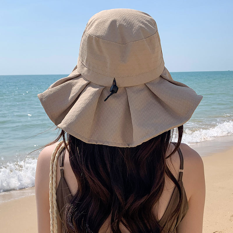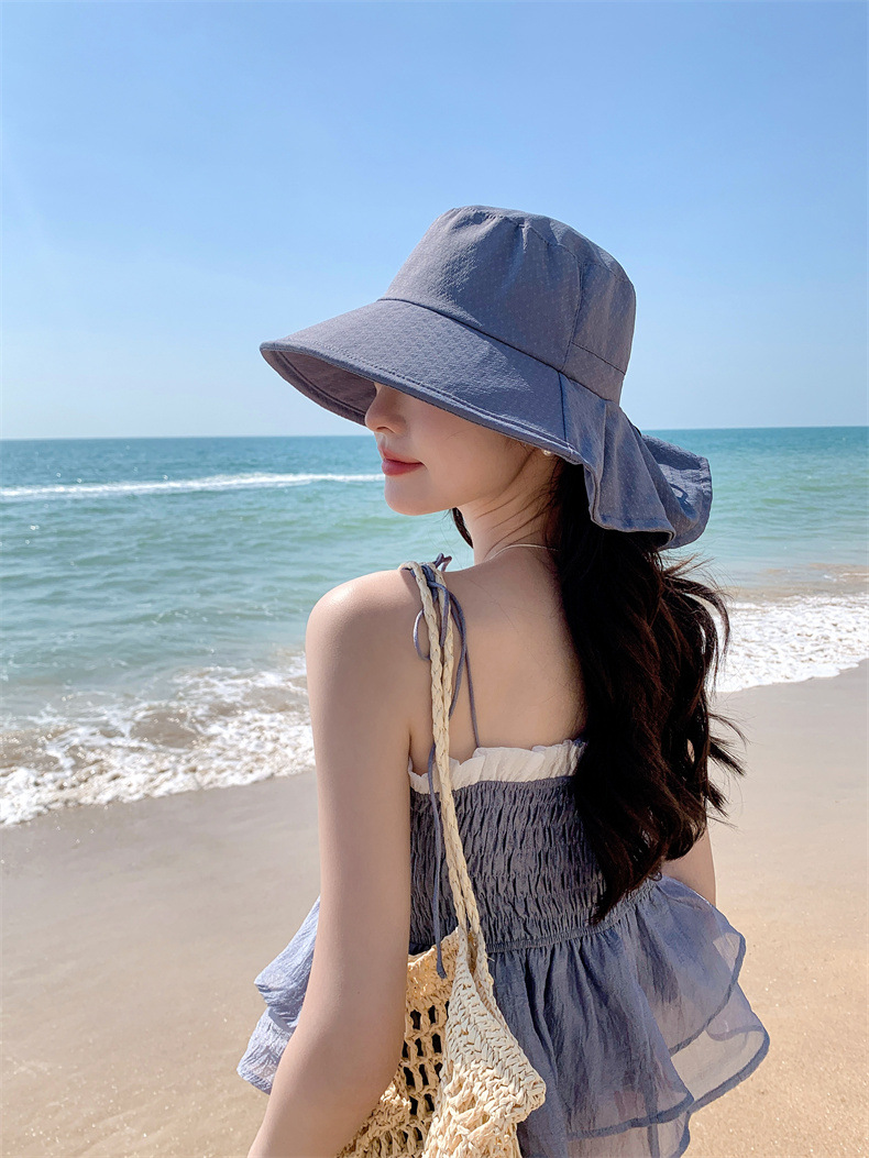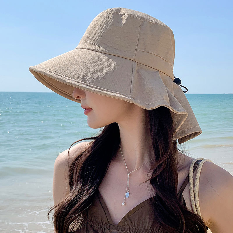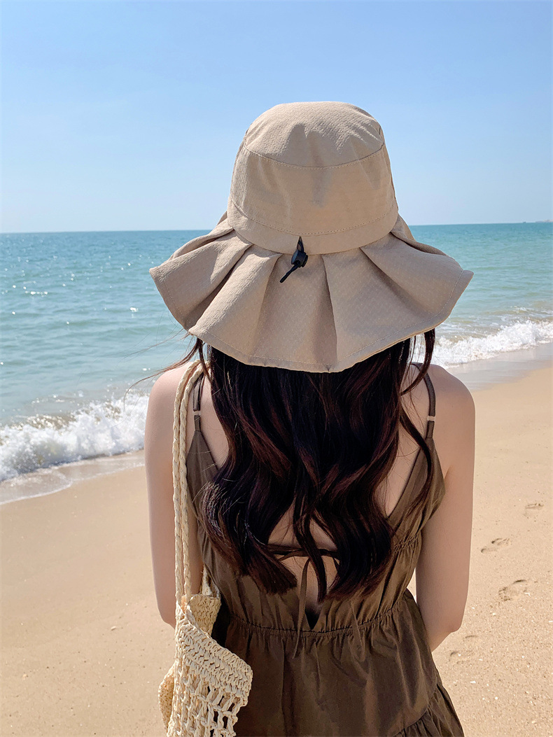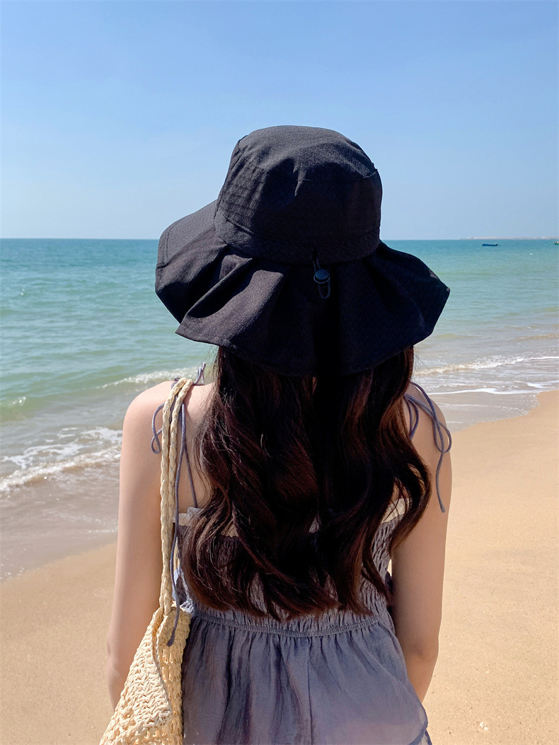 女夏款大沿披肩遮阳帽防晒太阳帽日系时尚渔夫帽户外出行防晒帽子