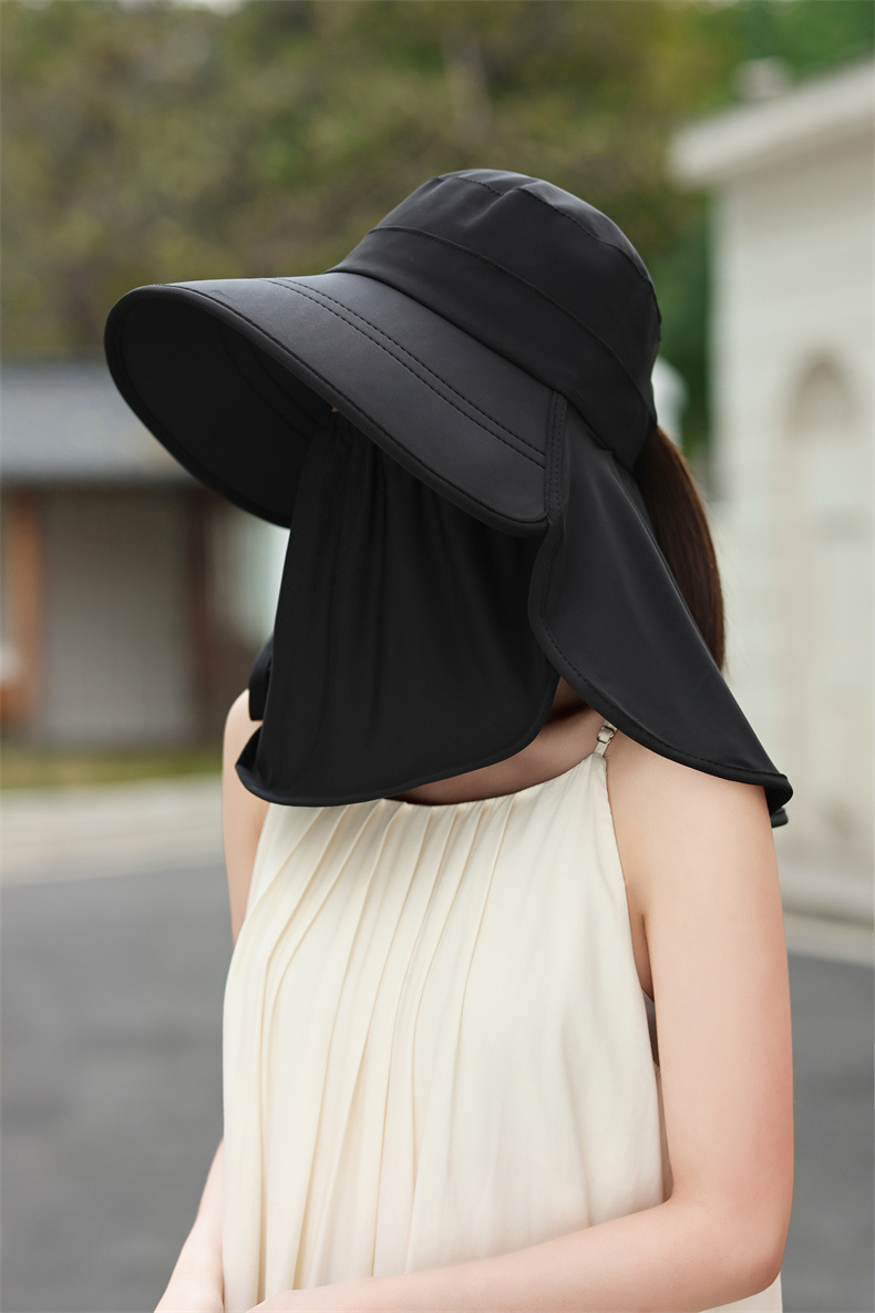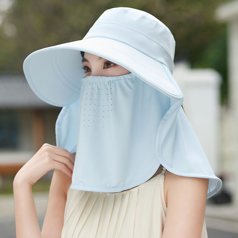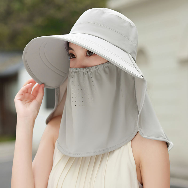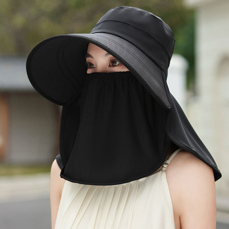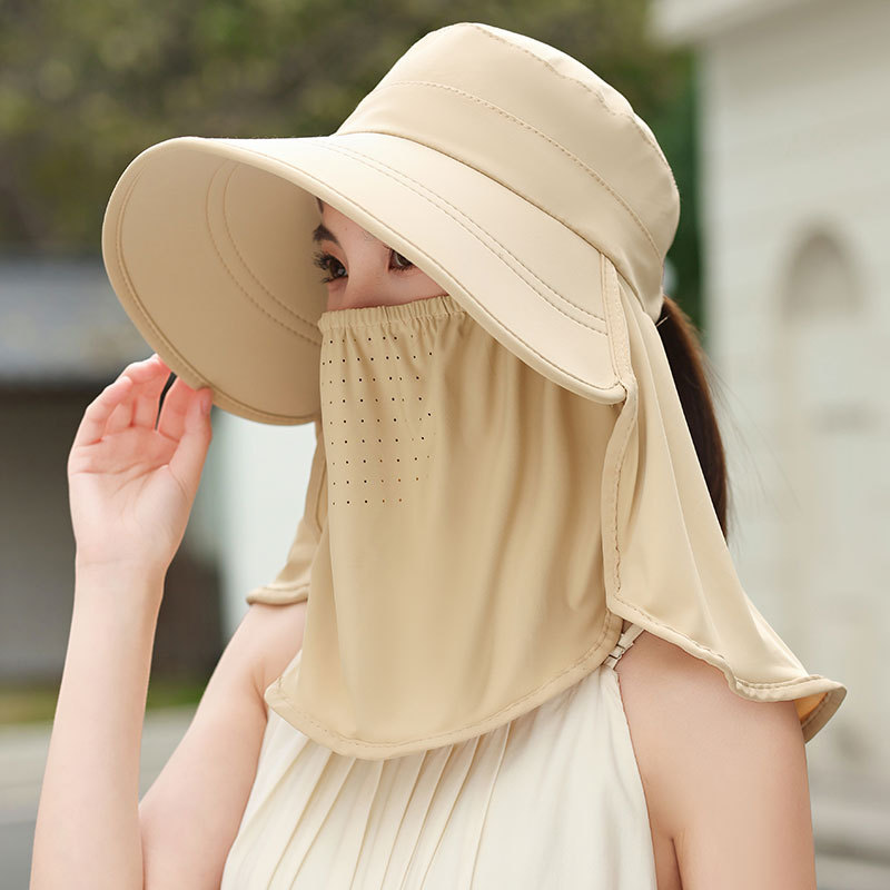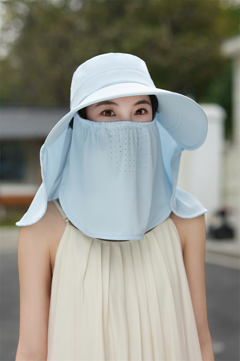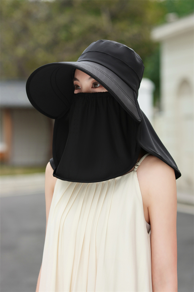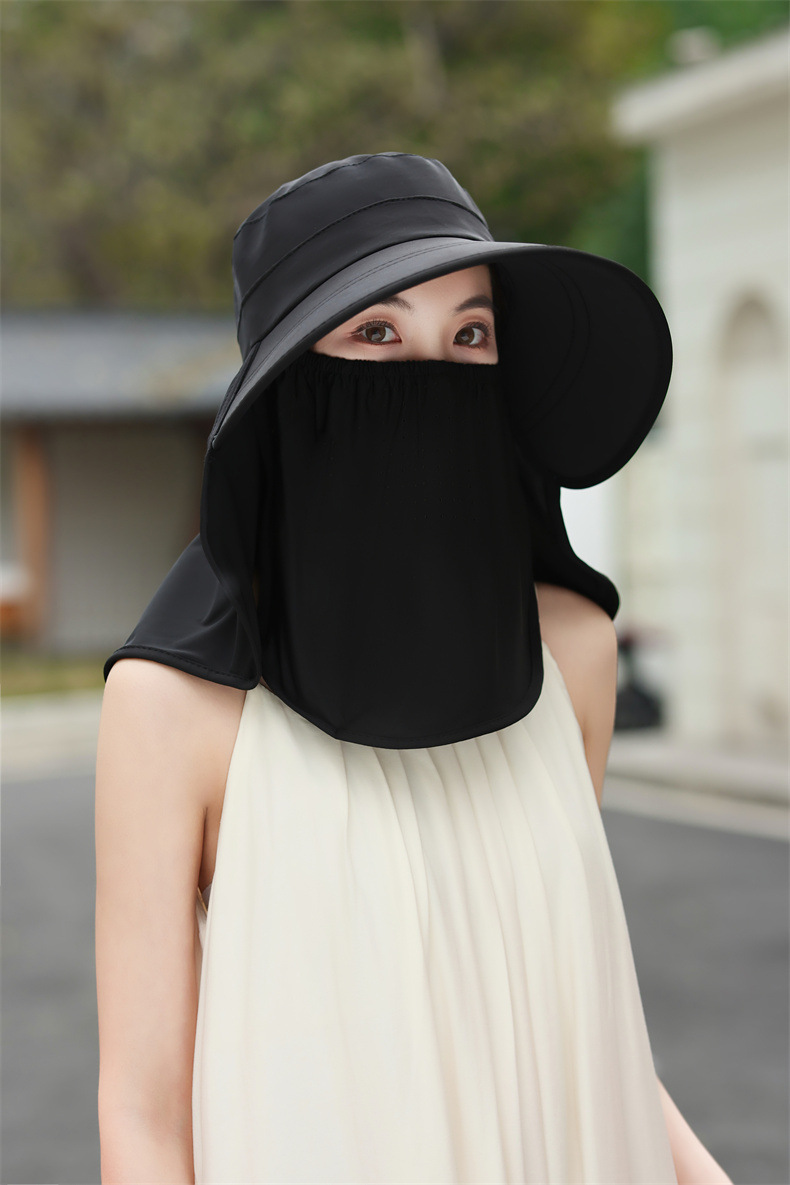 新款大檐遮阳帽子女士冰丝遮脸披肩渔夫帽户外防紫外线面纱采茶帽