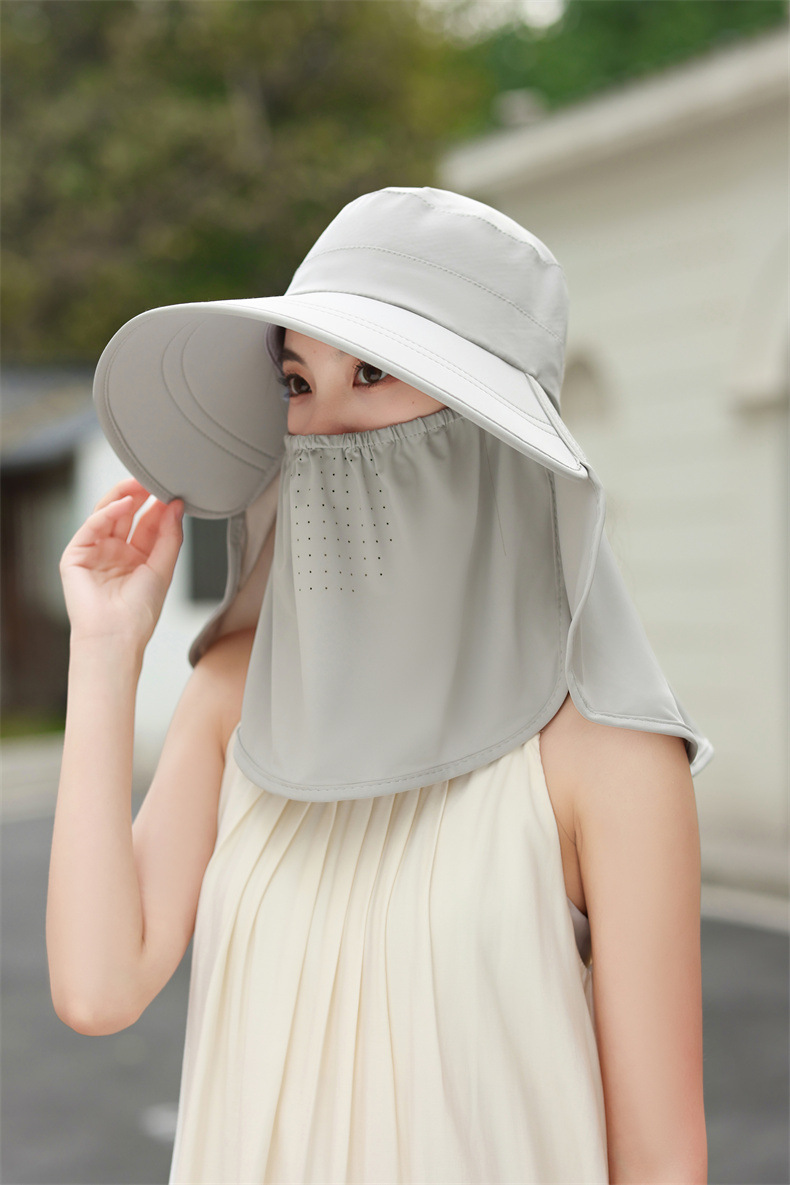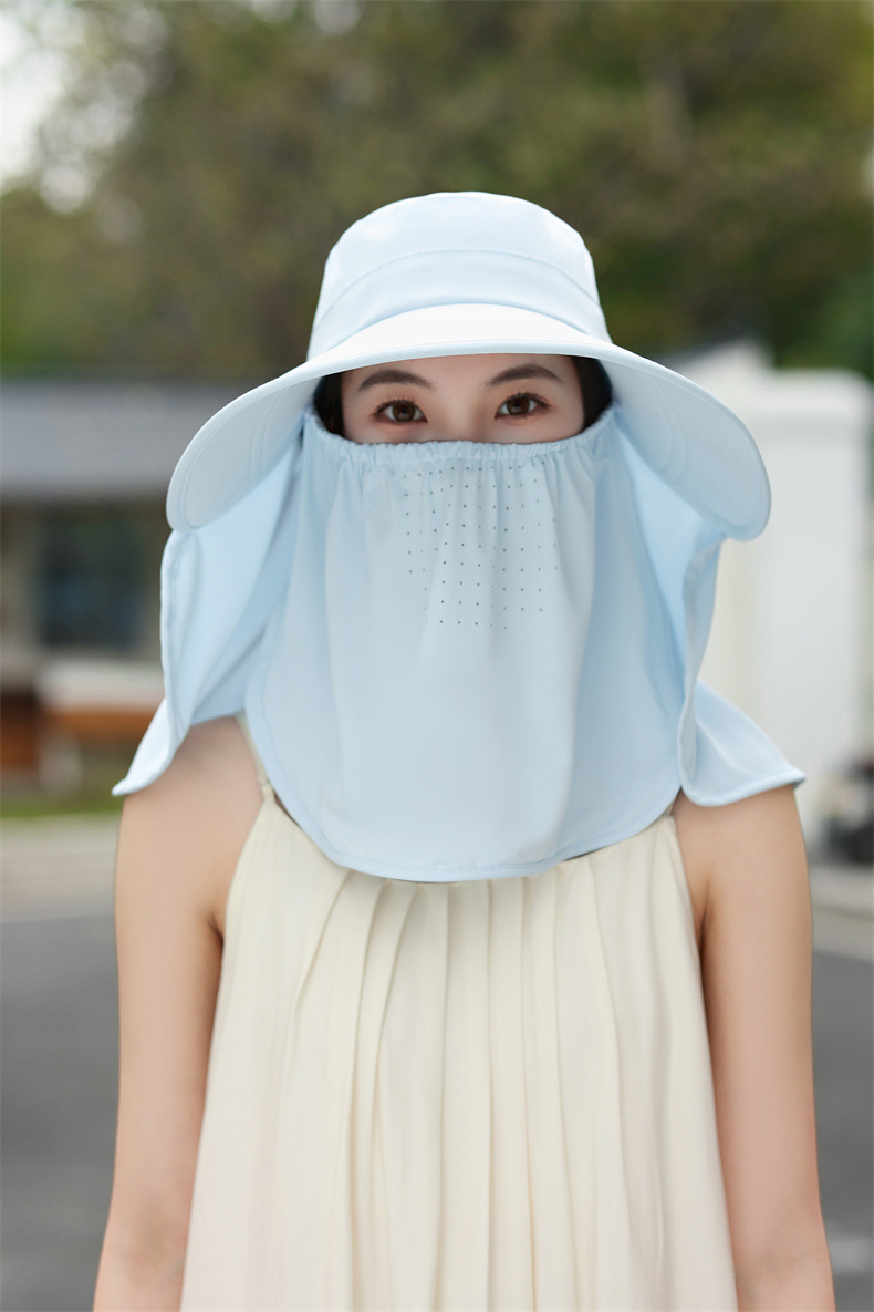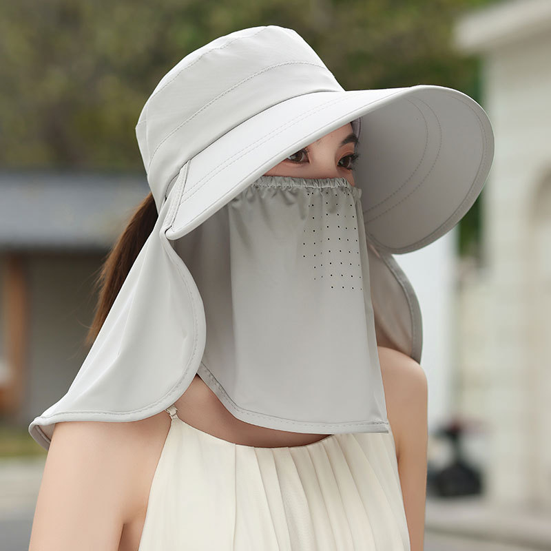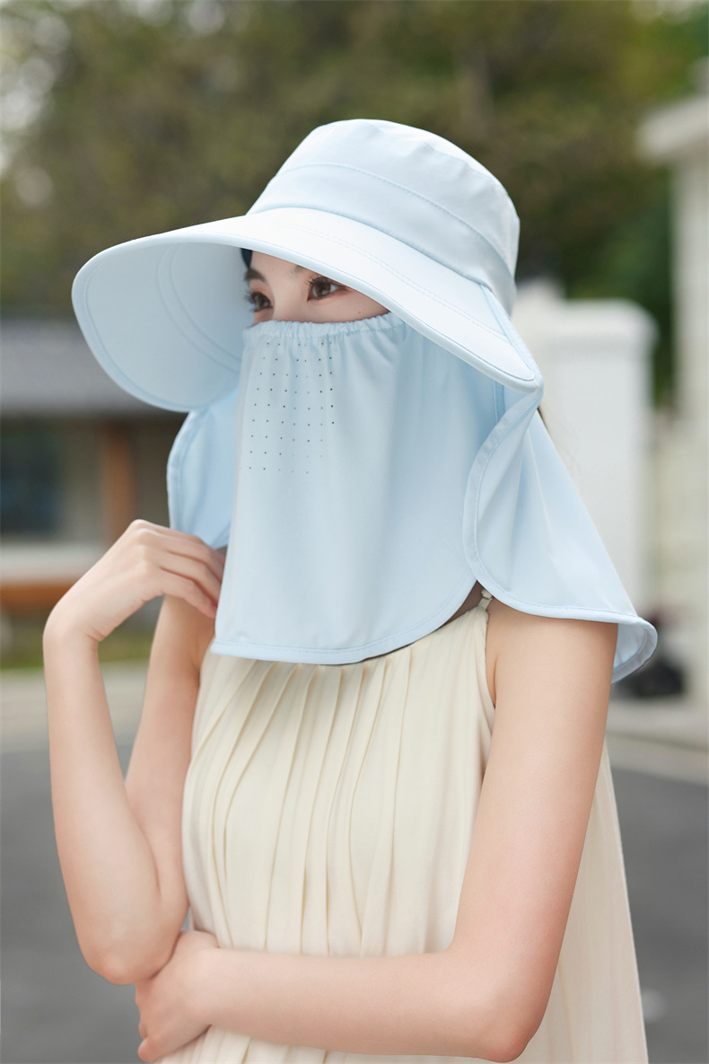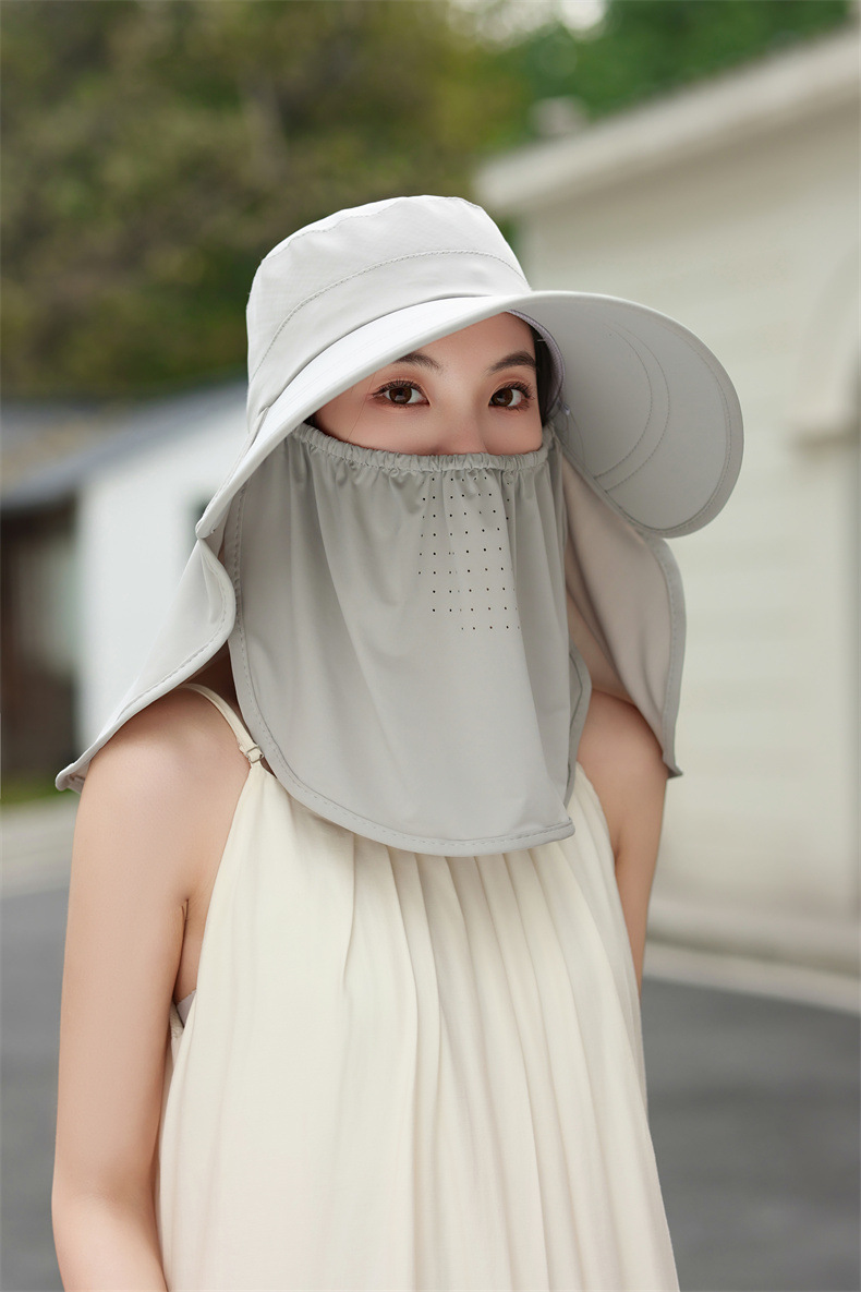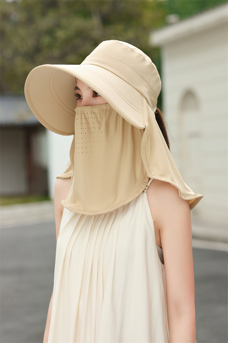 新款大檐遮阳帽子女士冰丝遮脸披肩渔夫帽户外防紫外线面纱采茶帽