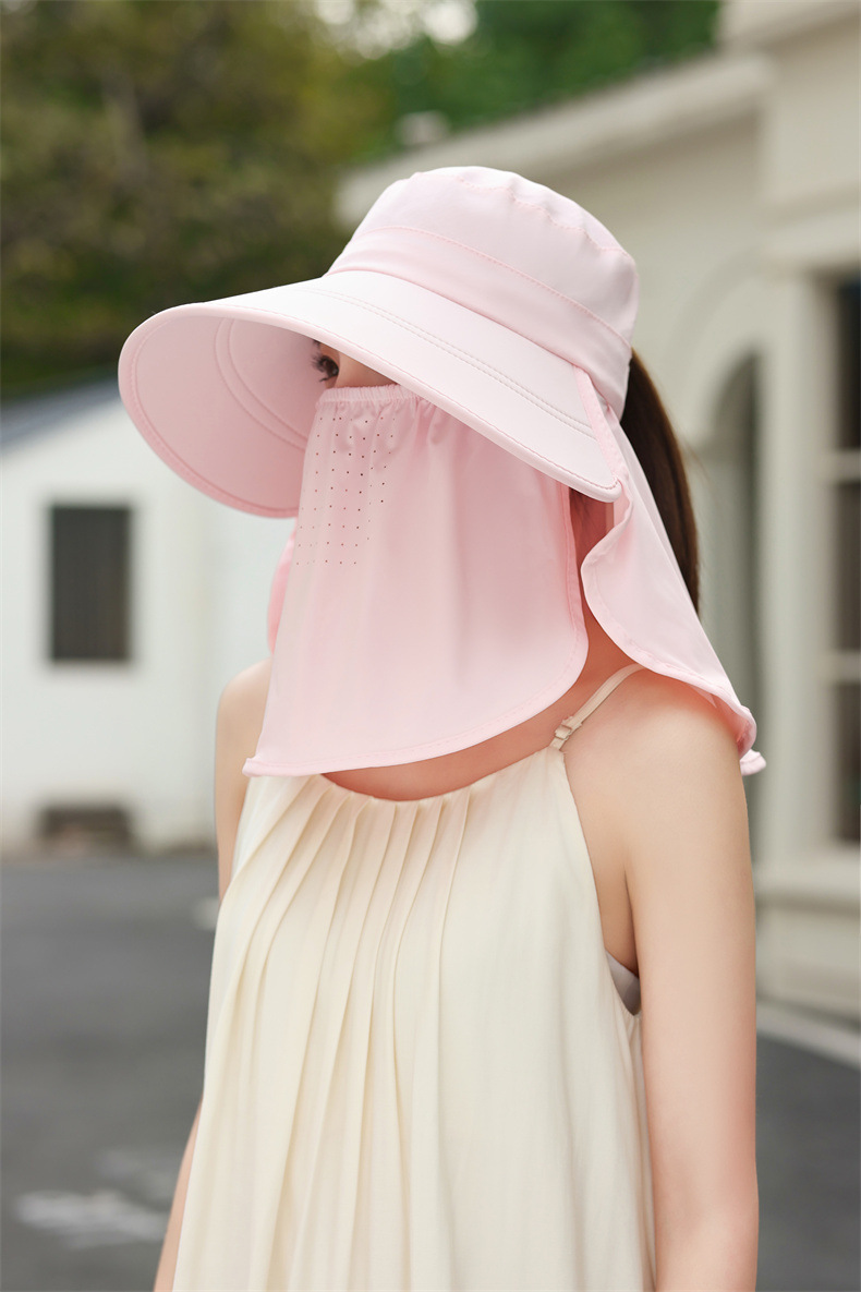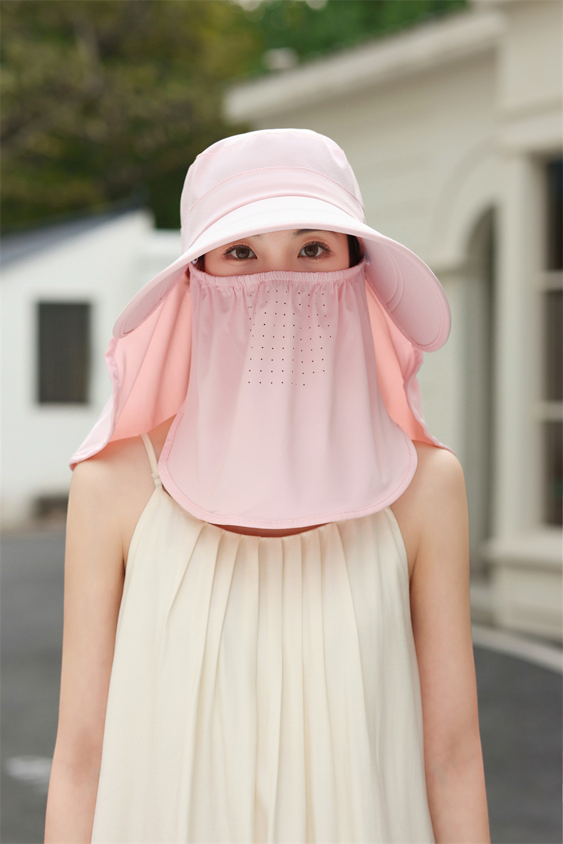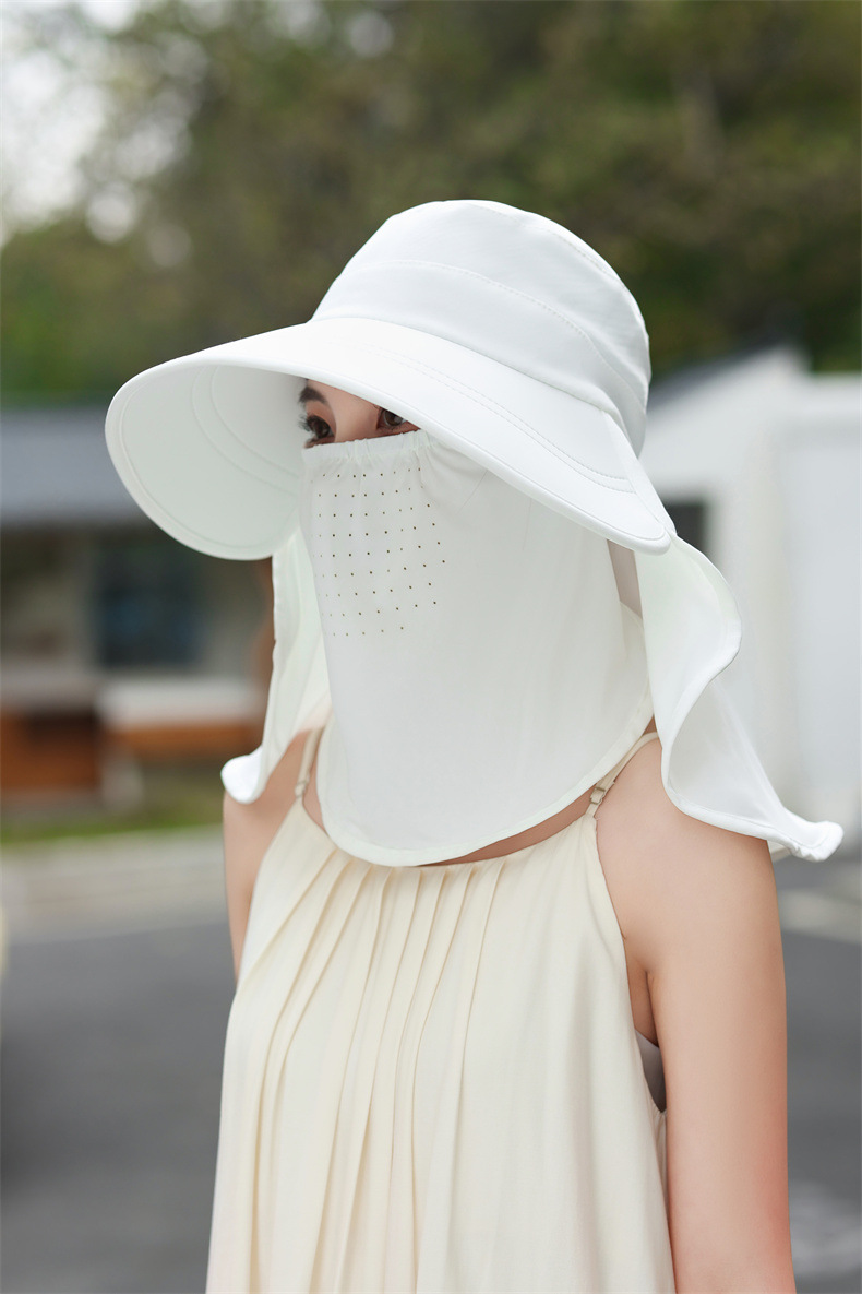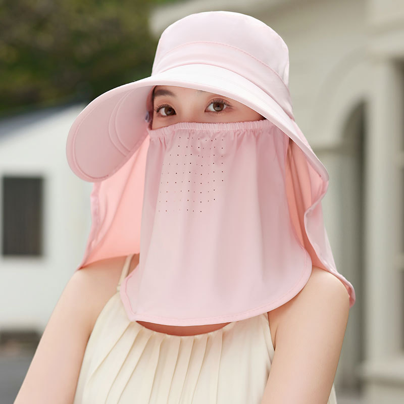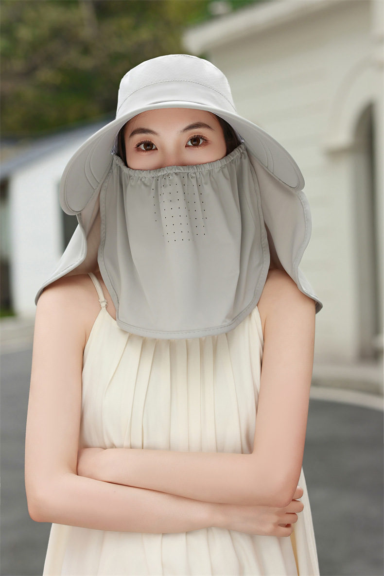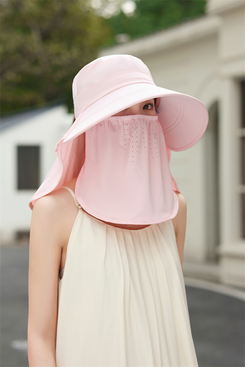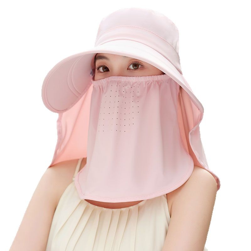 新款大檐遮阳帽子女士冰丝遮脸披肩渔夫帽户外防紫外线面纱采茶帽