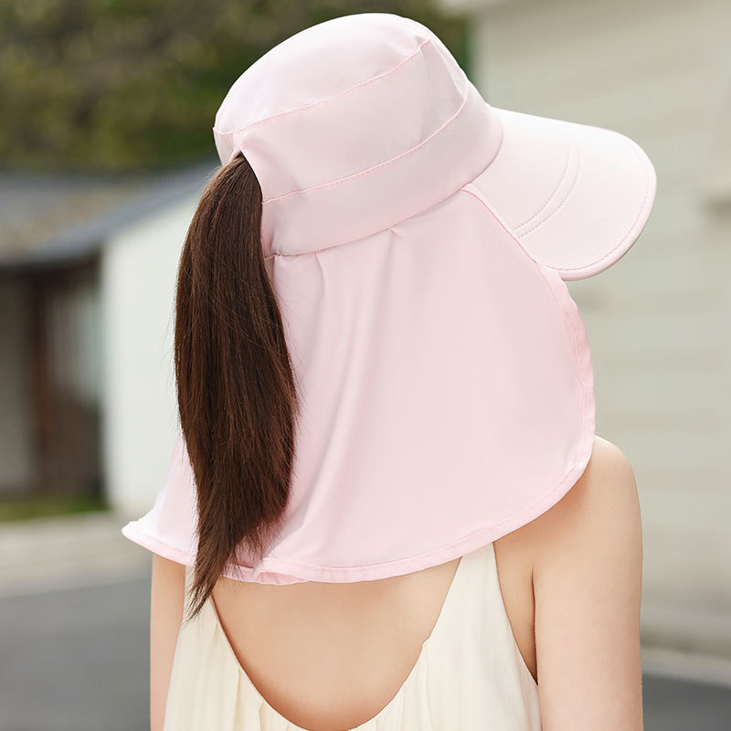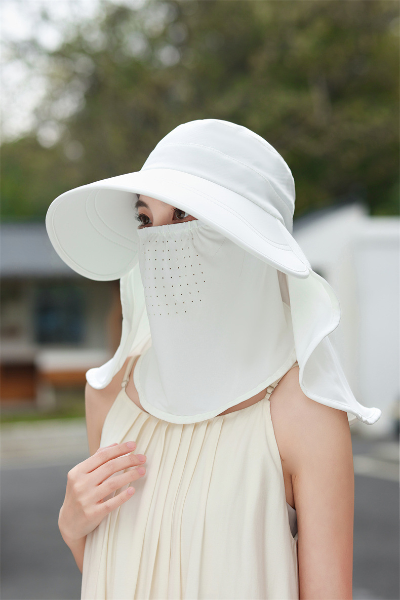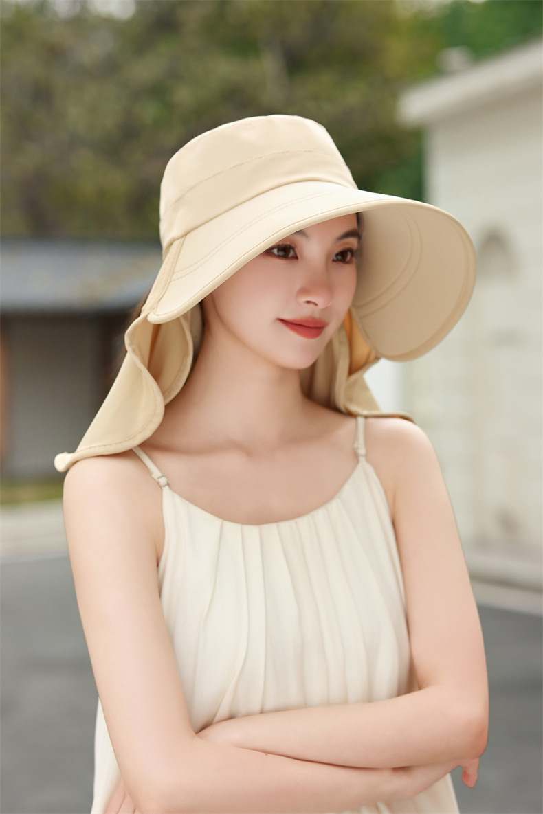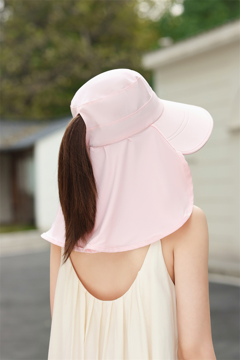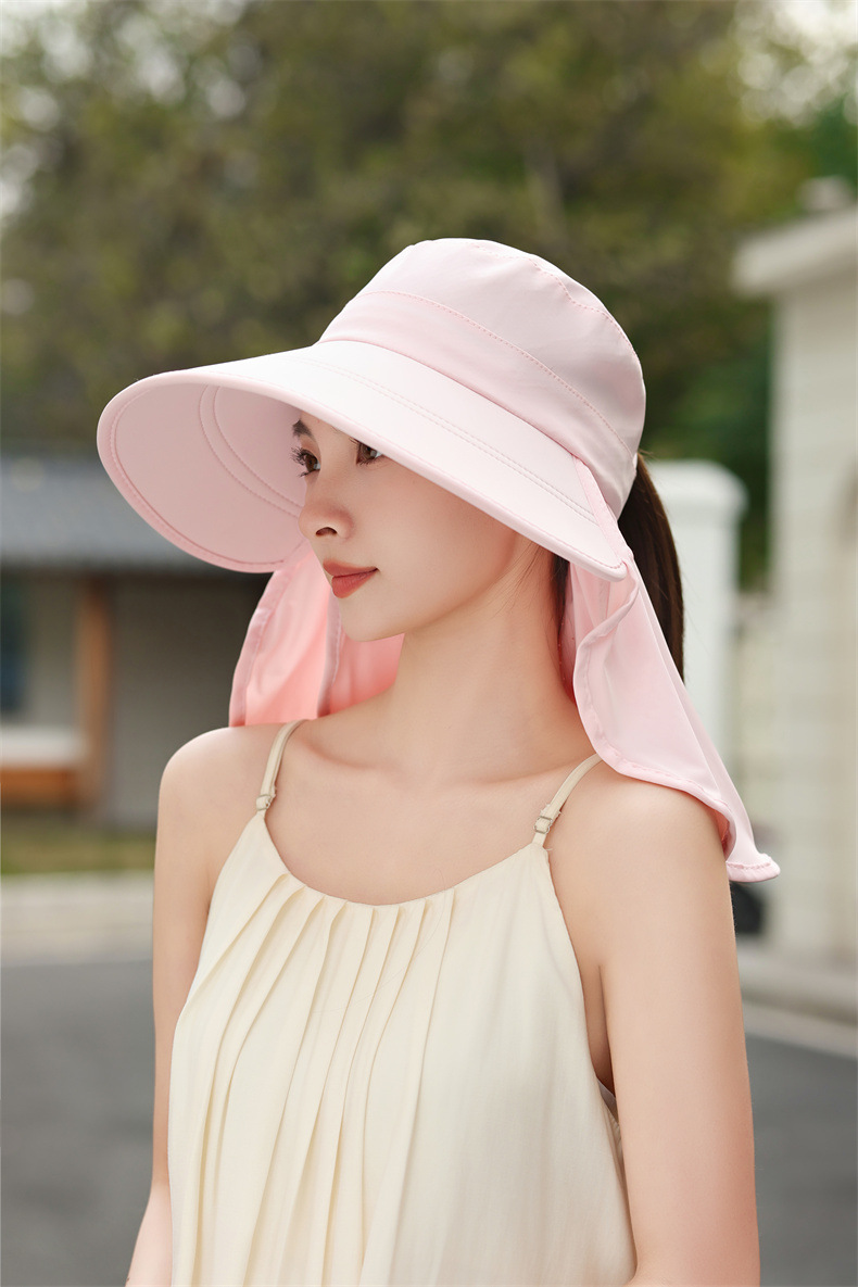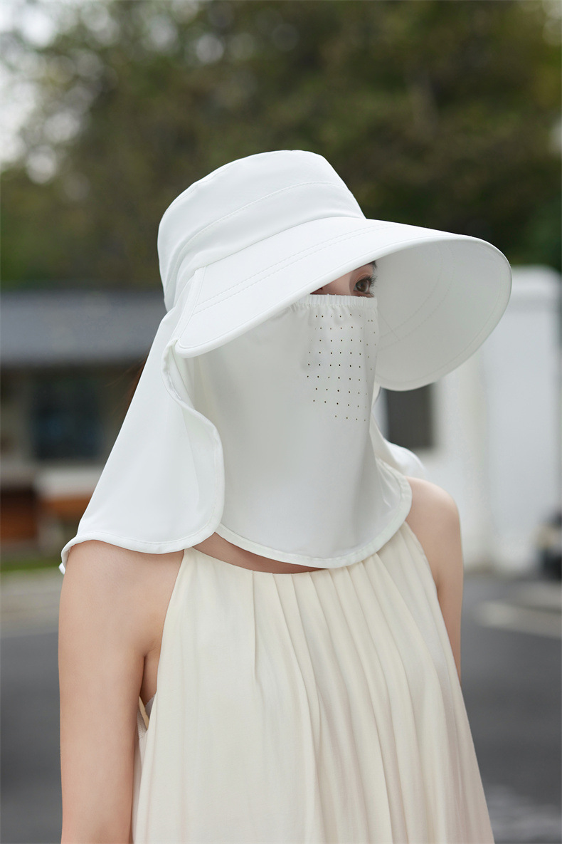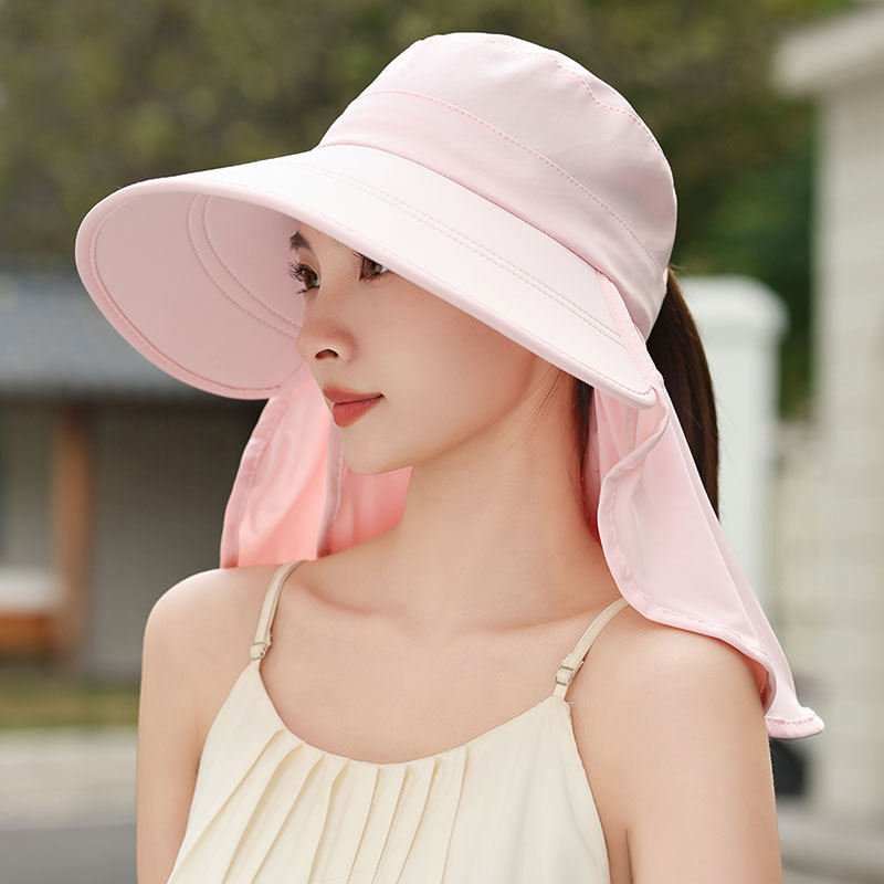 新款大檐遮阳帽子女士冰丝遮脸披肩渔夫帽户外防紫外线面纱采茶帽