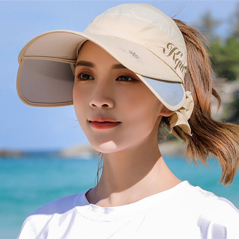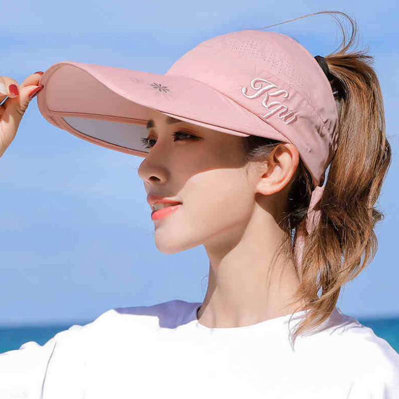 帽子女夏季防晒遮阳帽韩版防紫外线百搭拉板遮脸空顶可伸缩太阳帽
