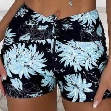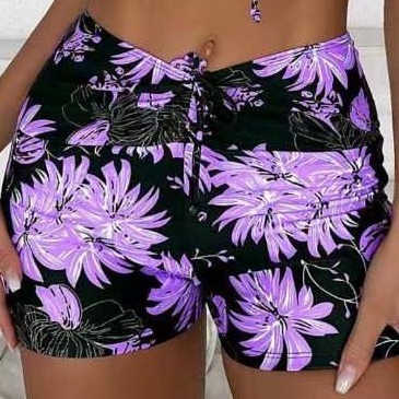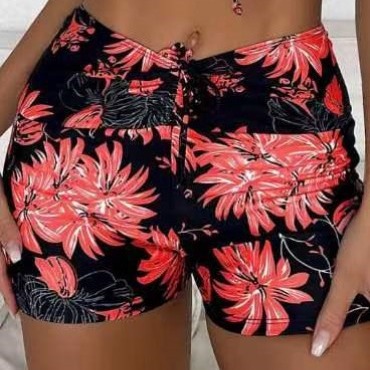 跨境泳裤印花女平角保守高腰抽绳沙滩裤欧美外贸亚马逊批发单裤