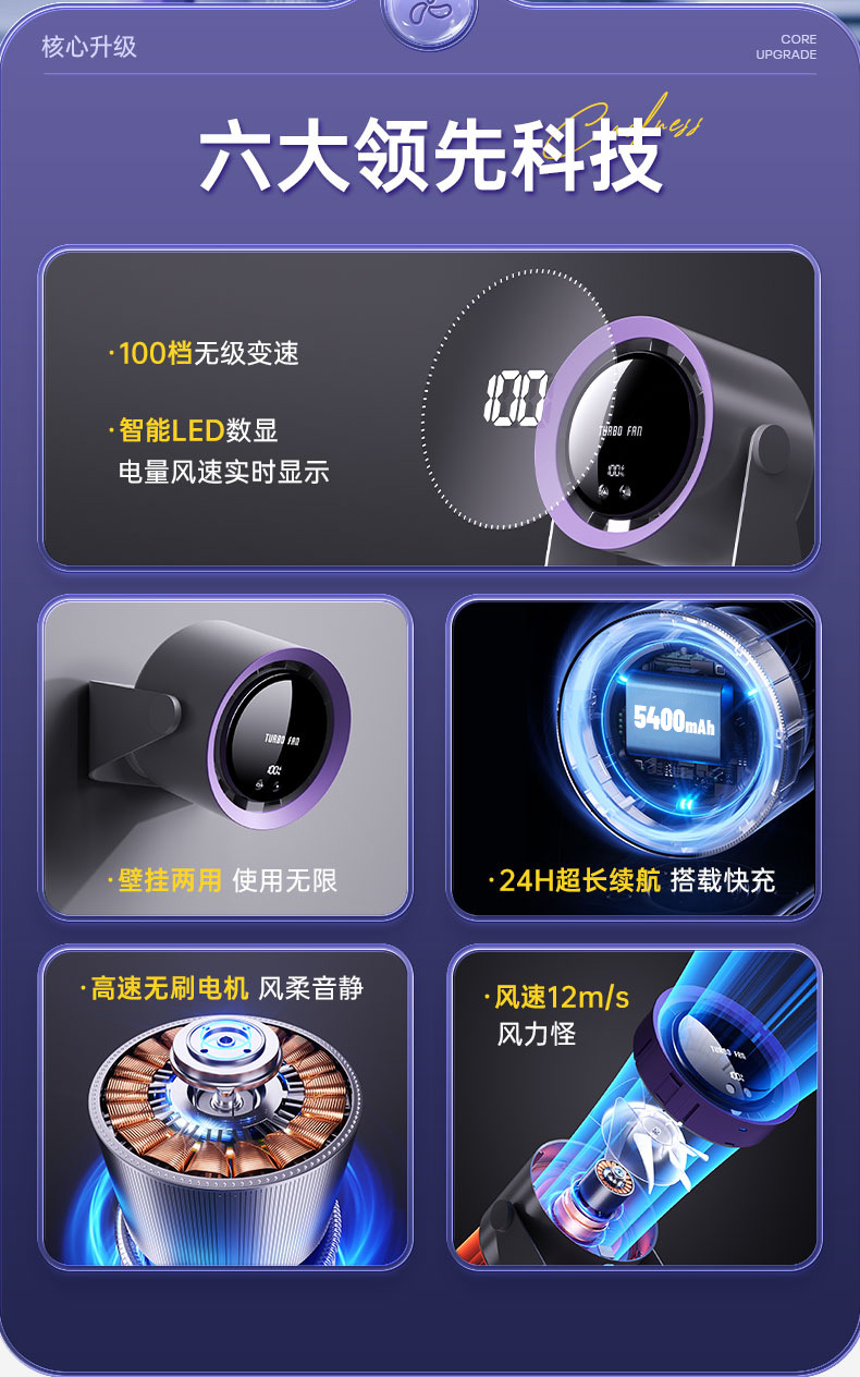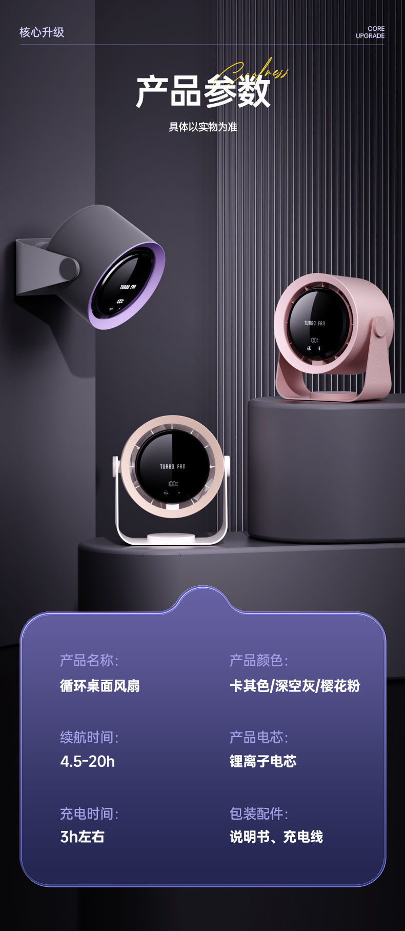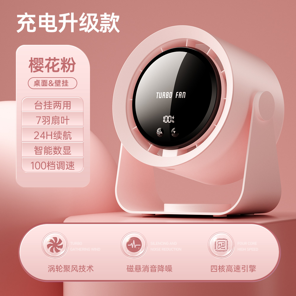 跨境新款循环扇家用usb充电数显桌面涡轮小风扇壁挂台式小电风扇