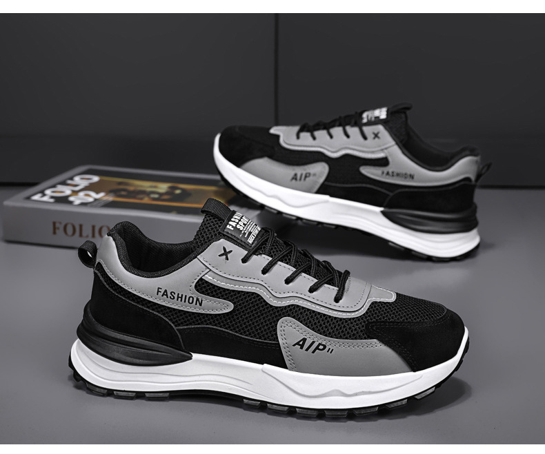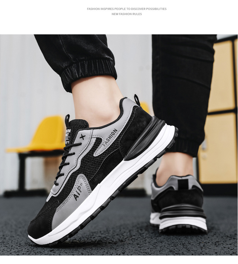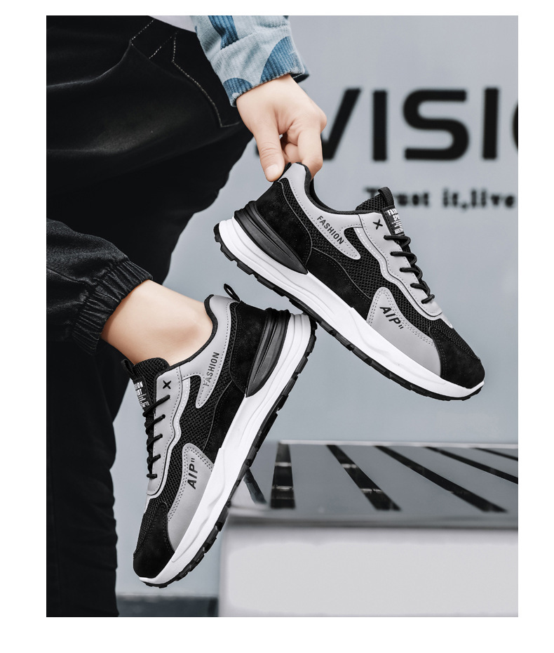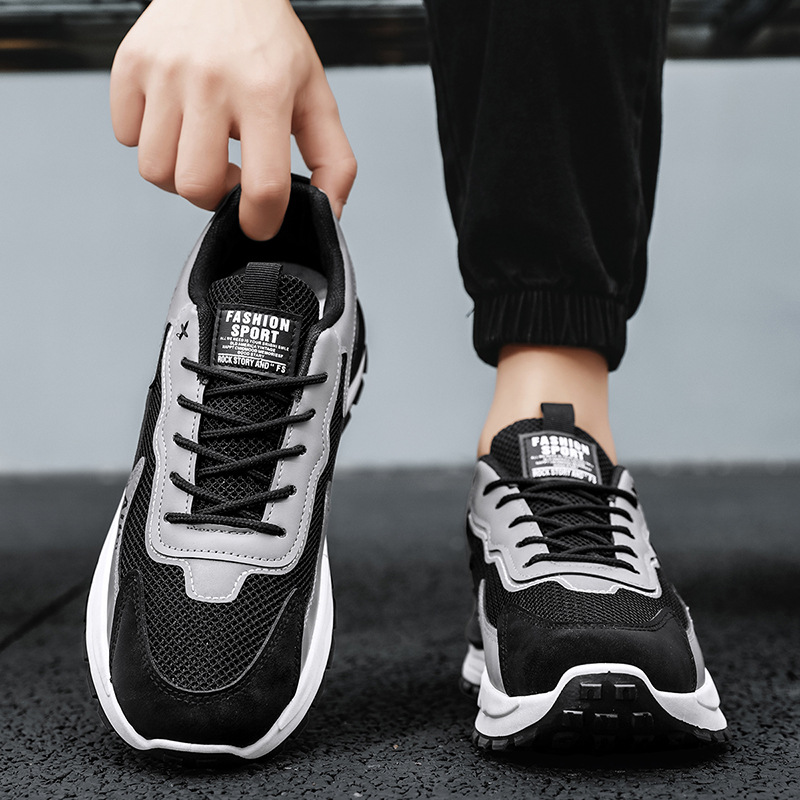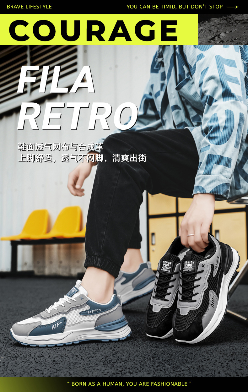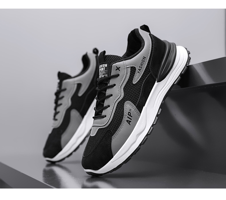 网红爆款男鞋春秋2025新款百搭运动休闲跑步青少年网面老爹鞋