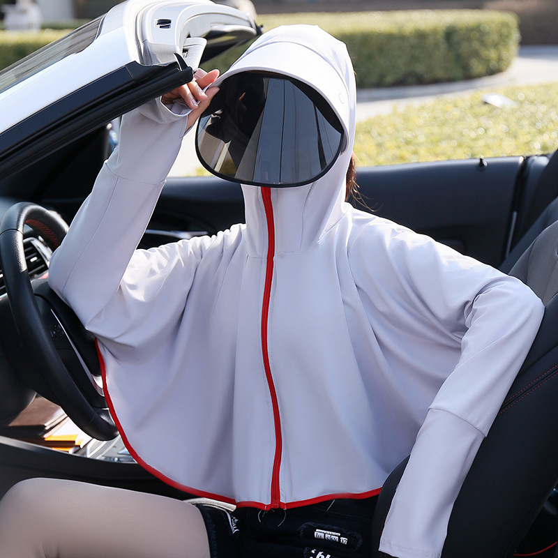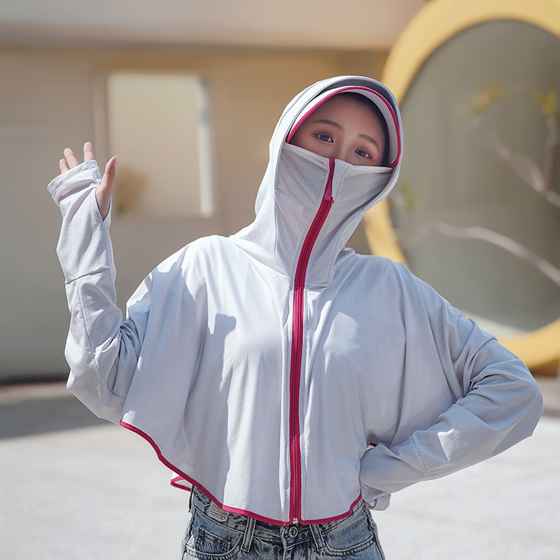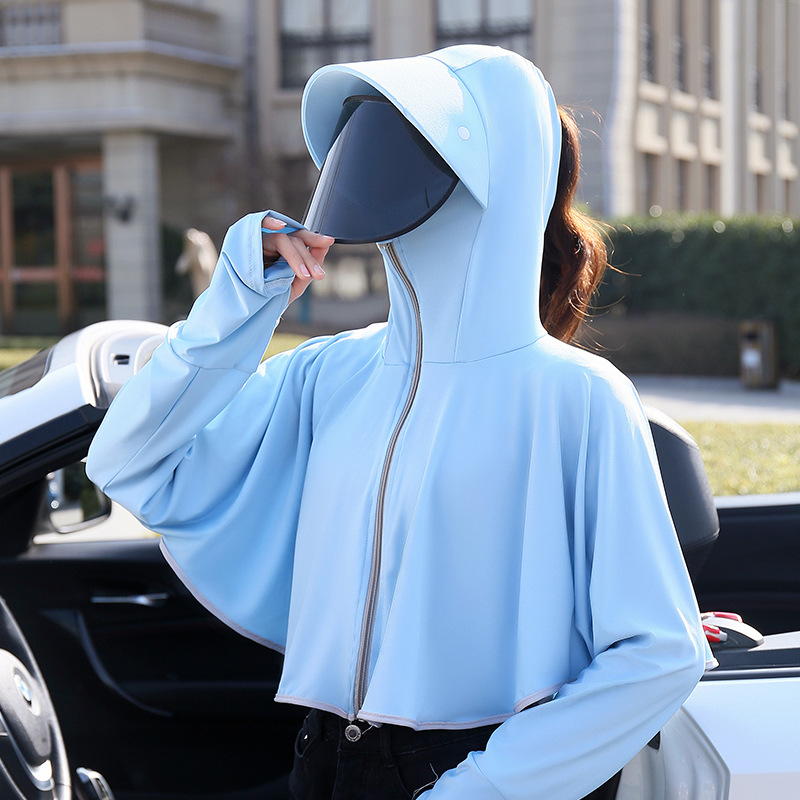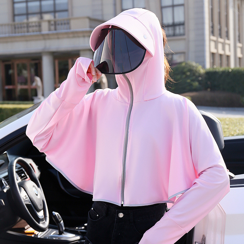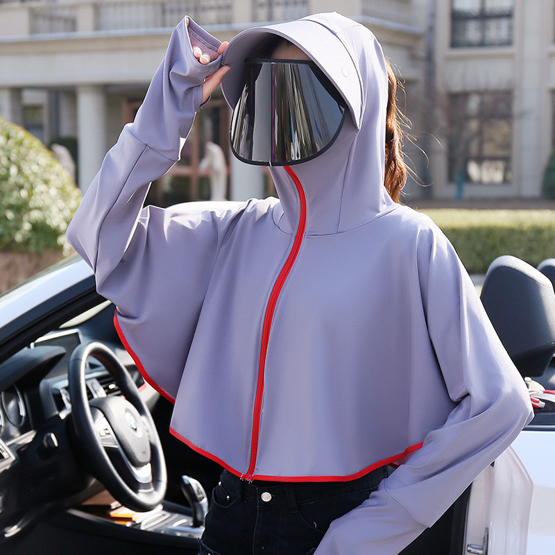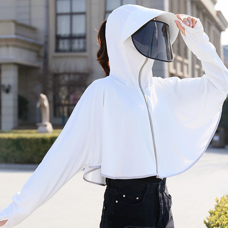 斗篷短款防晒衣女夏季透气防紫外线黑胶帽檐冰丝连帽防晒服薄批发