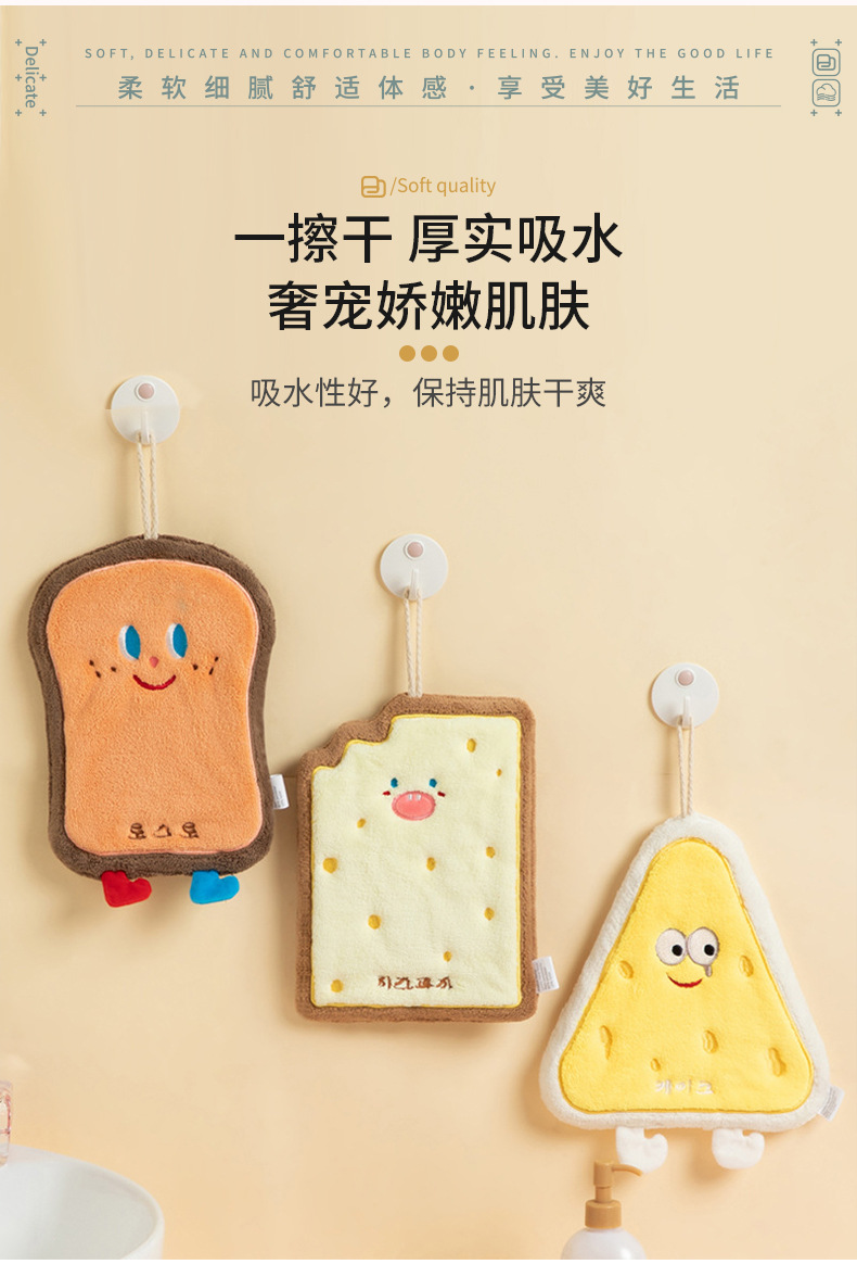 超可爱挂式双层吸水手巾加厚速干卫生间厨房毛巾面巾手帕卡通儿童