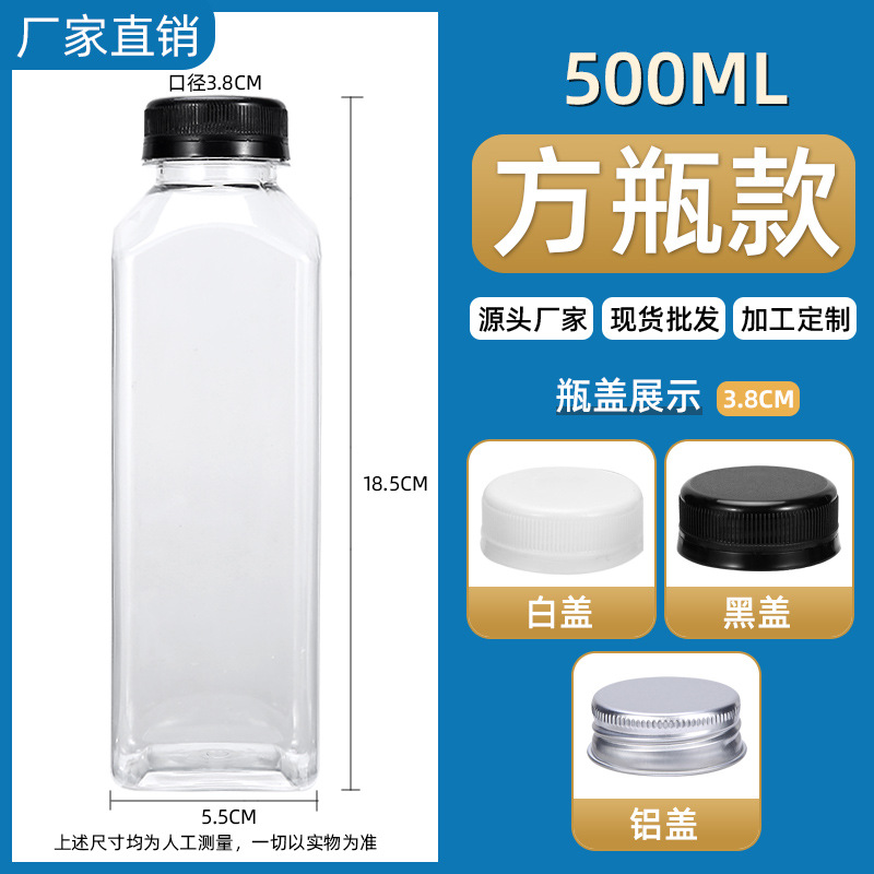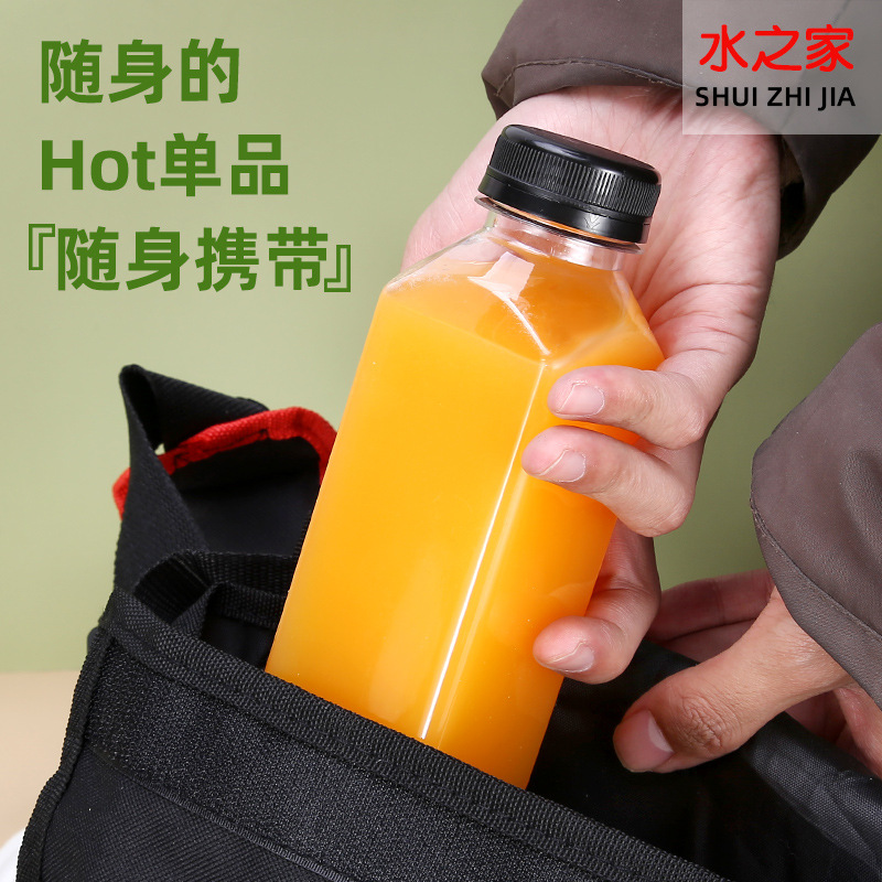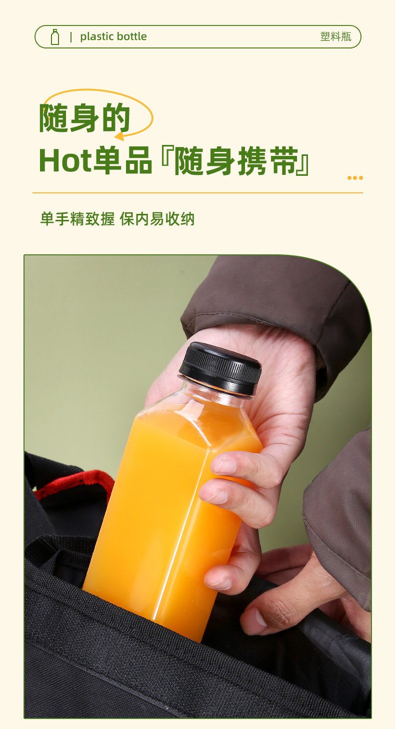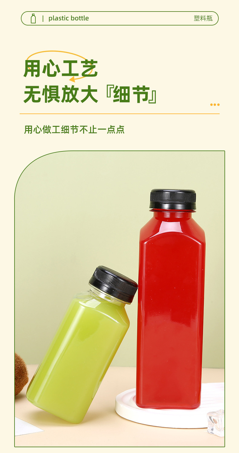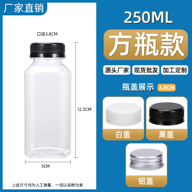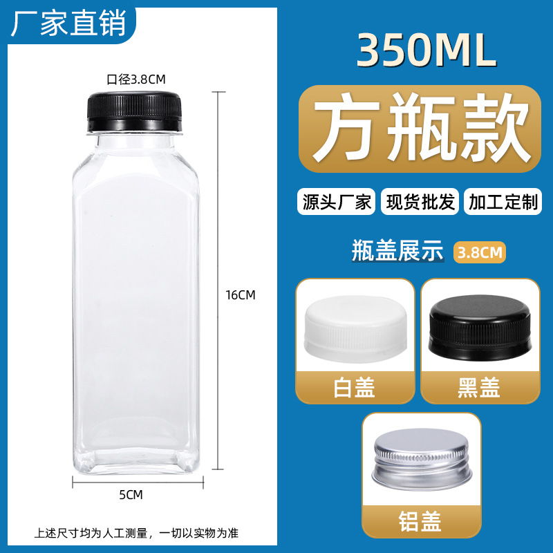一次性38口方形奶茶瓶pet塑料透明饮料瓶带盖果汁瓶子250ml350ml
