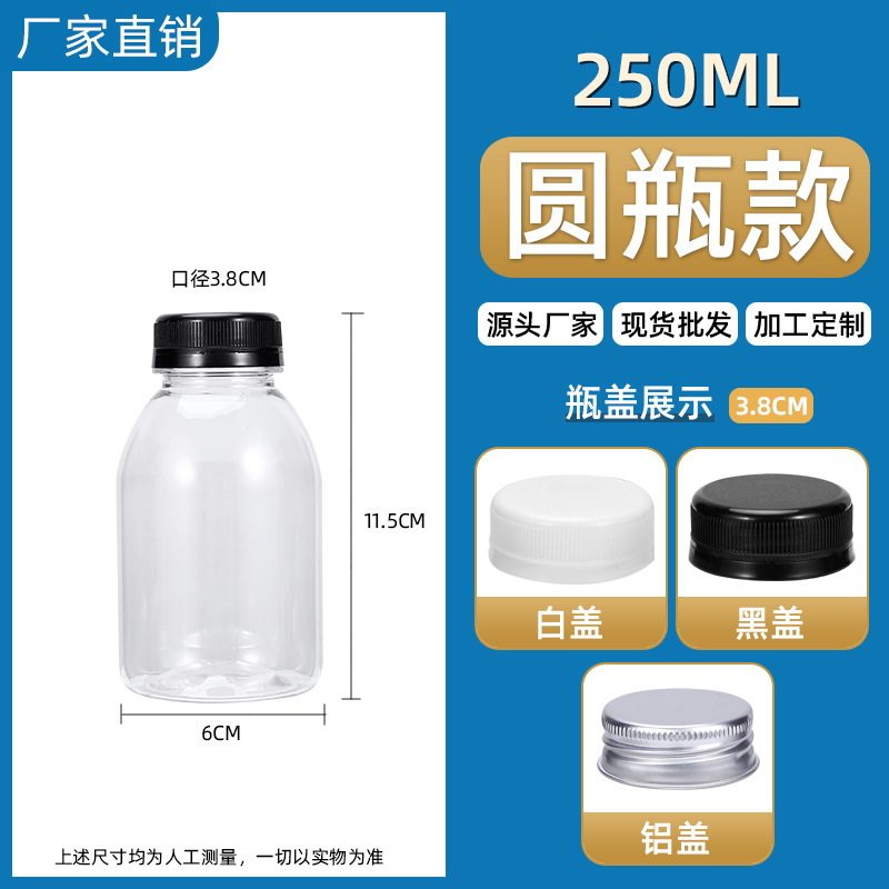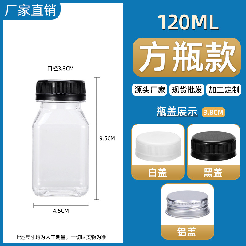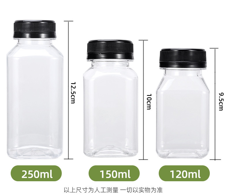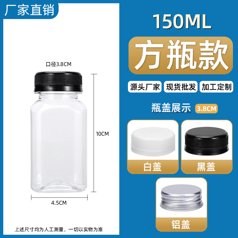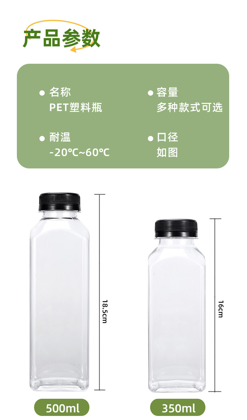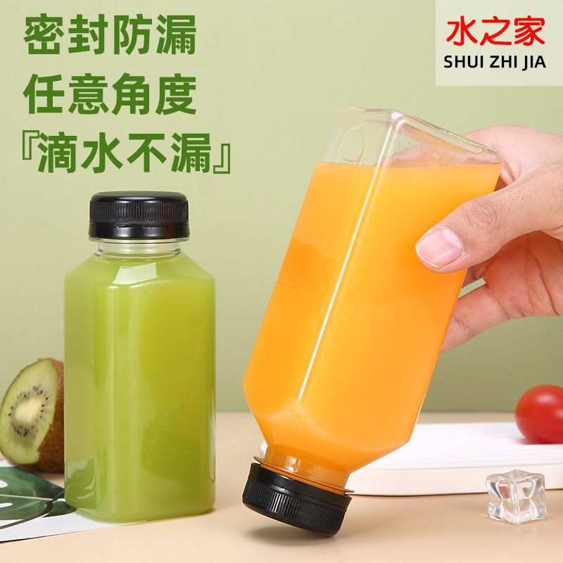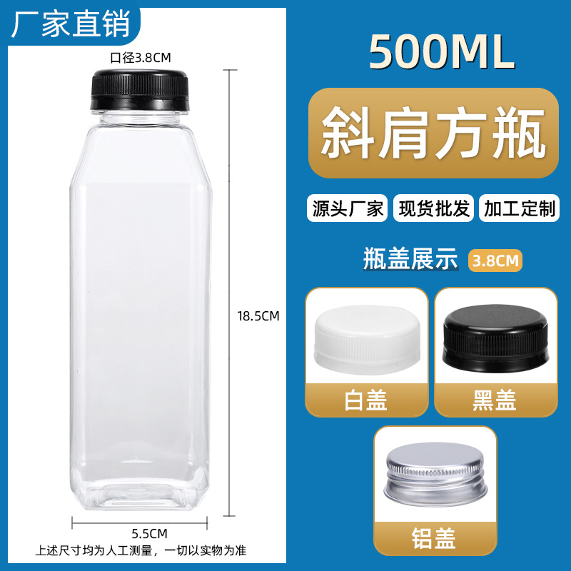 一次性38口方形奶茶瓶pet塑料透明饮料瓶带盖果汁瓶子250ml350ml