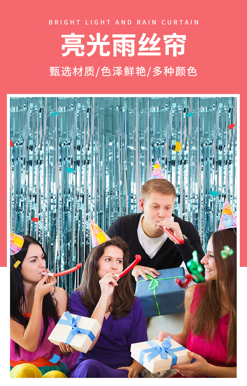 亚马逊跨境亮光雨丝帘生日派对场景布置装饰门帘1*2m亮光雨丝帘