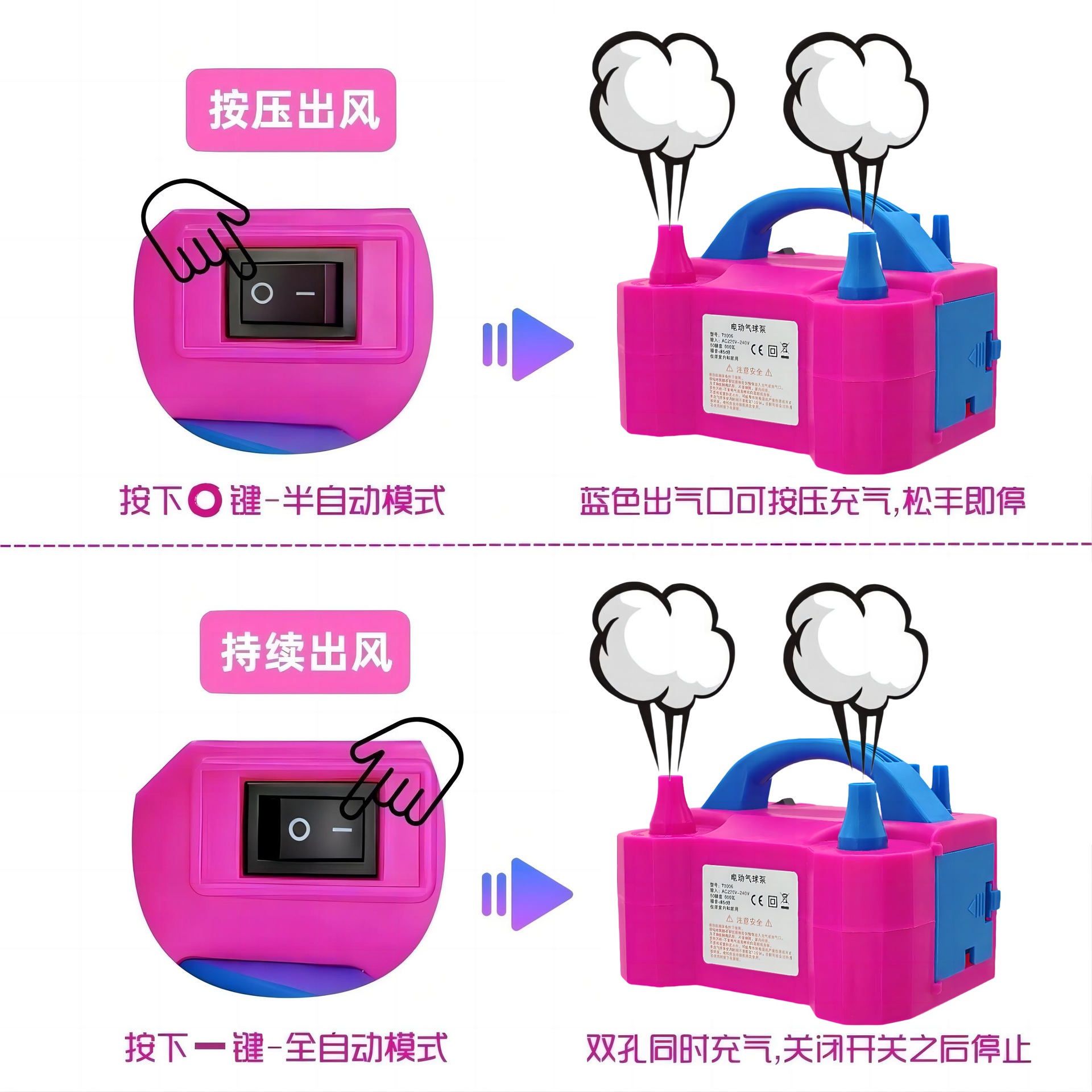 电动打气筒吹气球充气泵电动充气机打气机电气泵工具气球机 玫红