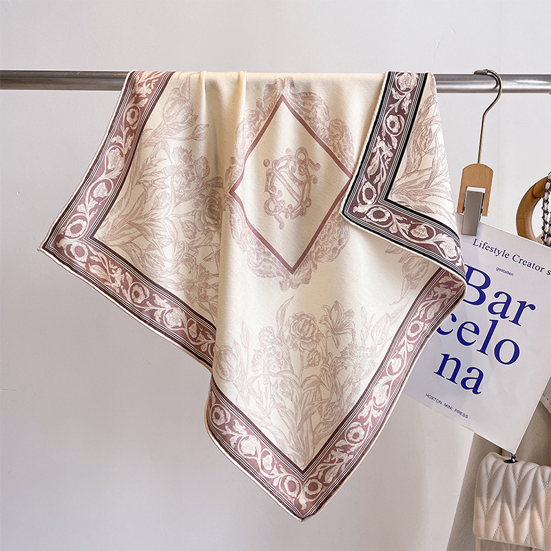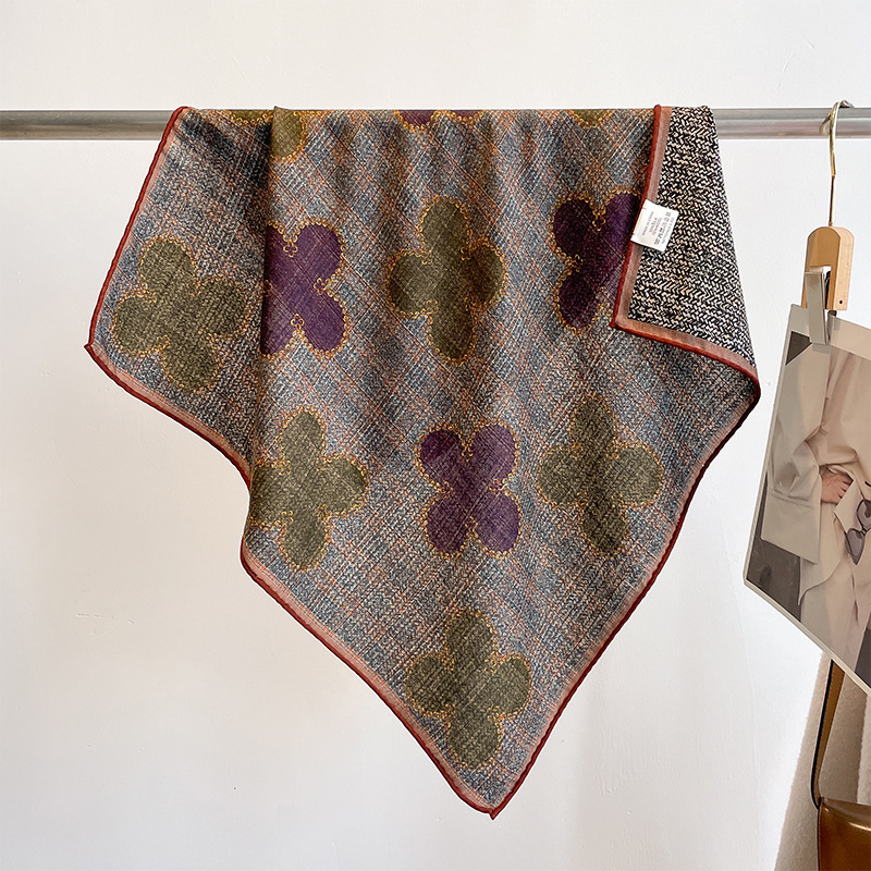 热带丛林双面双色真丝羊毛方巾冬季新款保暖披肩轻奢围脖围巾女