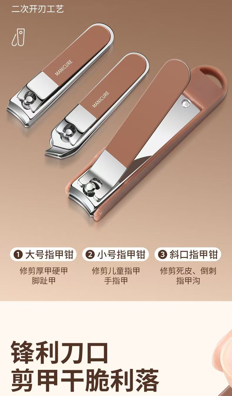 跨境便携防飞溅指甲刀套装美容美甲工具指甲剪家用套装指甲钳全套