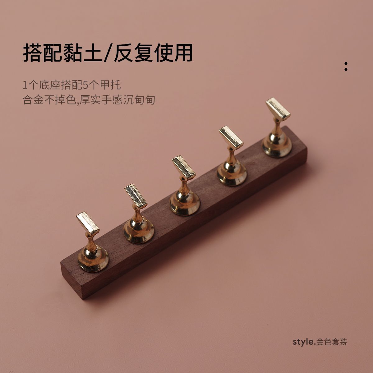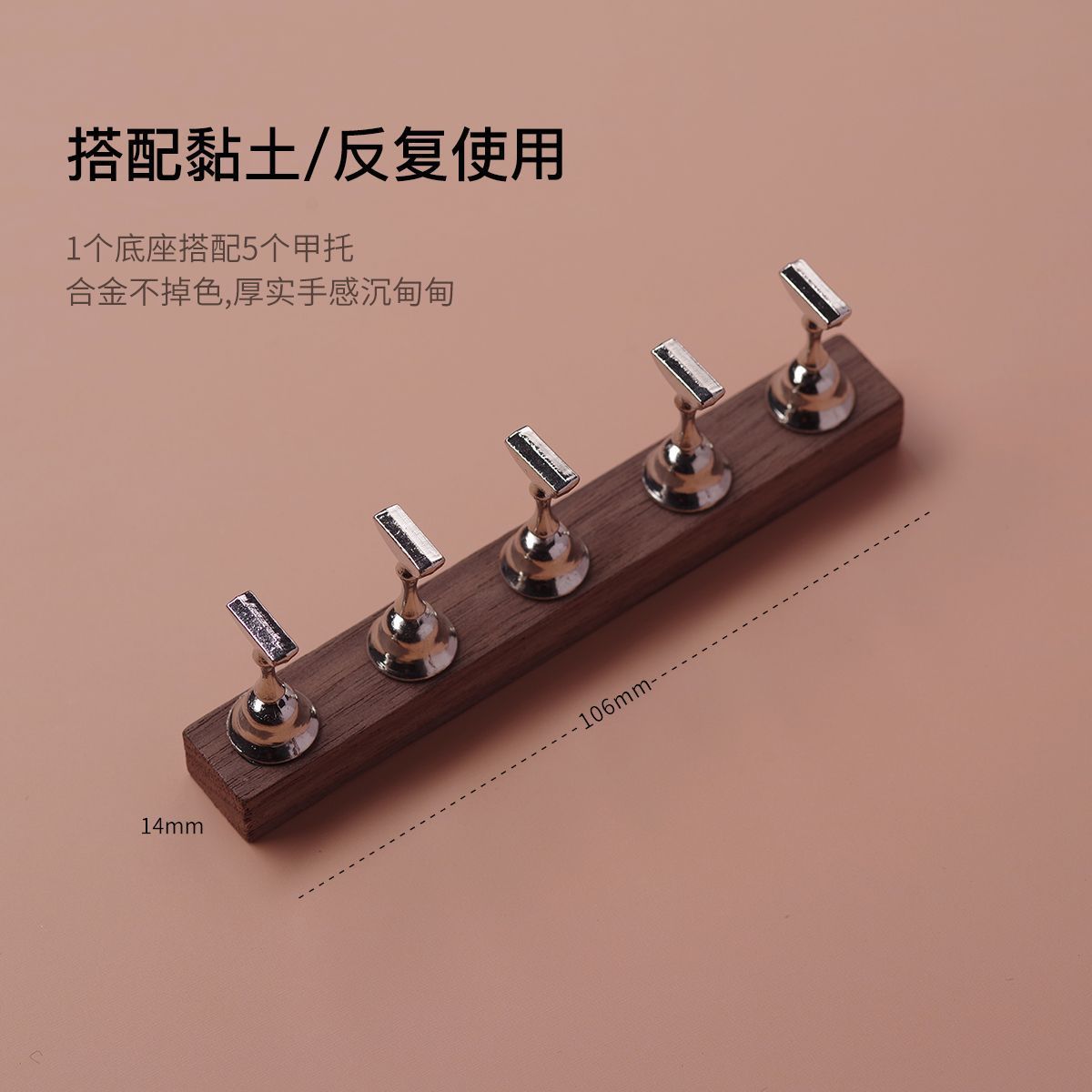 美甲工具复古棋子练习套装胡桃木底座金属甲托带磁性穿戴甲练习座