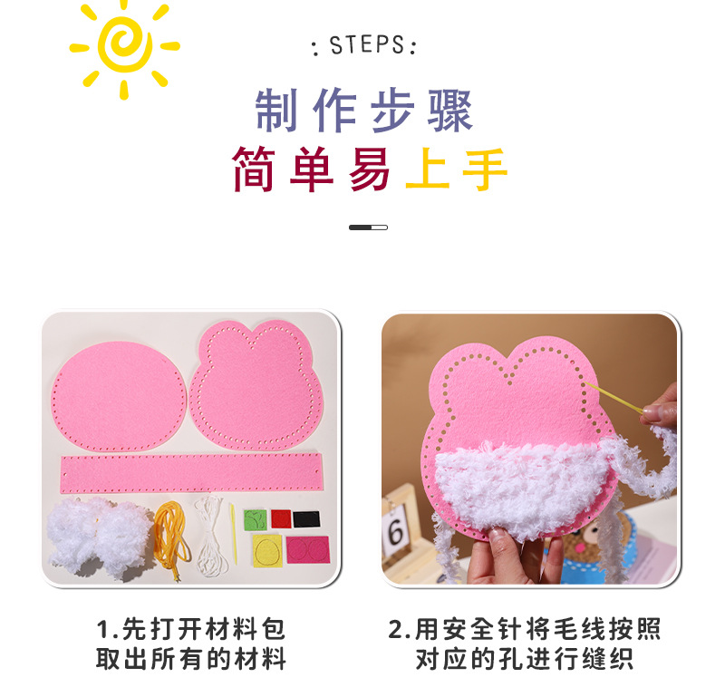 children‘s diy cartoon handmade wool embroidery handmade bag making creative materials kindergarten girls‘ educational toys