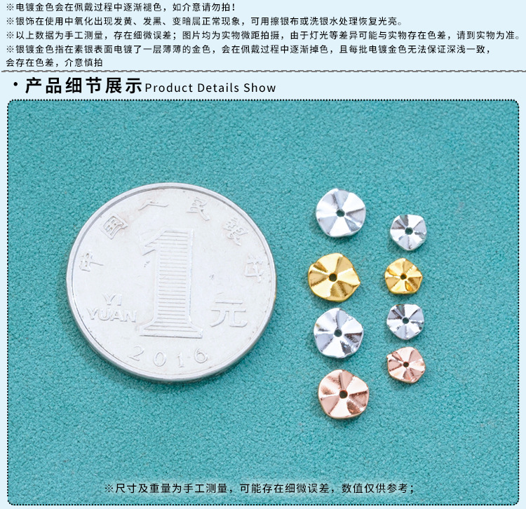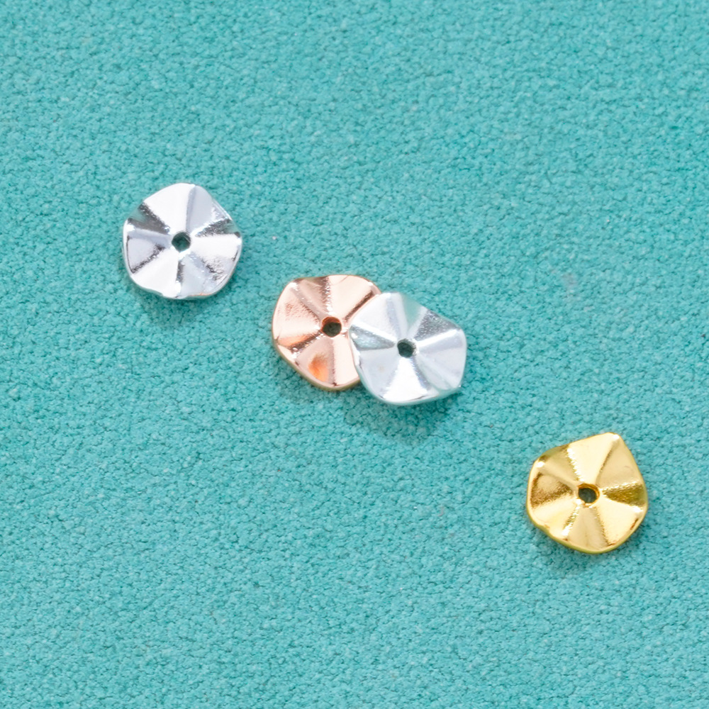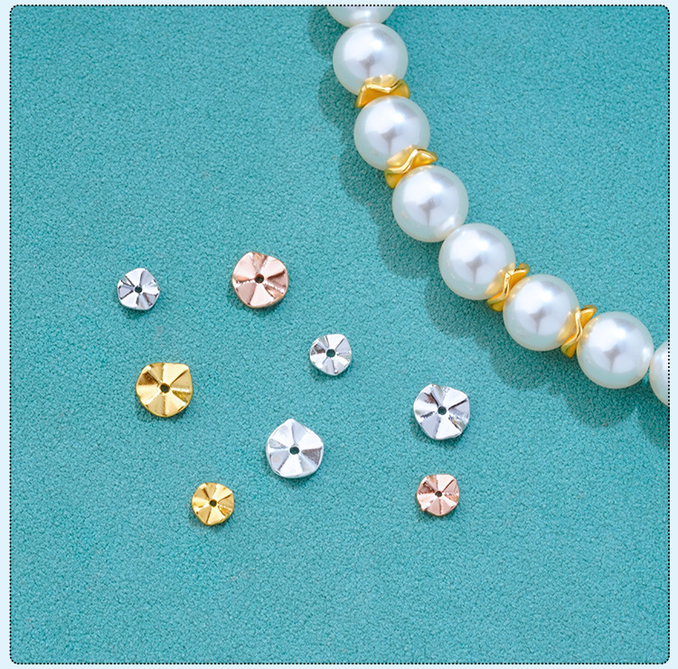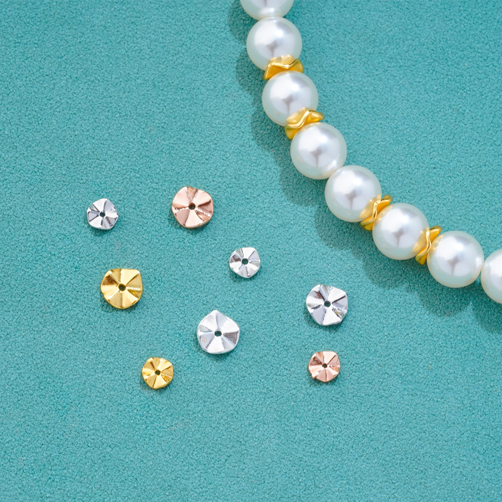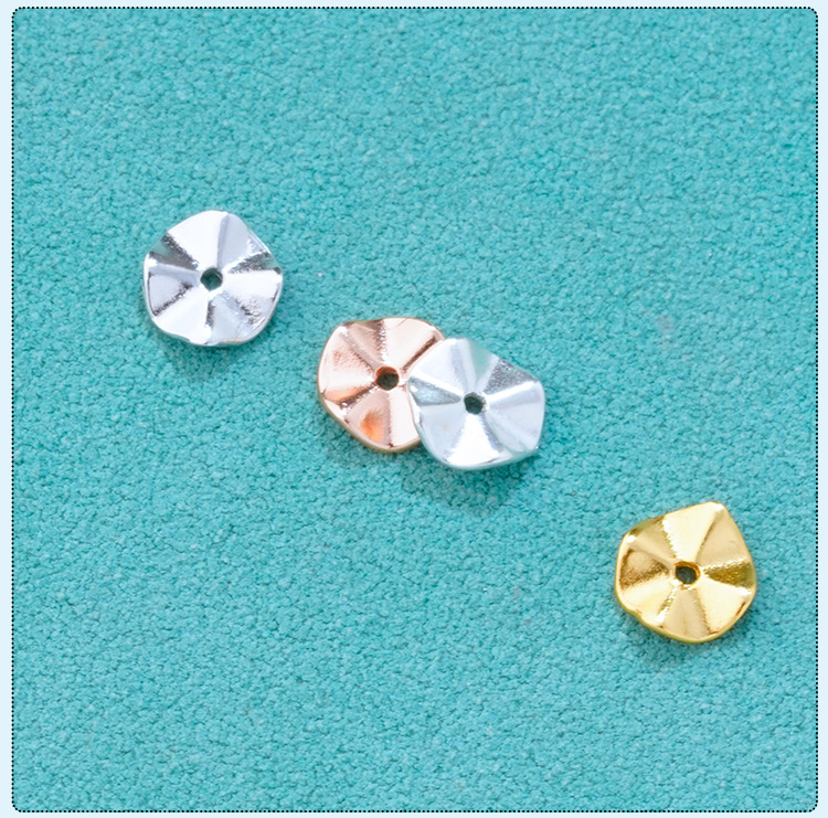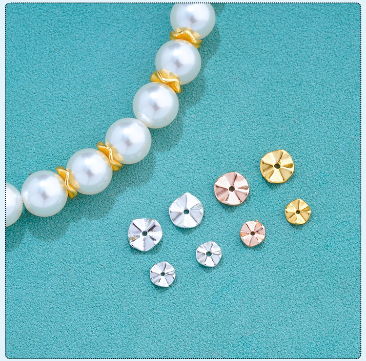 S925纯银镀金波纹隔片垫片配件DIY手工串珠手链珍珠手串隔珠材料